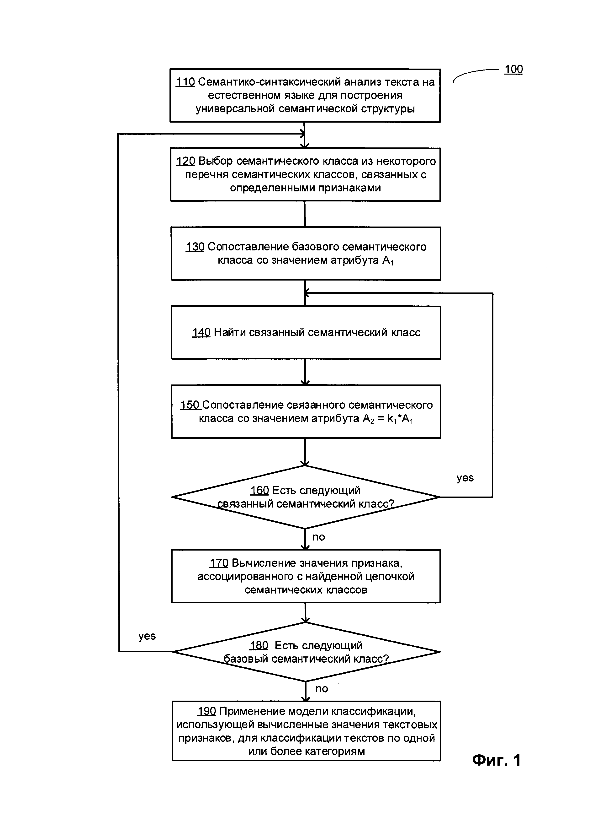 Изобретение относится в целом к вычислительным системам, а точнее к системам и способам обработки естественного языка. Техническим результатом является повышение точности результатов классификации. Для оценки параметров текстовых классификаторов на основе семантических признаков выполняют с помощью устройства обработки семантико-синтаксический анализ текста на естественном языке из корпуса текстов на естественном языке для создания семантической структуры, представляющей набор семантических классов. Выявляют признак текста на естественном языке, извлекаемый на основе набора значений из множества параметров извлечения признаков. Разделяют корпус текстов на естественном языке на обучающую выборку данных, включающую первое множество текстов на естественном языке, и тестовую выборку, включающую второе множество текстов на естественном языке. Определяют набор значений параметров извлечения признаков с учетом категории обучающей выборки. Оценивают полученный набор значений параметров извлечения признаков с помощью тестовой выборки. 4 н. и 16 з.п. ф-лы, 15 ил.