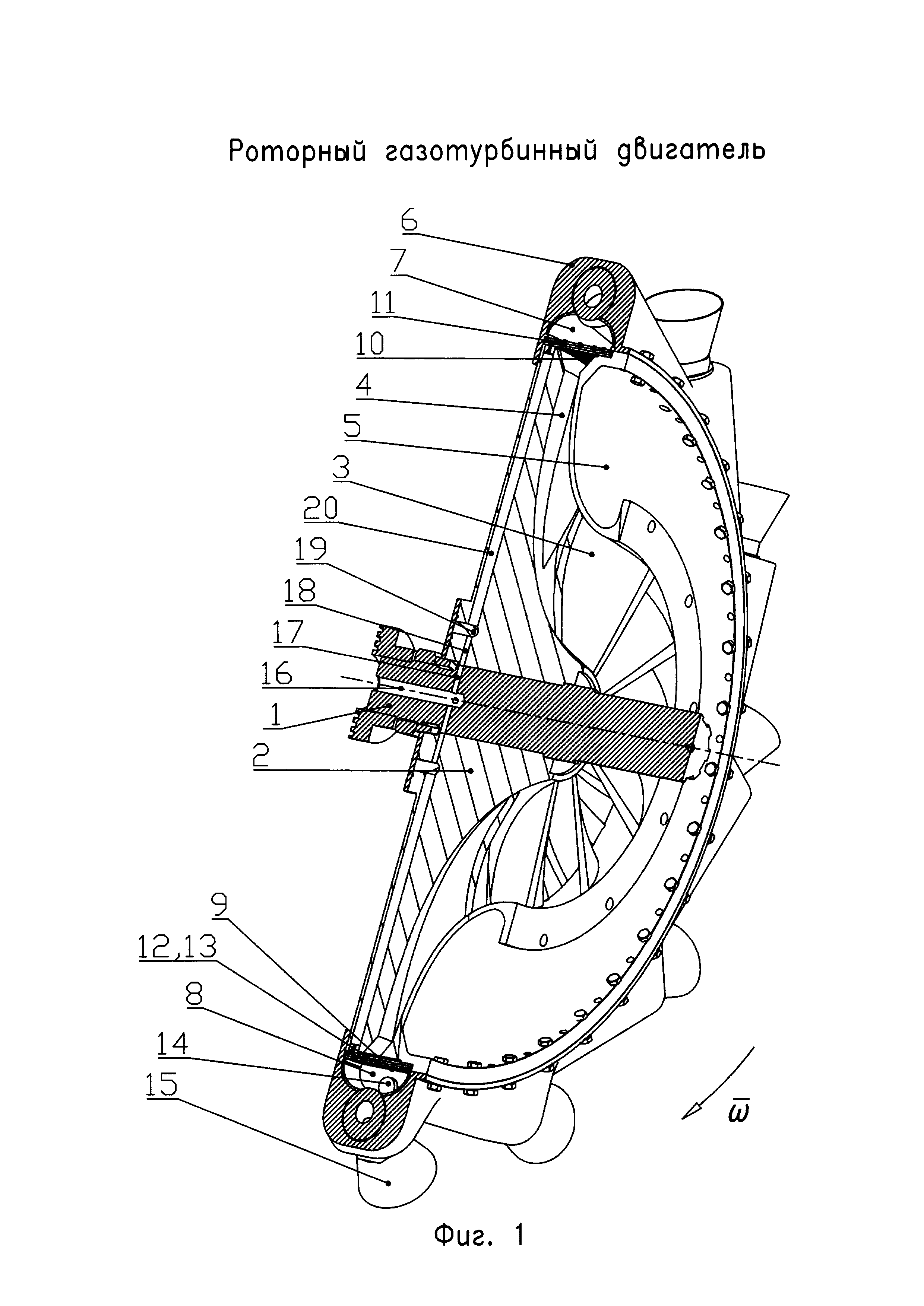 1. Роторный газотурбинный двигатель, содержащий жестко установленное на валу центробежное рабочее колесо с центробежными каналами, обеспечивающее сжатие поступающего в него окислительного рабочего тела, установленную коаксиально с ним камеру сгорания торообразной формы с тангенциально расположенными на ней соплами, обеспечивающими создание импульса реактивной силы истекающих через сопла продуктов сгорания смеси горючего и окислительного рабочего тела для вращения центробежного рабочего колеса и камеры сгорания, средства подачи горючего рабочего тела и средства зажигания смеси горючего и окислительного рабочего тела, отличающийся тем, что внутренняя полость камеры сгорания разделена на отдельные камеры сгорания жестко закрепленными поперечными перегородками, которые являются продолжением лопаток рабочего колеса, и закреплены с образованием входных отверстий в отдельные камеры сгорания, а выходные отверстия центробежных каналов открыты в полости отдельных камер сгорания через входные отверстия, при этом по меньшей мере одно выходное отверстие центробежного канала открыто в полость каждой отдельной камеры сгорания, снабженной по меньшей мере одним соплом, выполненным сверхзвуковым, в виде круглого или плоского сопла Лаваля, с центральной осью на его входе, совпадающей по направлению с центральной осью отдельной камеры сгорания на ее выходе, а также снабженной средствами подачи горючего рабочего тела, и средствами зажигания, размещенными в каждой поперечной перегородке и обеспечивающими одновременное воспламенение смеси горючего и окислительного рабочего тела в примыкающих друг к другу отдельных камерах сгорания, а между центробежным рабочим колесом и отдельными камерами сгорания установлено средство дросселирования, обеспечивающее заданные расходные и термодинамические параметры сжатых потоков окислительного рабочего тела на входе в каждую отдельную камеру сгорания. 2. Двигатель по п. 1, отличающийся тем, что центробежное рабочее колесо выполнено открытым и снабжено обечайкой, жестко соединенной с центробежным рабочим колесом, с образованием закрытых сверху центробежных каналов. 3. Двигатель по п. 1, отличающийся тем, что центробежное рабочее колесо выполнено закрытым. 4. Двигатель по п. 1, отличающийся тем, что камера сгорания выполнена в виде жестко соединенных между собой отдельно изготовленных камер сгорания, образующих конструкцию торообразной формы. 5. Двигатель по п. 1, отличающийся тем, что средство дросселирования выполнено в виде единой кольцеобразной или разделенной на сегменты перфорированной ленты из прочного, термостойкого материала с размерами, обеспечивающими перекрытие входных отверстий отдельных камер сгорания. 6. Двигатель по п. 1, отличающийся тем, что средства подачи горючего рабочего тела снабжены стабилизаторами пламени. 7. Двигатель по п. 1, отличающийся тем, что внутренние поверхности отдельных камер сгорания и сопел, а также поверхности поперечных перегородок выполнены с термостойким покрытием из керамики или металлокерамики. 8. Двигатель по п. 1, отличающийся тем, что сопла выполнены сменными.
