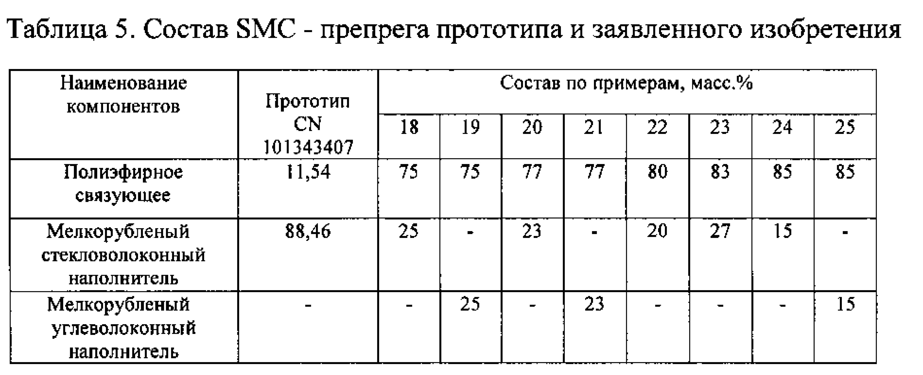 1. Полиэфирное связующее, содержащее в качестве основы полиэфирную смолу, отвердитель пероксидного типа, ингибитор фенольного типа, термопласт на основе винилацетата, антипирен, загуститель - оксид магния, отличающееся тем, что в качестве полиэфирной смолы содержится изофталевая ненасыщенная полиэфирная смола, в качестве отвердителя, ингибитора и термопласта используются их растворы в органическом растворителе, в качестве антипирена - гидроксид алюминия и дополнительно содержатся модификаторы - поверхностное активное вещество и неорганический минеральный наполнитель, при следующем соотношении компонентов, мас.%.: 2. Полиэфирное связующее по п.1, отличающееся тем, что оно дополнительно содержит стеарат цинка в количестве 0,5-2,5 мас.% от всей композиции. 3. Препрег, включающий полиэфирное связующее и рубленый волокнистый наполнитель, отличающийся тем, что в качестве полиэфирного связующего используют связующее по п.1 при следующем соотношении компонентов, мас.%: 4. Препрег по п.3, отличающийся тем, что в качестве рубленого волокнистого наполнителя содержит рубленый волокнистый угленаполнитель. 5. Препрег по п.3, отличающийся тем, что в качестве рубленого волокнистого наполнителя содержит рубленый волокнистый стеклонаполнитель. 6. Изделие, отличающееся тем, что оно выполнено методом прямого прессования препрега по п.3.изофталевая ненасыщенная полиэфирная смола 25,0-40,0 раствор отвердителя 2,0-6,5 раствор ингибитора 0,0001-0,1000 раствор термопласта 0,2-6,5 поверхностное активное вещество 0,15-3,00 гидроксид алюминия 27,0-42,0 оксид магния 0,05-0,80 неорганический минеральный наполнитель 15,0-30,0. полиэфирное связующее 75,0-85,0 рубленый волокнистый наполнитель 15,0-25,0.