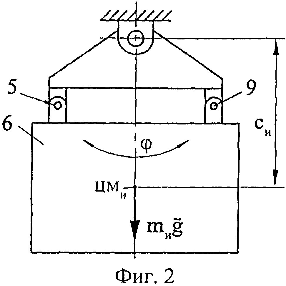 1. Устройство для измерения момента инерции изделия, содержащее подвижную часть, имеющую возможность колебаний вокруг оси, неподвижной относительно основания под действием упругих элементов или сил гравитации, эталонное тело, имеющее элементы технологического базирования для закрепления его на подвижной части устройства, отличающееся тем, что эталонное тело выполнено с дополнительными элементами технологического базирования, расположенными симметрично относительно основных, причем центр масс эталонного тела расположен асимметрично относительно основных и дополнительных элементов базирования эталонного тела. 2. Устройство по п.1, отличающееся тем, что элементы технологического базирования выполнены в виде базовых отверстий на подвижной части устройства, имеющих возможность совмещения с базовыми отверстиями на эталонном теле и изделии посредством штифтов, служащих и для закрепления эталонного тела и изделия на подвижной части.