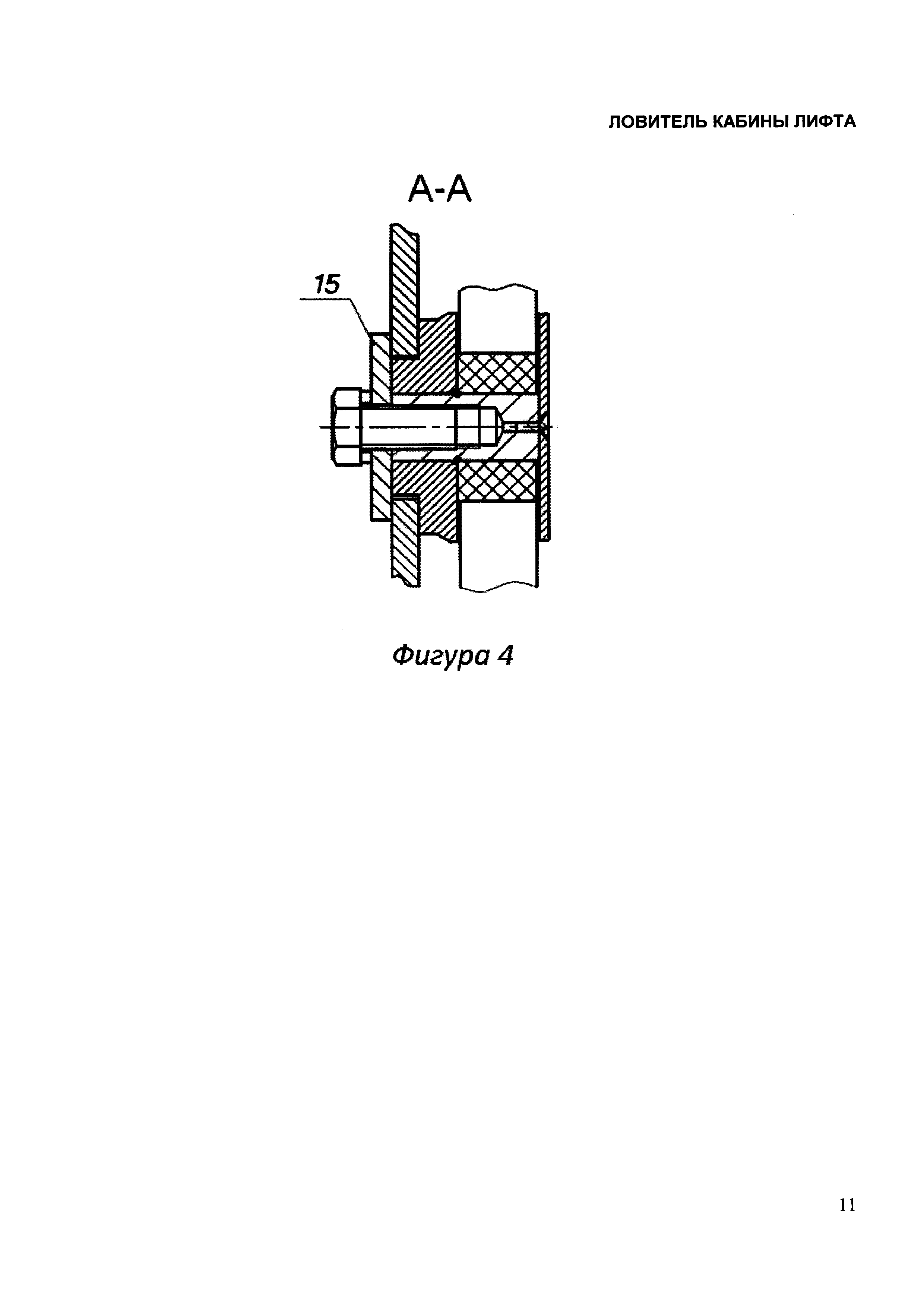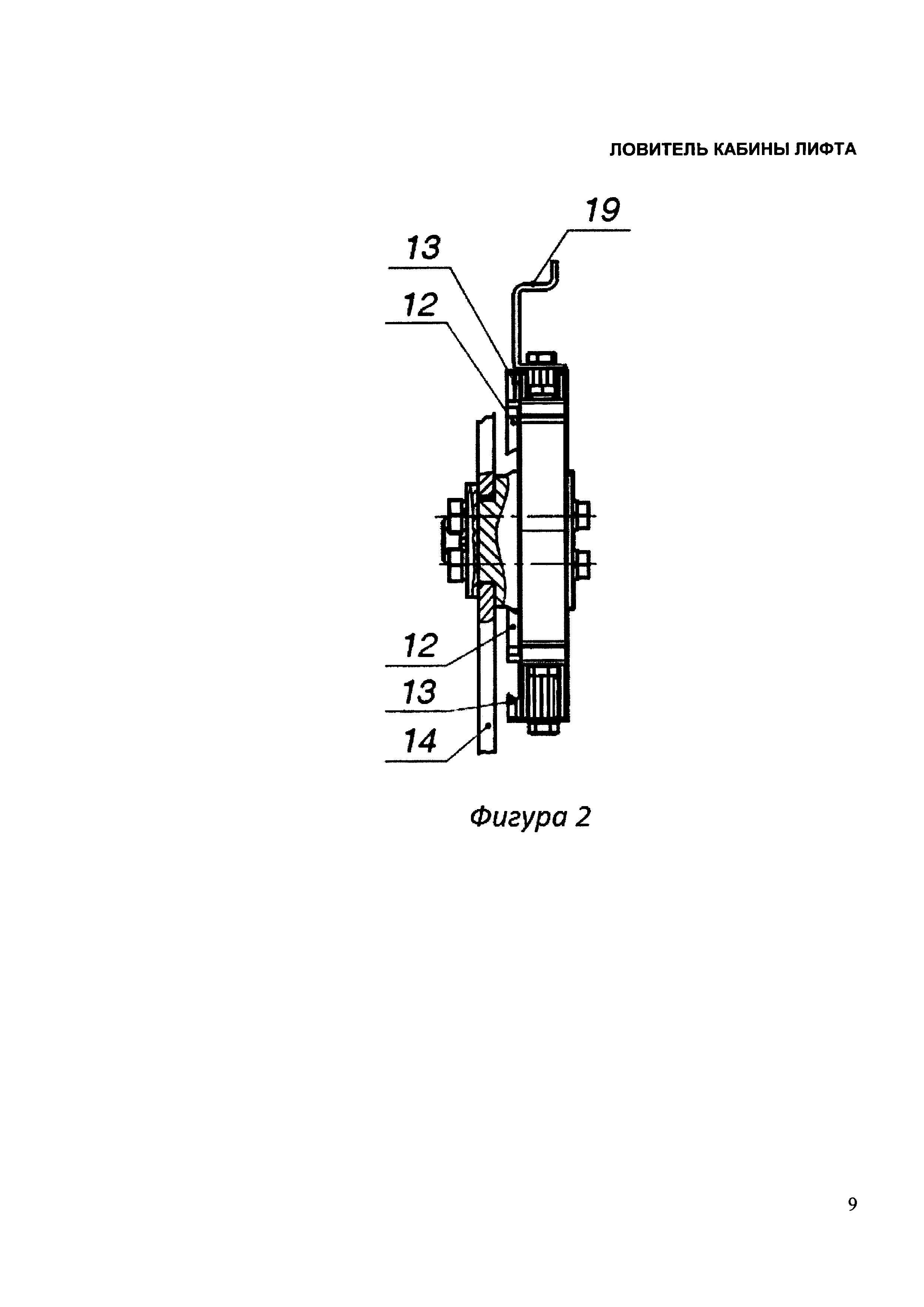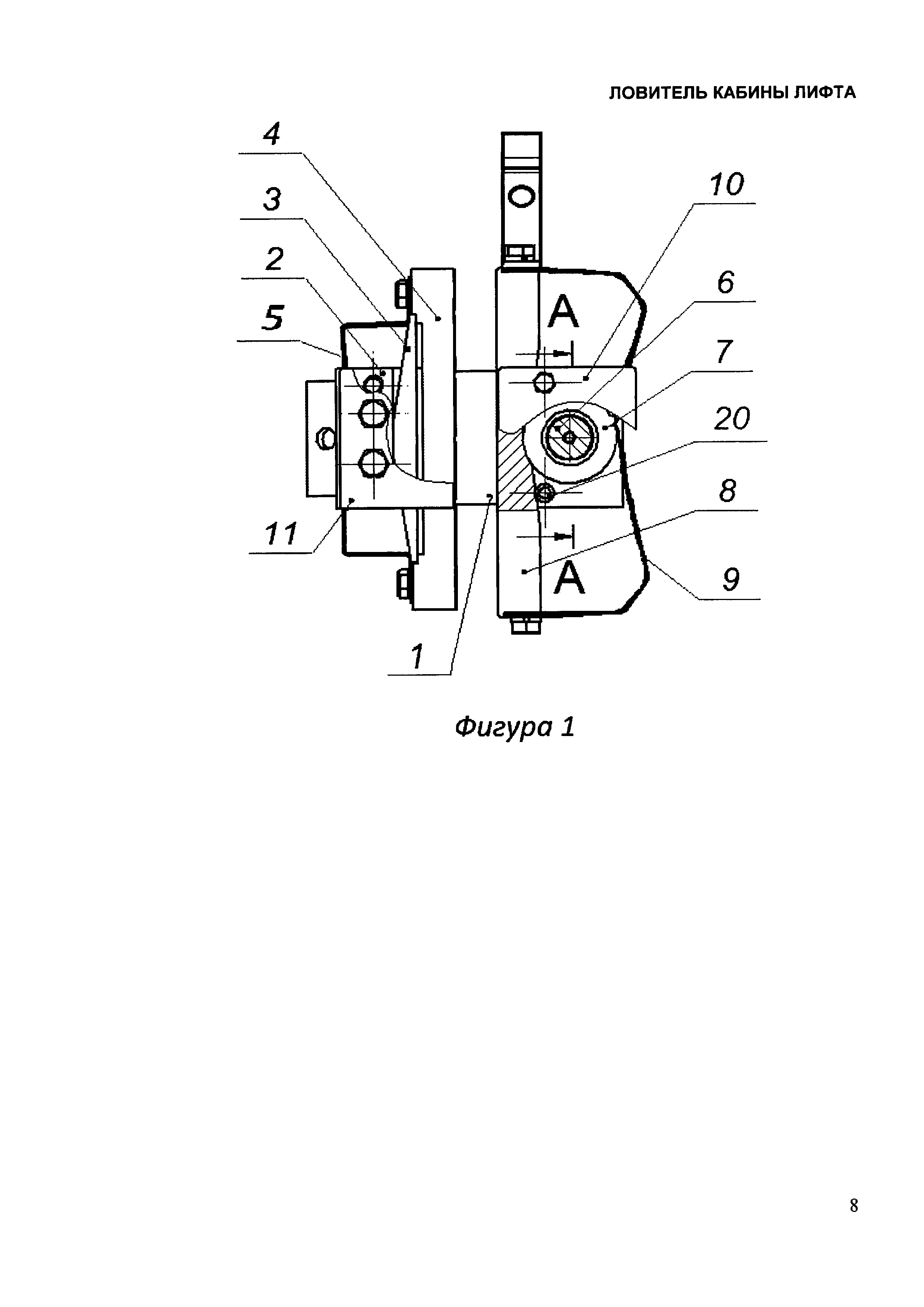 Изобретение относится к лифтостроению, а именно к устройствам безопасности лифтов («предохранительным устройствам»). Из уровня техники известны следующие конструкции ловителей. Так, из реферата к заявке Мексики №2014011179 (опубликована 14.11.2014) известен ловитель, который содержит тормозное устройство, которое взаимодействует с рельсовой направляющей подвесных средств. Тормозное устройство содержит кулачковый диск, вращающийся вокруг оси и предназначенный для активации улавливающего устройства, при этом кулачковый диск входит в контакт с направляющей, в результате чего ловитель перемещается относительно направляющей и, следовательно, ловитель производит торможение относительно направляющей. Ловитель содержит электрически управляемый механизм активации с возможностью поворота рычага активации и активирующую пружину, которая, в случае необходимости, приводит кулачковый диск во вращение на угол поворота активации через активирующий рычаг. Недостатками известного ловителя являются значительное повреждение поверхности направляющей в зоне ее контакта с кулачковым диском в процессе деформации пружин ловителя, обеспечивающих процесс торможения кабины. Выдавленный из зоны контакта материал направляющей необходимо удалить после снятия с ловителей во избежание износа башмаков кабины и нарушения плавности ее движения. Кроме этого, из патента РФ №2444471 (опубликован 10.03.2012) известна система аварийного торможения кабины лифта, предназначенная для обеспечения безопасности лифта при превышении скорости кабины. Система содержит механизм ограничения скорости, который расположен на кабине лифта и выполнен в виде обгонной роликовой муфты. Муфта соосно установлена в одном из роликовых башмаков. Превышение скорости кабины вызывает зажатие корпуса обгонной муфты и поворот его вместе с роликовым башмаком. Тяги, соединяющие корпус обгонной муфты с ловителем, подтягивают ловитель, в результате происходит остановка кабины лифта. Недостатками данной системы являются: включение ловителей осуществляется за счет силы трения роликового башмака по направляющей. Износ башмака, в том числе из-за дополнительного сопротивления обгонной муфты, попадание смазочных материалов на контактную поверхность снижает надежность срабатывания ловителя. Наиболее близким аналогом к патентуемой конструкции является ловитель кабины лифта, содержащий, также как и патентуемый, основание, на котором закреплена колодка, несущая пружину, установленную в тормозной башмак, взаимодействующий с направляющей, а также клин и ролик (авторское свидетельство СССР №1079580, опубликовано 15.03.1984). Конструкция ловителя содержит роликовую обойму с несколькими роликами. Малый диаметр роликов и неравномерное распределение нагрузки на них в процессе посадки на ловители приводит к превышению допустимых напряжений в контакте отдельных роликов с поверхностью клина и колодки и, как следствие, на этих поверхностях образуются лунки, препятствующие самозатягиванию клиньев ловителей и уменьшающие тормозное усилие. Кроме этого, общими недостатками известных ловителей является то, что они тормозят кабину, движущуюся вниз, и не предусмотрено торможение кабины, движущейся вверх. Техническим результатом патентуемого решения является повышение безопасности и надежности т