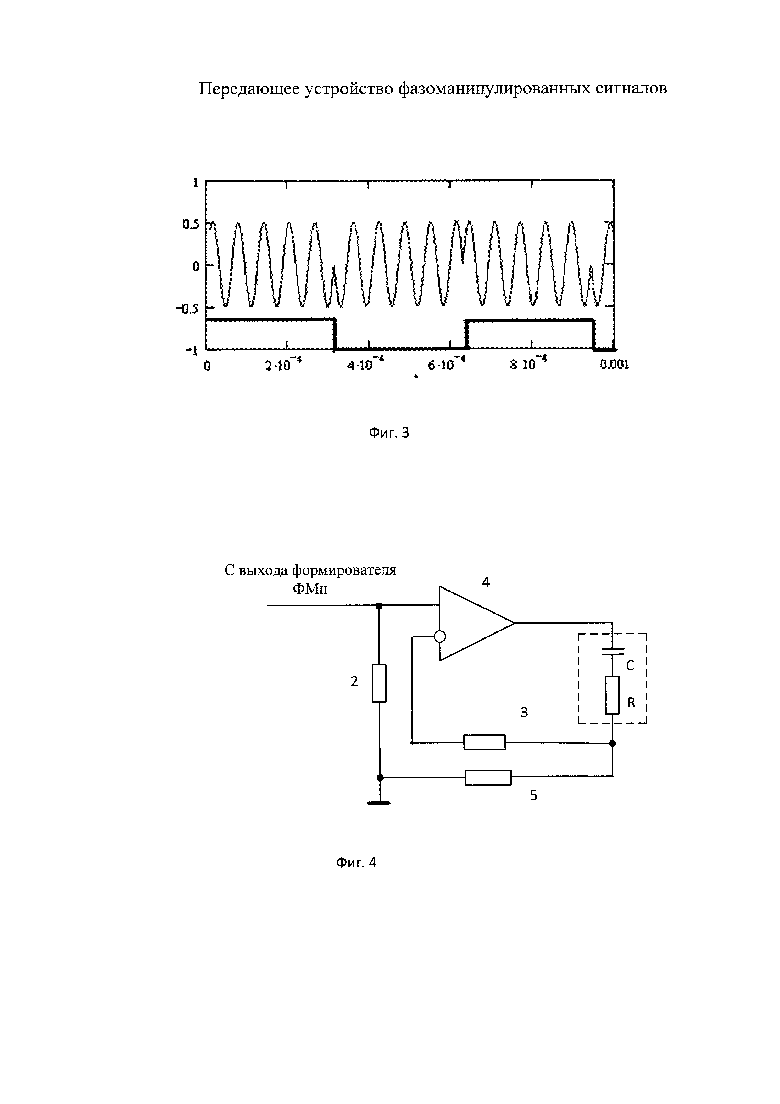 Изобретение относится к области передачи дискретной информации и может быть использовано в системах связи, как с неподвижными, так и с подвижными объектами. Для обеспечения надежной связи в условиях воздействия различных помех, а также для радиолокации и многостанционного доступа преимущественно используется широкополосные сигналы, разновидностью которых являются фазоманипулированные сигналы. Спектр фазоманипулированного сигнала занимает полосу частот более широкую по сравнению с полосой, минимально необходимой для передачи информации; однако используемые полосовые фильтры, узкополосные антенные устройства и нелинейные активные элементы приводят к искажению передаваемого сигнала, снижению КПД канала связи. Для борьбы с линейными и нелинейными искажениями используют различные способы. Известны устройства генерации фазоманипулированных сигналов для осуществления связи с различными объектами. См., например, книгу Борисова В.И. и др. Помехозащищенность систем радиосвязи с расширением спектра сигналов модуляцией несущей псевдослучайной последовательностью. М.: Радио и связь. 2003, 27 с., рис. 1.4, патент РФ №2165677, Н04В 1/10 «Линия связи дискретной информации с широкополосными сигналами», патент РФ №2143780, Н04В 1/04 «Передающее устройство фазоманипулированных сигналов». Упомянутые устройства обычно имеют достаточно сложную структуру, формируемые сигналы отличаются значительными частотными и нелинейными искажениями, низким КПД, особенно в низкочастотном диапазоне. Наиболее близким аналогом к предлагаемому является устройство, описанное в патенте РФ №2269868, Н04В 1/04 «Передающее устройство фазоманипулированных сигналов», принятое за прототип. Функциональная схема устройства-прототипа представлена на фиг. 1, где приняты следующие обозначения: 1 - формирователь фазоманипулированных сигналов (ФМн); 4 - ключевой усилитель мощности, 5 - датчик тока, 6 - согласующее устройство, 7 - передающая антенна; 8 - вычитатель; 9 - квантователь на три уровня. Устройство-прототип содержит последовательно соединенные формирователь фазоманипулированных сигналов 1, вычитатель 8, квантователь на три уровня 9, ключевой усилитель мощности 4, датчик тока 5, согласующее устройство 6, передающую антенну 7, причем второй выход датчика тока 5 соединен со вторым входом вычитателя 8. Следует заметить, что формирователь фазоманипулированных сигналов 1 представляет собой устройство перемножения несущей частоты с псевдослучайной последовательностью (ПСП), в которой записывается передаваемая информация. Согласующее устройство 6 совместно с антенной 7, имеющей преимущественно реактивное сопротивление, образует высокодобротную колебательную систему. Устройство-прототип работает следующим образом. Подаваемый на первый вход вычитателя 8 фазоманипулированный сигнал имеет гармоническую несущую, модулируемую ПСП, а на второй вход вычитателя 8 поступает сигнал с датчика тока 5, пропорциональный мгновенному значению тока усилителя мощности 4. Разностный сигнал с выхода вычитателя 8 подается на вход квантователя 9. Если сигнал вычитателя 8 не превышает шага квантователя 9, то выходной сигнал квантователя 9 равен нулю. В противном случае квантователь 9 выдает сигнал фиксированной амплитуды с полярностью, определяемой полярностью сигнала вычитателя 8. В ключевом усили
