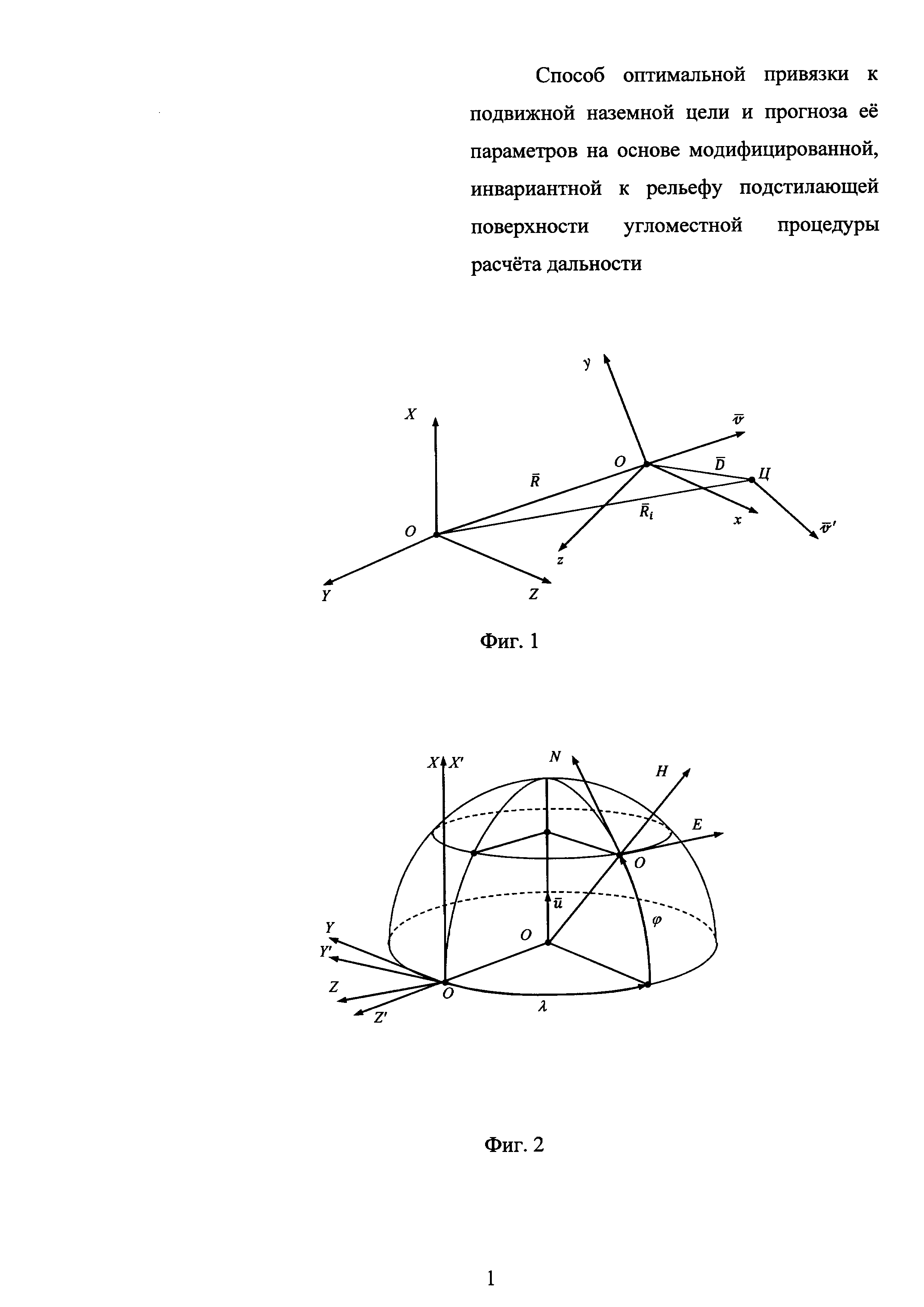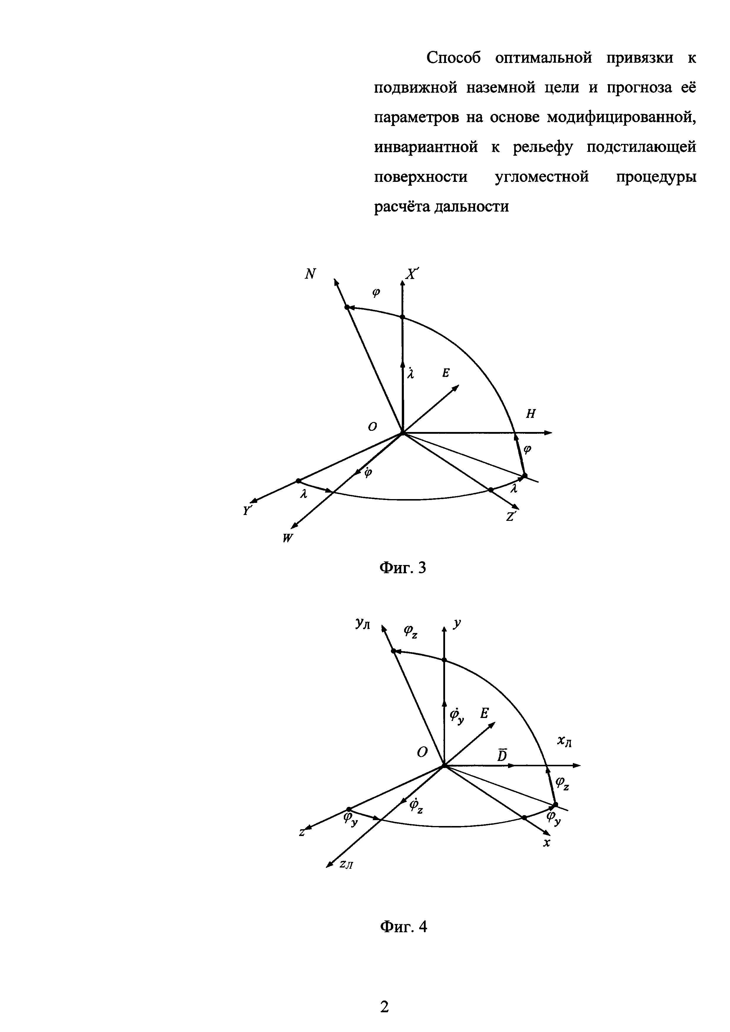 Изобретение относится к области измерительных информационных систем и комплексов боевых самолетов и вертолетов, в которой рассматривается решение задачи привязки к подвижной наземной цели с определением ее относительного местоположения и параметров движения и их прогноза для обеспечения эффективного применения неуправляемых АСП. Известен ряд способов решения указанной задачи, приведенных в учебнике Р.В. Мубаракшина, В.М. Балуева, Б.В. Воронова «Прицельные системы стрельбы». Часть 1, ВВИА им. Н.Е. Жуковского, 1973 г., [1]: - способ определения скорости и ускорения цели через ее координаты и их производные (с. 43-46); - способ определения скорости и ускорения цели путем измерения угловых скоростей и ускорений головки визирного устройства и производных дальности (с. 46-49); - способ определения скорости и ускорения цели через ее относительные координаты, измеряемые в различные моменты времени (с. 49-51). Перечисленные методы определения параметров движения цели представляются физически обоснованными. Но уровень их инженерной проработки и прикладная значимость не соответствуют предъявляемым к ним требованиям, а посему целесообразность их использования в современных разработках вызывает большие сомнения. Очевидно, что при их разработке не стояла задача их промышленного использования, а преследовалась цель получения выражений для прямого расчета тех или иных параметров движения цели. Такой подход далек от инженерного, поскольку в соответствии с ним для расчета параметров движения цели, помимо непосредственно измеряемых параметров, типа дальности до цели и углов ее визирования, предполагается использование их первых и вторых производных, что представляется недопустимым при разработке точных математических процедур. В учебном пособии В.Г. Гришутина «Лекции по авиационным прицельным системам стрельбы». КВВАИУ, Киев, 1980 г., [2], представлен пример оптимального оценивания составляющих скорости цели только для случая ее прямолинейного и равномерного движения (с. 164-167). Дополнительно, но уже для общего случая движения цели, в [2] в подразделе «Способ прицеливания, основанный на последовательном уточнении данных о движении цели» (см. с. 328) даются следующие рекомендации относительно определения параметров ее движения: «В маневренном бою остро испытывается дефицит времени, поэтому при прицеливании по движущейся цели может оказаться нецелесообразным сразу точно оценивать параметры движения цели. На практике более предпочтительной может быть их оценка, выполненная последовательно несколько раз. В каждом новом цикле оценивания производится уточнение данных, полученных в предыдущем цикле. С каждым таким циклом точность решения рассматриваемой задачи, а следовательно, и точность прицеливания увеличиваются и достигают некоторого предельного значения, определяемого как динамикой системы оценивания, так и имеющими место случайными ошибками измерения относительных координат текущего местоположения цели». Указанные рекомендации, если их рассматривать в пределе - при достаточно малом цикле измерения относительных координат текущего местоположения цели, не превышающем 0,1 с, и таком же цикле их обработки и оптимального оценивания по ним искомых параметров движения цели - составляющих ее скорости и ускорения, следует расценивать, как ос