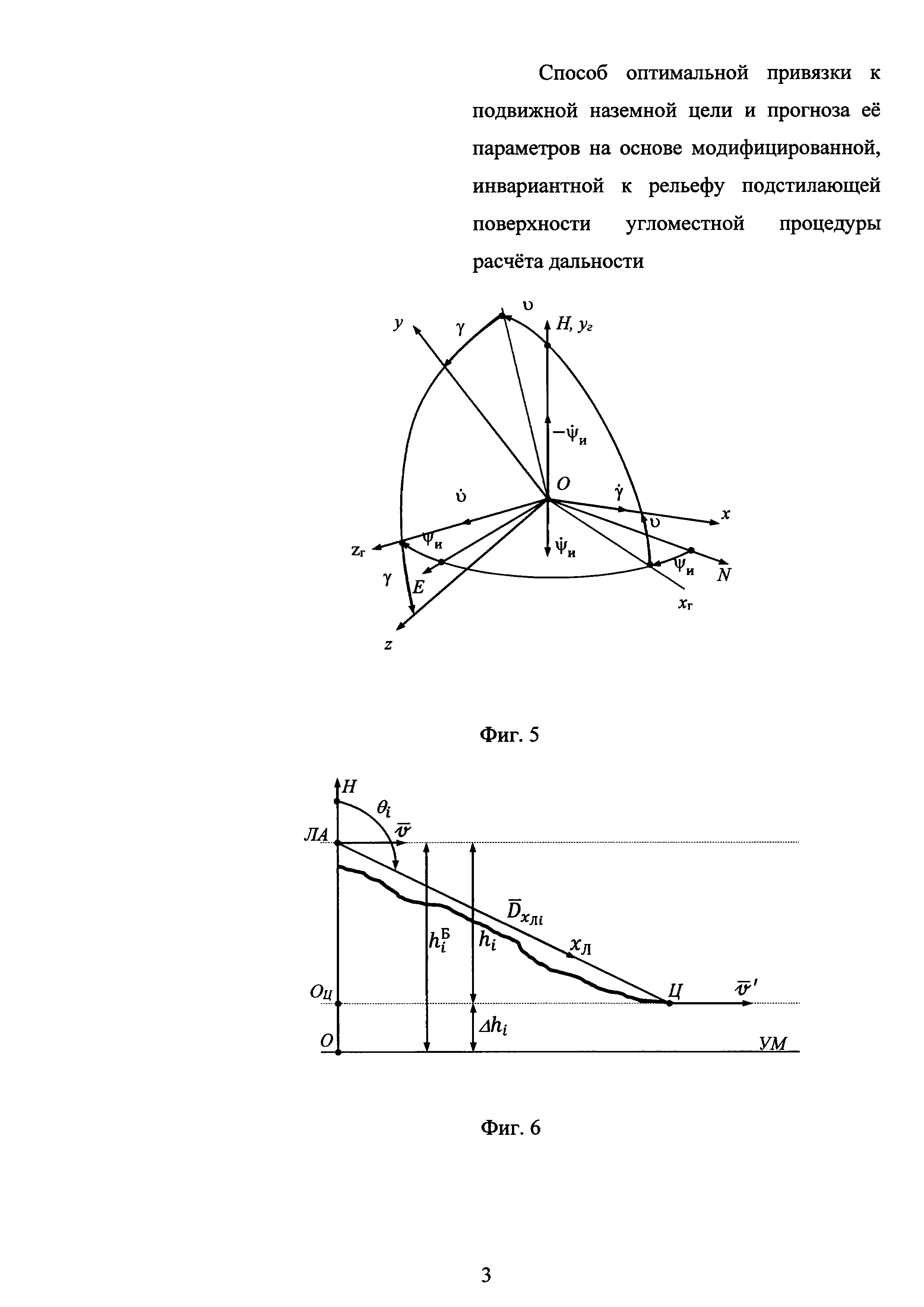 абсолютной линейной скорости объекта, которые используют в процедуре оптимальной фильтрации и идентификации в качестве известного управления, дополнительно, параллельно с процедурой оптимальной фильтрации и идентификации параметров относительного местоположения и движения цели, выполняют ряд вспомогательных операций для реализации точного, инвариантного по отношению к рельефу подстилающей поверхности, модифицированного угломестного способа определения наклонной дальности и на его основе унифицированной с режимом привязки процедуры оптимального оценивания, для чего, используя каждое измеренное значение дальности
