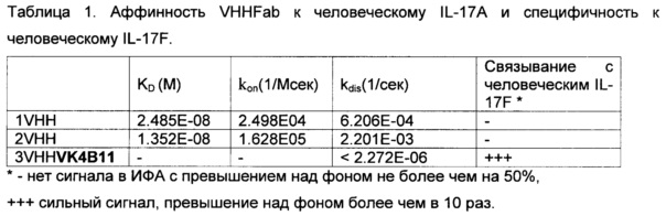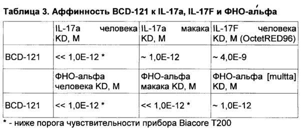 KD для IL-17A, составляющая 10-11 М или ниже;