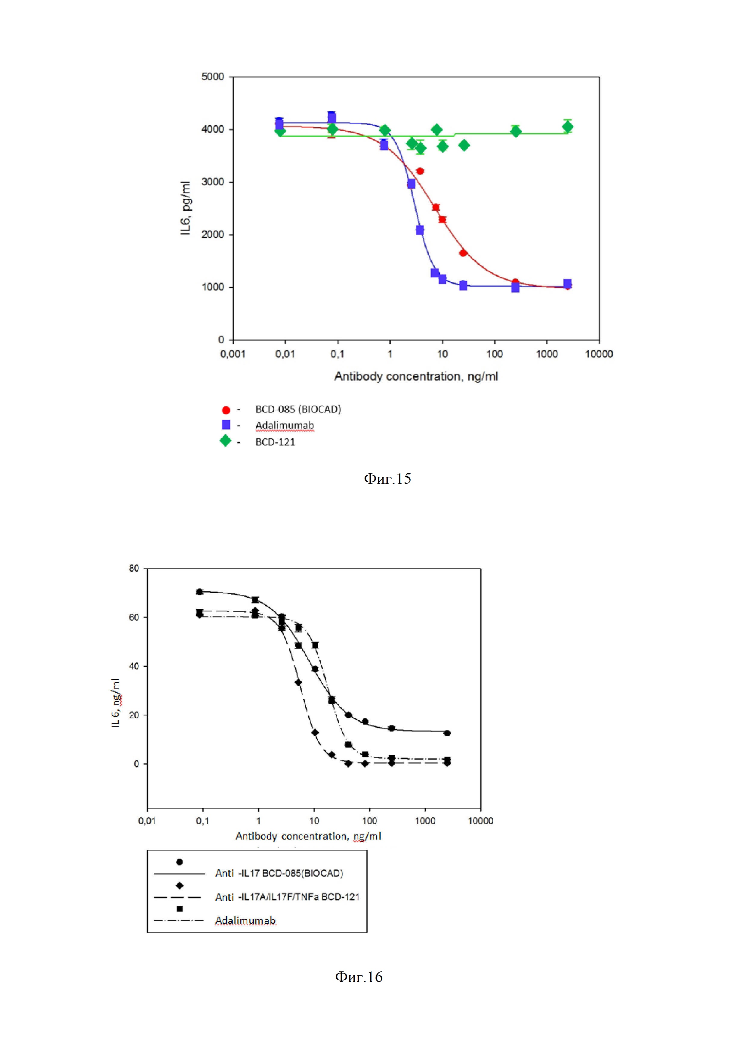 подавляет активность IL-17A и/или IL-17A /ФНО-альфа по меньшей мере на 50% (например, 60%, 70%, 80% или 90%) при концентрациях IL-6 ниже 200 нг/мл в анализе на клетках линии НТ1080;