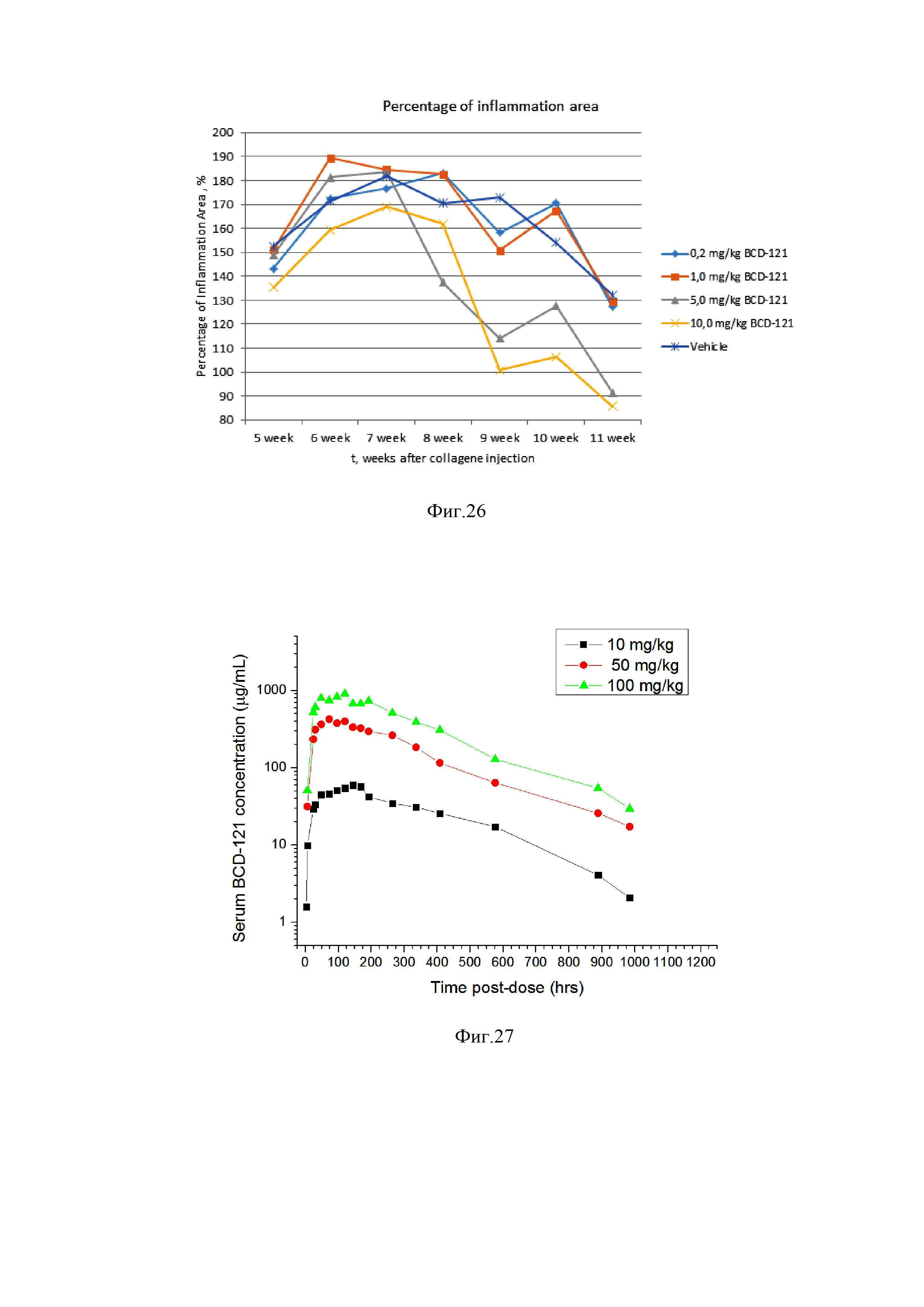 Еженедельно после второго введения непосредственно перед введением коллагена в течение 7 недель.