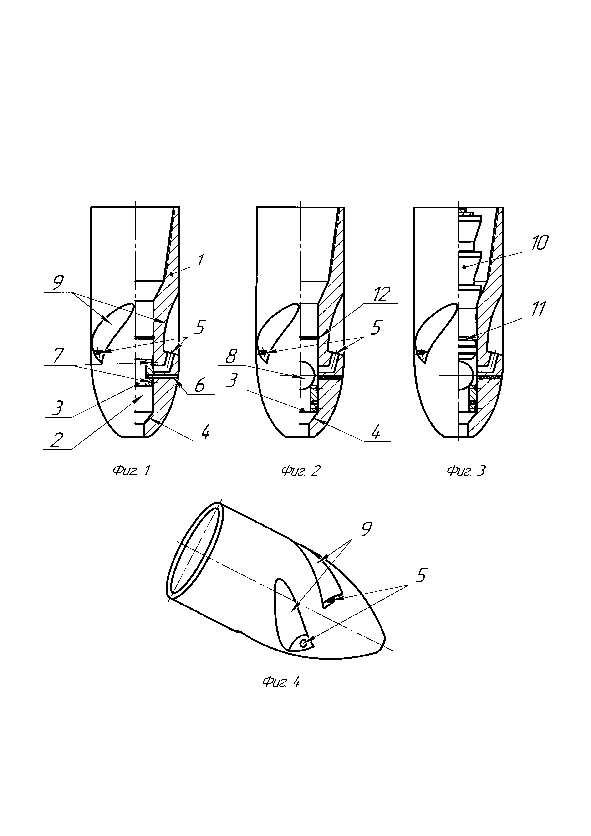 Изобретение относится к области строительства нефтяных и газовых скважин, в частности к оборудованию для оснастки нижней части обсадной колонны. Известен башмак обсадной колонны (SU №1673725, МПК Е21 В 17/14, опубл. в бюл. №32 от 30.08.1991), содержащий металлический цилиндрический корпус с осевым каналом и жестко связанную с нижней частью корпуса бетонную направляющую насадку со сферической наружной поверхностью и осевым каналом, при этом с целью повышения надежности работы за счет улучшения проходимости и предотвращения забивания канала при спуске башмака он снабжен установленным перед бетонной направляющей насадкой и связанным с ним упругими штырями обтекателем, образующим с наружной поверхностью бетонной направляющей насадки кольцевую щель. Недостатки данной конструкции: - недостаточная промывка ствола скважины от шлама, находящегося непосредственно перед башмаком в процессе спуска обсадной колонны; - вибрации, которые возникают при промывке, могут дополнительно уплотнить находящийся перед башмаком шлам, что увеличит вероятность непрохождения колонны; - обтекатель не позволяет создать турбулентный поток цементного раствора. Наиболее близким по технической сущности является колонный башмак (RU №2574237, МПК Е21В 17/14, опубл. в бюл. №4 от 10.02.2016), включающий корпус, один конец которого предназначен для соединения с колонной труб, втулку, связанную с другим концом корпуса, направляющую насадку с центральным каналом, выполненную из легко разбуриваемого материала и помещенную в нижней части полости втулки, свободный нижний торец которой с направляющей насадкой выполнены скошенными, при этом втулка перед направляющей насадкой имеет боковые отверстия, выполненные по касательной относительно ее наружной поверхности, и имеет возможность проворота относительно корпуса, при осевом взаимодействии устройства с препятствием в стволе скважины, или вращения относительно корпуса при промывке скважины. Недостатки данной конструкции: - отверстия, выполненные по касательной к наружной поверхности корпуса, предназначены для лучшей промывки в процессе спуска колонны, но не позволяют продавливать цементный раствор в турбулентном режиме; в горизонтальном стволе одно из отверстий может оказаться закрытым стенкой скважины, что плохо отразится на качестве цементирования; - так как центральный канал имеет диаметр больше диаметра боковых отверстий, то в процессе продавки цементного раствора основной поток будет проходить через центральное отверстие, что тоже не позволит создать дополнительного перемешивания раствора. Технической задачей предлагаемого изобретения является повышение качества цементирования обсадных колонн за счет хорошей промывки ствола скважины во время спуска колонны, лучшего замещения бурового раствора цементным за счет создания турбулентного потока цементного раствора и исключения перекрытия отверстий в горизонтальном стволе, а также надежного перекрытия отверстий башмака по окончании продавки. Техническая задача решается колонным башмаком, включающим корпус с центральным каналом, один конец которого предназначен для соединения с колонной труб, втулку, вставленную в другой конец корпуса, центральный канал снизу снабжен сужением, выше которого выполнены боковые отверстия. Новым является то, что втулка встав