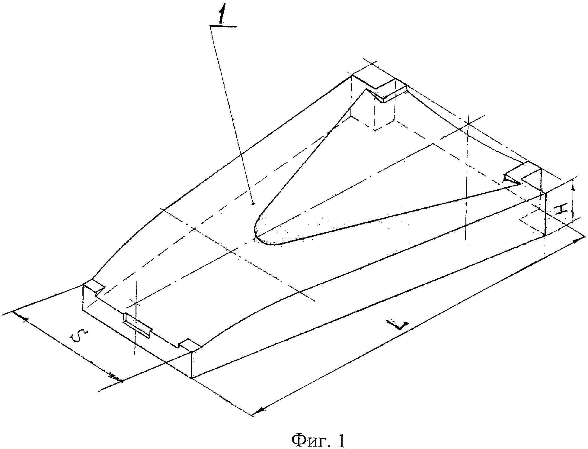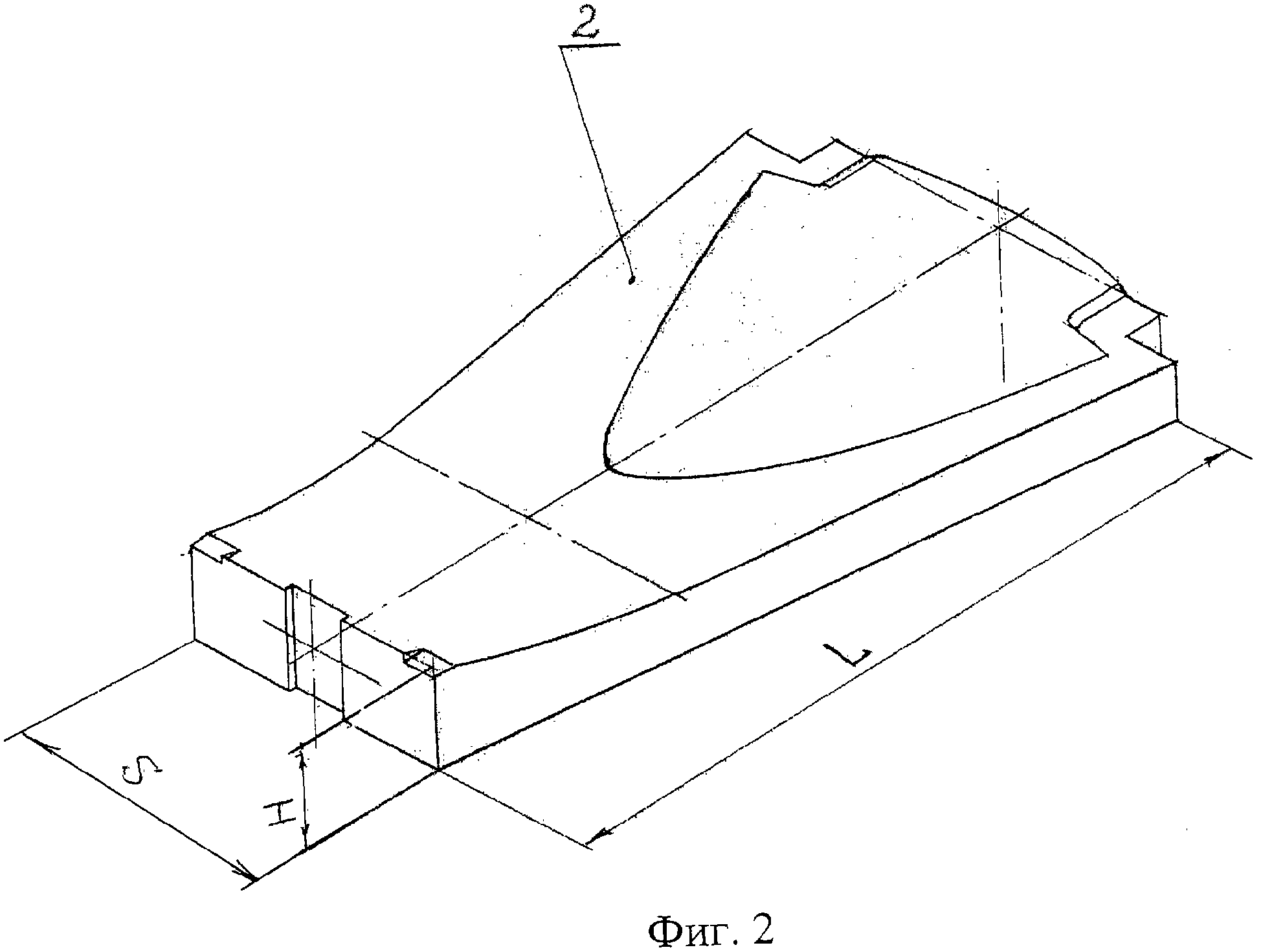 Второй слепок 2 (например, длиной L=350 мм, высотой Н=32 мм, шириной S=135 мм) изготавливают с формообразующей (копируемой) поверхности первого слепка. Последовательность операций получения второго
