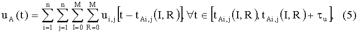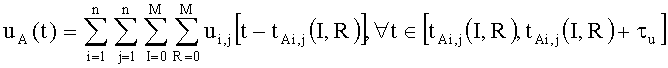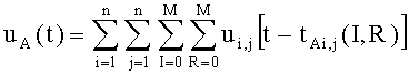 где uA(t) - суммарный эхосигнал, принятый антенной решеткой из точки А(x, z) объекта контроля с координатами x, z;