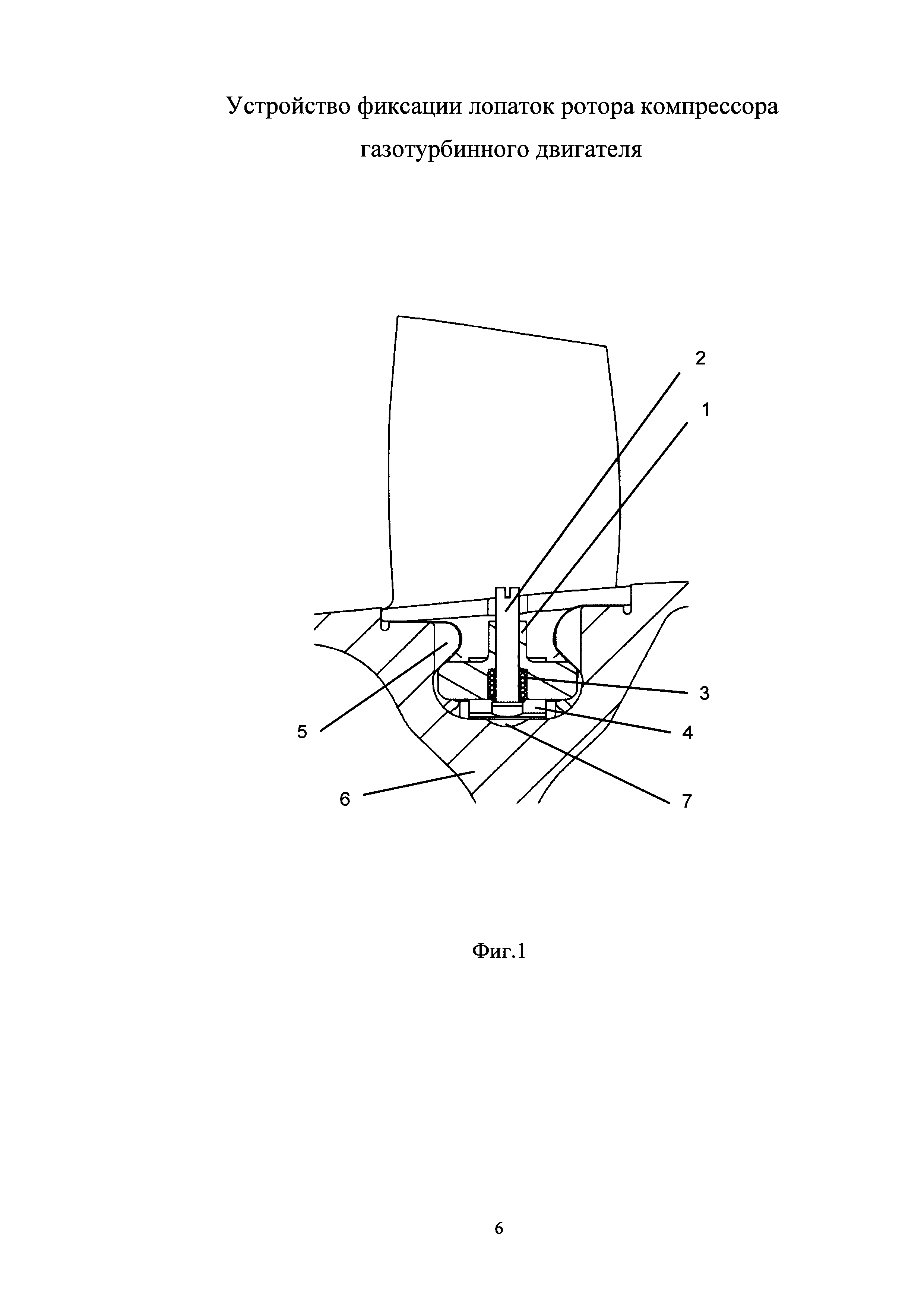 Устройство фиксации лопаток ротора компрессора газотурбинного двигателя на диске ротора, содержащее вкладыш, выполненный с возможностью зацепления в удерживающем окне диска в рабочем положении устройства фиксации лопаток, фиксатор, выполненный с возможностью упираться в донышко канавки диска в рабочем положении устройства фиксации лопаток, пружину, обеспечивающую неподвижность элементов устройства фиксации лопаток на диске в рабочем положении устройства фиксации лопаток, и упор, установленный на вкладыше и выполненный с возможностью удержания фиксатора в сжатом монтажном положении устройства фиксации лопаток, отличающееся тем, что перевод устройства фиксации из рабочего в монтажное положение обеспечивается путем приложения радиального усилия к вкладышу для сжатия пружины и последующего поворота фиксатора, причем упор выполнен в форме пластины, а фиксатор имеет шляпку с лысками, обеспечивающую возможность зацепления фиксатора за установленный на вкладыше упор при повороте фиксатора, обеспечивающем перевод устройства фиксации лопаток в монтажное положение.