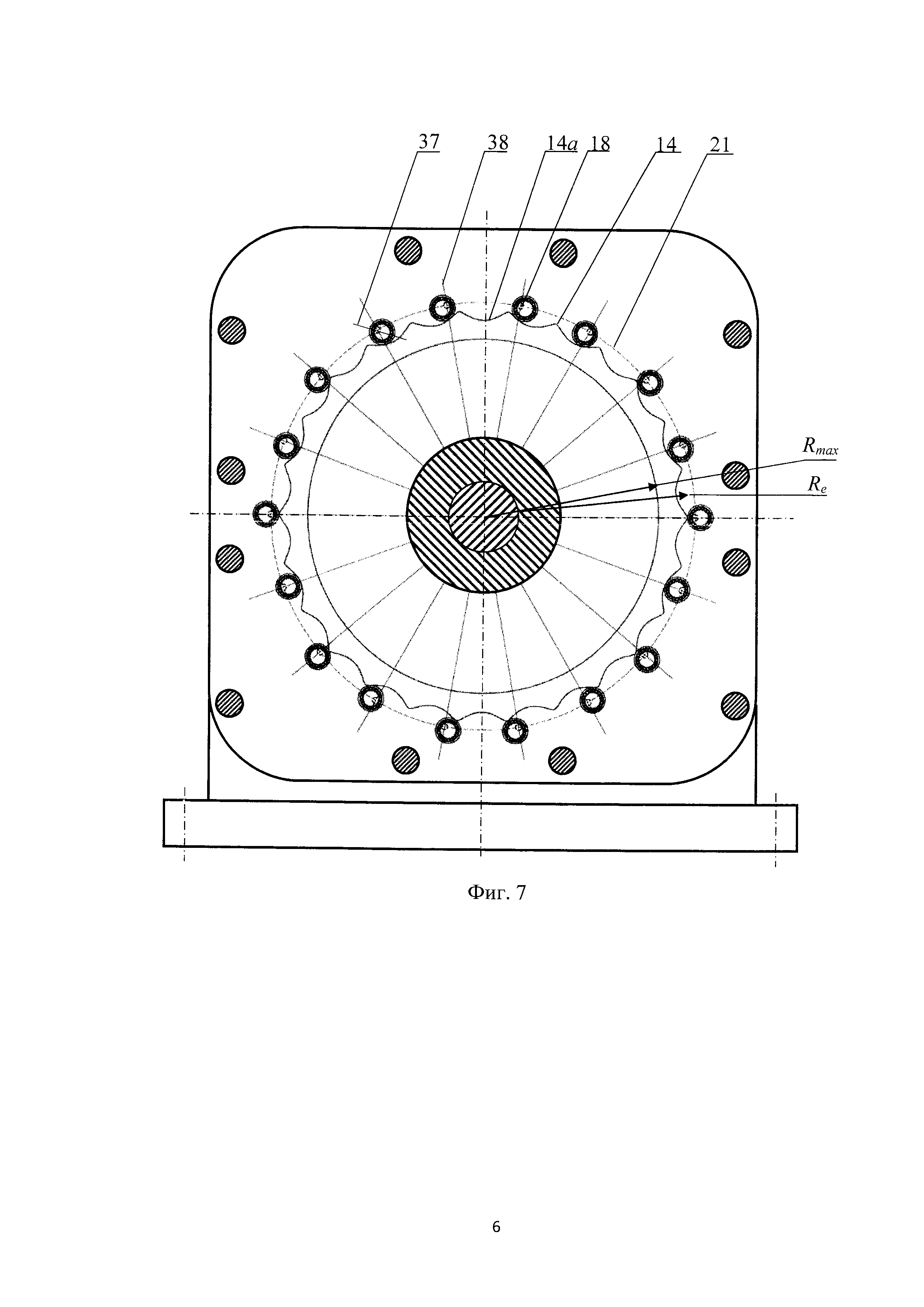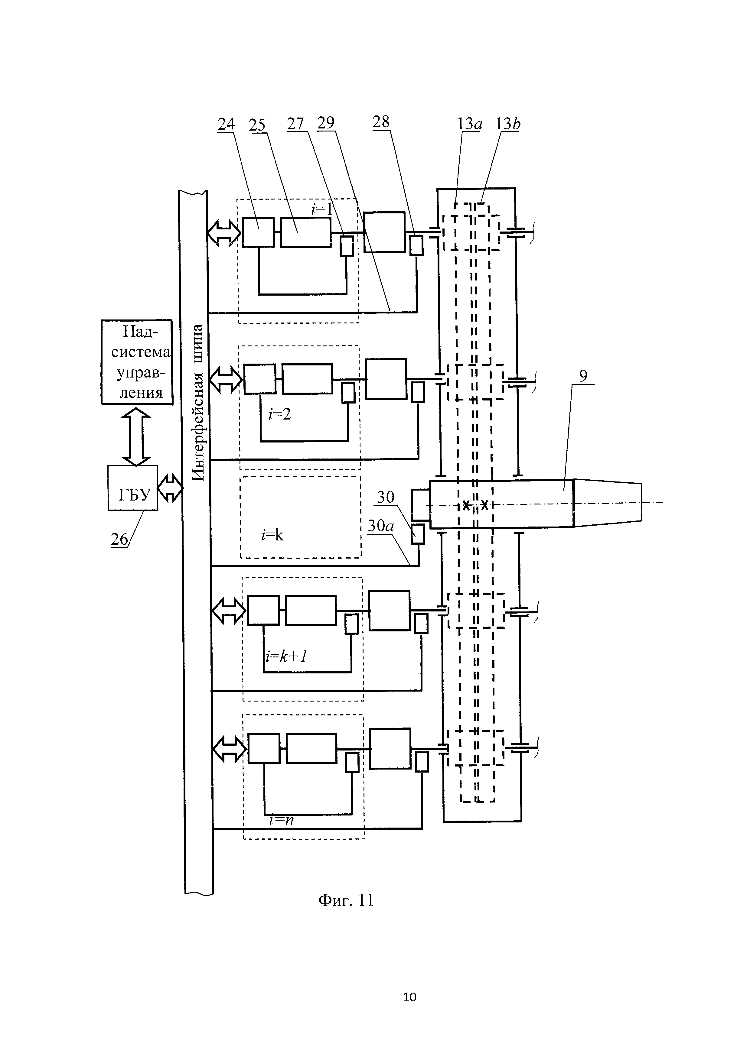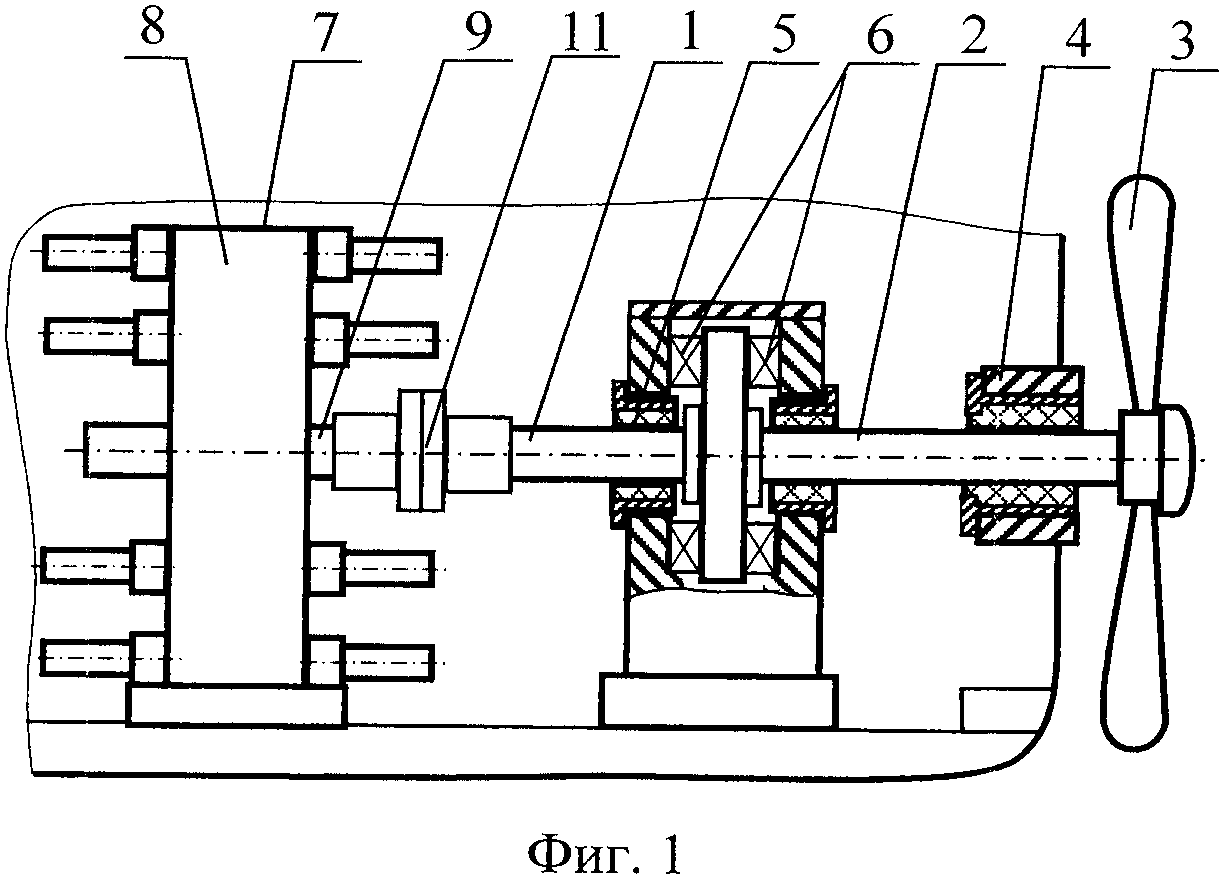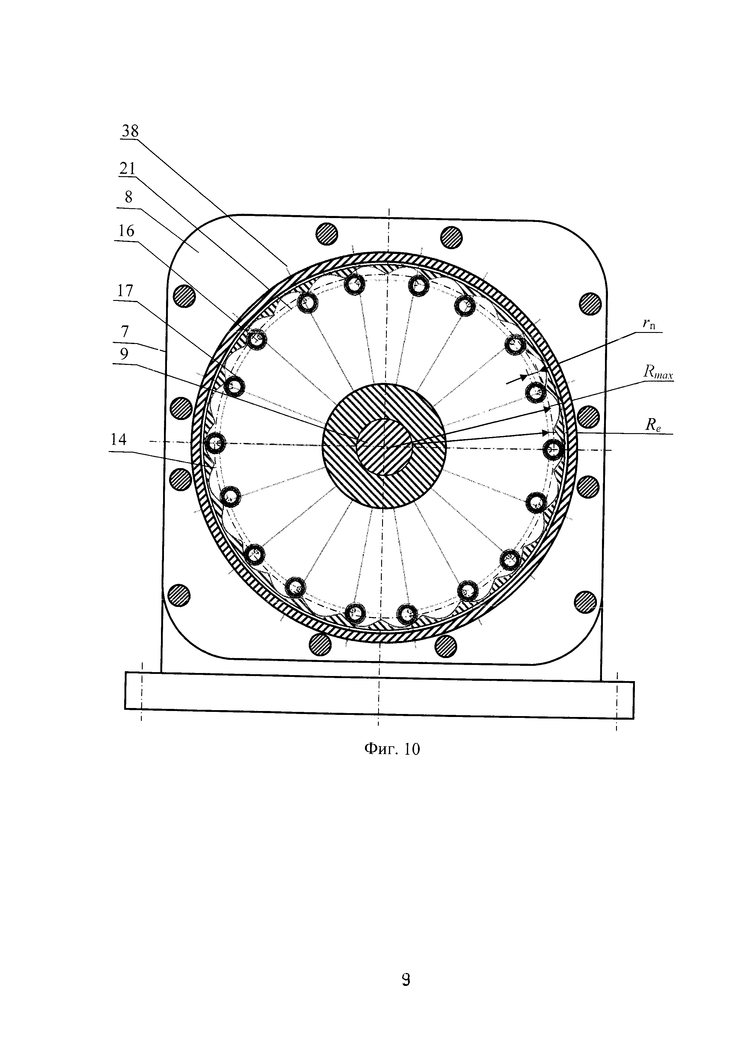 1. Электромеханический привод гребного винта судна, содержащий: судовой валопровод с валом с гребным винтом, дейдвудным, опорным и упорным подшипниками; зубчатый редуктор, имеющий корпус с одним выходным и несколькими входными валами; муфту, соединяющую выходной вал редуктора с валом судового валопровода; установленное на выходном валу в корпусе редуктора по меньшей мере одно цилиндрическое зубчатое колесо с двумя зубчатыми венцами; зубчатую шестерню, установленную на каждом из входных валов по окружности вокруг каждого из зубчатых венцов; следящие электроприводы, установленные на корпусе редуктора, выходные валы которых имеют шестерни и являются входными валами зубчатого редуктора; блоки управления следящими электроприводами, каждый из которых установлен на электродвигателе электропривода; источник электропитания, соединенный с электроприводами через блоки управления ими; главный блок управления следящими электроприводами (включающий задатчик частоты вращения роторов электродвигателей); датчики углового положения выходного вала каждого следящего электропривода, соединенные интерфейсными шинами с соответствующими блоками управления; датчик углового положения выходного вала редуктора, соединенный интерфейсной шиной с главным блоком управления, отличающийся тем, что зубья каждого из двух зубчатых венцов колеса образованы циклоидальной поверхностью; шестерня на каждом входном валу редуктора является однозубой, выполнена в виде цилиндрического эксцентрика с установленным на нем подшипником и, взаимодействуя с зубчатым венцом, образует эксцентриково-циклоидальную передачу; входные валы зубчатого редуктора, каждый - с цилиндрическим эксцентриком с подшипником, установлены вокруг каждого зубчатого венца колеса; количество следящих электроприводов с входными валами с цилиндрическими эксцентриками с подшипниками выбирается из интервала целых чисел по зависимости: где n - количество следящих электроприводов каждого из двух зубчатых венцов колеса; Re - радиус окружности, на которой размещены оси входных валов, описанной относительно оси выходного вала; Re=Rmax-e±rп, Rmax - радиус окружности, описанной относительно вершин зубьев или впадин колеса внешней или внутренней эксцентриково-циклоидальной передачи; е - эксцентриситет цилиндрического эксцентрика; rп - внешний радиус подшипника, установленного на цилиндрическом эксцентрике; +rп - для внешней эксцентриково-циклоидальной передачи; -rп - для внутренней эксцентриково-циклоидальной передачи; ДЭД - максимальный диаметр (размер) корпуса следящего электропривода. 2. Электромеханический привод по п.1, отличающийся тем, что эксцентриково-циклоидальная передача является внешней. 3. Электромеханический привод по п.2, отличающийся тем, что зубчатое колесо является сборным, состоящим из ступицы с диском и двойного зубчатого венца, жестко закрепленного на диске. 4. Электромеханический привод по п.2, отличающийся тем, что зубчатое колесо является сборным, состоящим из ступицы с двумя дисками и колец с зубчатыми венцами, жестко закрепленных на каждом диске. 5. Электромеханический привод по п.4, отличающийся тем, что одно кольцо с зубчатым венцом имеет угловое расположение относительно другого, такое, что зубья одного кольца находятся напротив впадин другого. 6. Электромеха