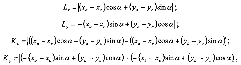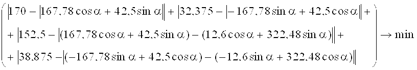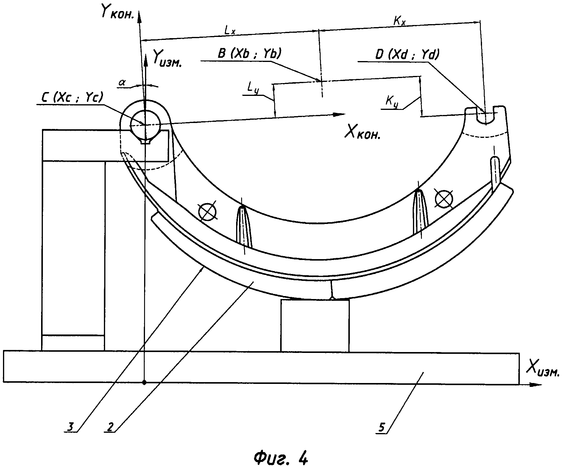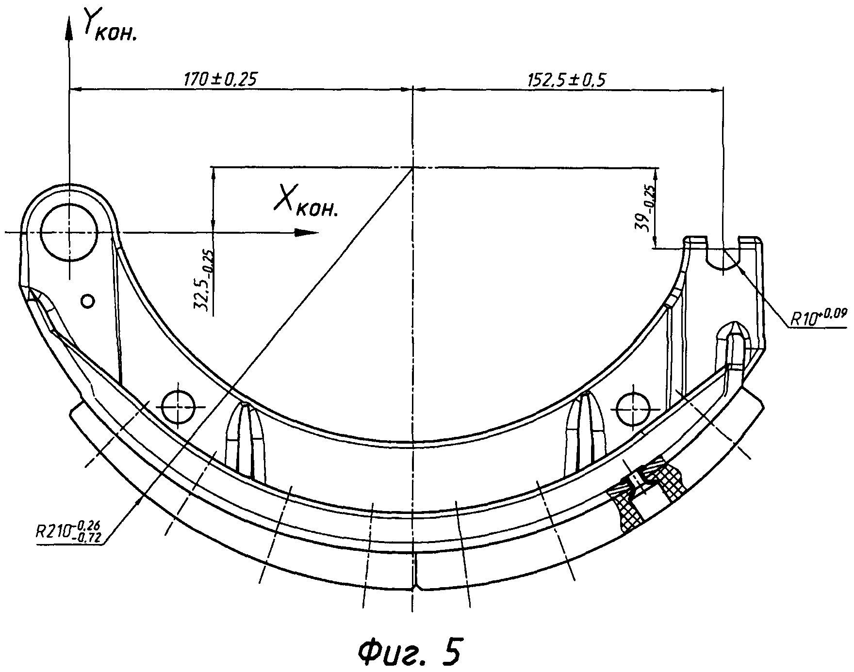 где LX, LY, КX, KY - линейные размеры положения центра радиусного участка относительно характерных точек конструкторских баз, причем угол α определяют решением оптимизационной задачи F→min, целевая функция F которой представляет собой сумму отклонений tx, ty, рx, рyуказанных выше размеров от их значений LXcep>LYceр, КXсер, КYсер, соответствующих серединам полей допусков: