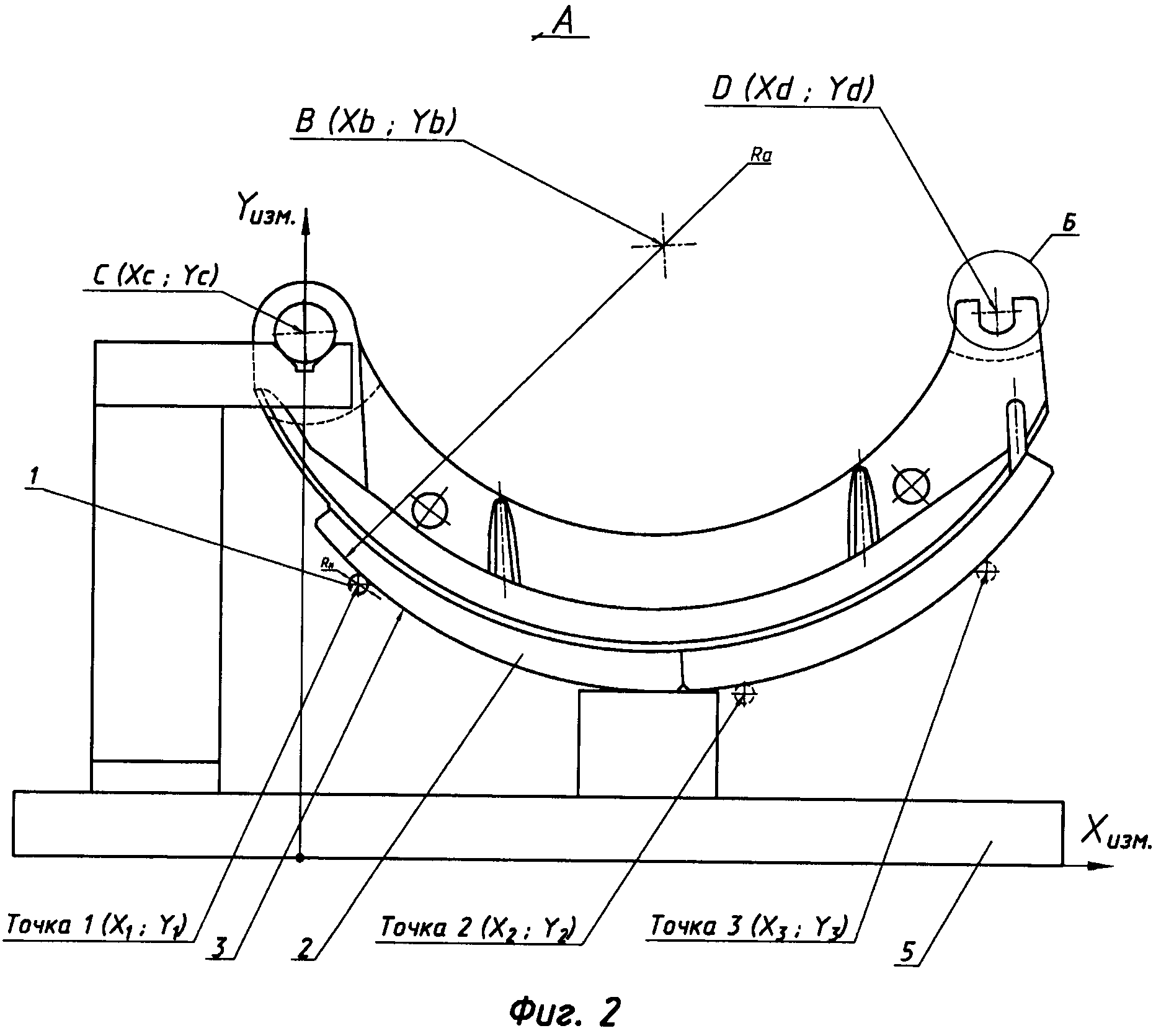 Изобретение относится к средствам для измерения координат центра и радиуса цилиндрических участков деталей. Данный способ включает в себя определение координат центра сферического наконечника радиусом Rизмерительной головки при каждом его касании с поверхностью изделия. Измерения выполняют не менее чем в трех точках радиусного участка, для которых определяют координаты центра сферического наконечника Xи Y. Вычисляют координаты центра B (x; y) и радиус Rрадиусного участка в измерительной системе координат X, Y. После чего выполняют измерения поверхностей конструкторских баз, не совпадающих с измерительными базами, и находят характерные точки конструкторских баз C (x; y) и D (x; y). По характерным точкам строят конструкторскую систему координат X, X, начало которой смещено относительно начала измерительной системы координат на величины xи y, а ее оси повернуты на угол α. В конструкторской системе координат определяют положение центра B радиусного участка относительно характерных точек конструкторских баз C и D по следующим зависимостям: L=|(x-x)cosα+(y-y)sinα|; L=|-(x-x)sinα+(y-y)cosα|; K=|((x-x)cosα+(y-y)sinα)-((x-x)cosα+(y-y)sinα)|; K=|(-(x-x)sinα+(y-y)cosα)-(-(x-x)sinα+(y-y)cosα)|; где L, L, K, K- линейные размеры положения центра радиусного участка относительно характерных точек конструкторских баз. Угол α определяют решением оптимизационной задачи F→min, целевая функция F которой представляет собой сумму отклонений t, t, p, pуказанных выше расстояний от их значений L, L, K, K, соответствующих серединам полей допусков: F=t+t+p+p, t=|L-L|; t=|L-L|; p=|K-K|; p=|K-K|, где L, L, K, K- середины полей допусков соответствующих линейных контрольных размеров в конструкторской системе координат: L- середина поля допуска линейного контрольного размера CB по оси абсцисс; L- середина поля допуска линейного контрольного размера CB по оси ордин