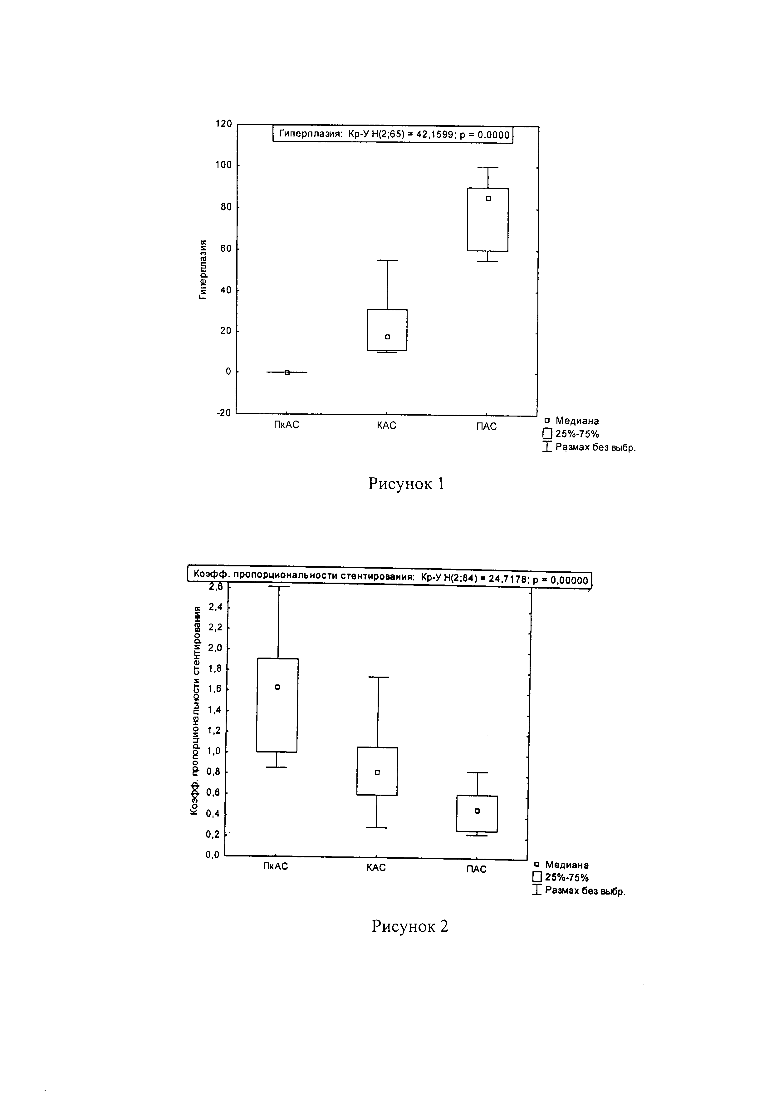 Изобретение относится к медицине, в частности нейрохирургии, и предназначено для прогнозирования возникновения острого тромбоза или рестеноза магистральных артерий головы после эндоваскулярной ангиопластики со стентированием для выявления части пациентов, абсолютно нуждающихся в проведении достаточно агрессивной антикоагулянтной терапии, сопряженной с риском геморрагических осложнений. К осложнениям отдаленного периода после каротидной ангиопластики со стентированием. (КАС) относится рестеноз/окклюзия сонной артерии вследствие гиперплазии слоя интимы на уровне стентированного сегмента. Развитие стеноза более чем на 50% внутри стента считается «in-stent» рестенозом (Cosottini М.И др. In stent restenosis predictors after carotid artery stenting. // Stroke Res. Treat. 2010. T. 2010). Рестенозы зависят как от пред- и послеоперационных маркеров воспаления, так и от формы стеноза: длины и ширины. (Wasser K. и др. Inflammation and in-stent restenosis: The role of serum markers and stent characteristics in carotid artery stenting // PLoS One. 2011. T. 6.). Вероятность развития рестенозов увеличивается при использовании стентов больших размеров или нескольких стентов на близком расстоянии друг от друга. Чем больше материала - т.е. металлонасыщенность - тем выше вероятность развития такого рода осложнений [Khan М.А. и др. Predictors of restenosis after successful carotid artery stenting // An. J. Cardiol. 2003. T. 92. C. 895-897). Развитие рестенозов может зависеть от материала. Была обнаружена связь между контактной аллергией на золотое покрытие стента и рестенозами (Svedman С. и др. A correlation found between contact allergy to stent material and restenosis of the coronary arteries // Contact Dermatitis. 2009. T. 60. C. 158-164). Высокий риск также возможно связан с силиконовым и карбоновым покрытием SiC (silicon-carbid) (Babapulle M.N., Eisenberg M.J. Coated stents for the prevention of restenosis: Part II // Circulation. 2002. Т. 106. C. 2859-2866). Поэтому прогнозирование возникновения острого тромбоза или рестеноза магистральных артерий головы после эндоваскулярной ангиопластики со стентированием остается актуальным. В работе Свистова Д.В. «Хирургическое лечение атеросклеротичеких поражений артерий каротидного бассейна». (Кафедра нейрохирургии Российской Военно-медицинской академии, Санкт-Петербург, Россия. (http://www.neuro.neva.ru/RNOnline_22/Russian/Issues/Articles_2_2001/svistov.htm) для прогноза возможных осложнений у пациентов после реконструктивных и реваскуляризирующих вмешательств в послеоперационный период предлагают проводить тщательный мониторинг неврологических функций; коррекцию нарушений системной гемодинамики, прежде всего артериальной гипертензии; контролируемую медикаментозную терапию в течение года и более, проводя каждые 6 месяцев контрольные ультразвуковые обследования для оценки состояния артерии в зоне реконструкции. При выявлении рестеноза пораженного сегмента принимают решение о показаниях к повторной операции. Недостатком данного метода является длительный послеоперационный «тщательный мониторинг» неврологического, гемодинамического, клинического состояния пациента без точных количественных критериев. Эта работа использована нами в качестве прототипа. В отличие от него мы предлагаем способ прогнозирования возникновения острого тромбоза или рестеноза магистральных артерий головы сразу после эндоваскулярной ангиопластики со стентированием, который осуществляется во время проведения контрольной ангиографии или ультразвукового обследования, с получением точных критериев прогноза. Технический резу