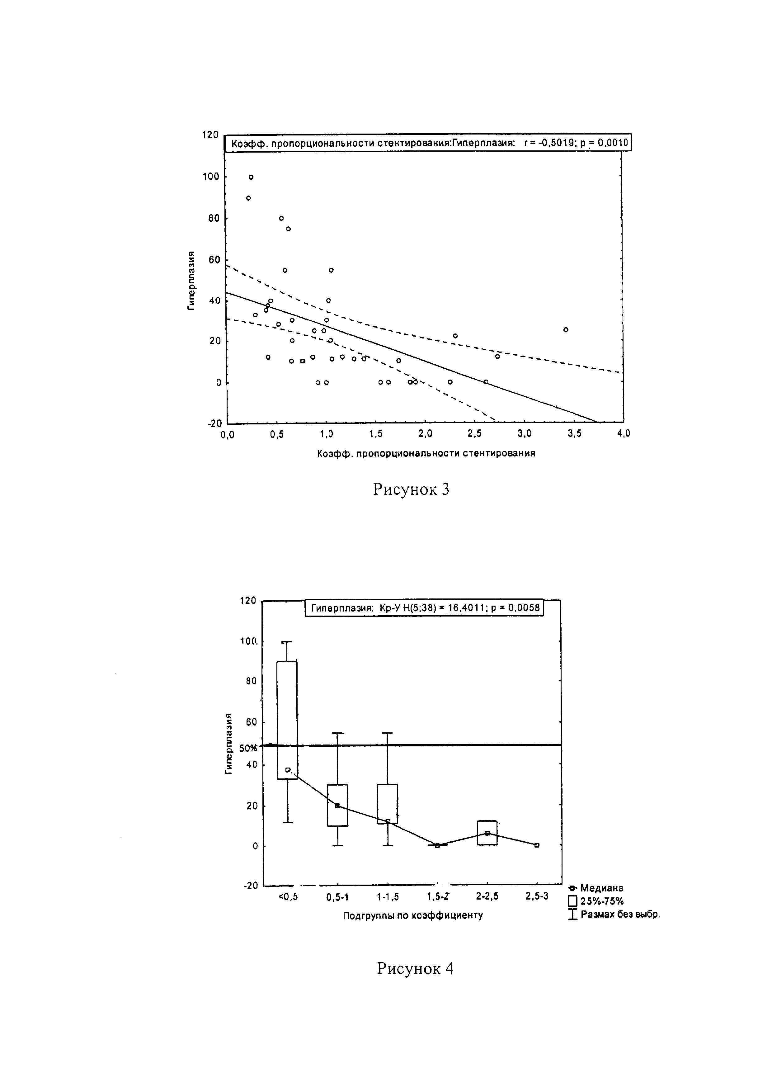 Изобретение относится к медицине, в частности нейрохирургии. Рассчитывают коэффициент пропорциональности стентирования магистральных артерий головы (К), который определяют по формуле К=πD/4L, где D - диаметр артерии после стентирования в мм, L - протяженность простентированного сегмента артерии в мм. При К<0,5 прогнозируют критический уровень развития тромбоза/рестеноза. При К0,5-1,5 прогнозируют субкритический уровень развития тромбоза/рестеноза. При К>1,5 уровень риска развития тромбоза/рестеноза минимальный. Способ позволяет выявить пациентов, остро нуждающихся в проведении достаточно агрессивной антикоагулянтной терапии. 4 ил., 1 табл.
