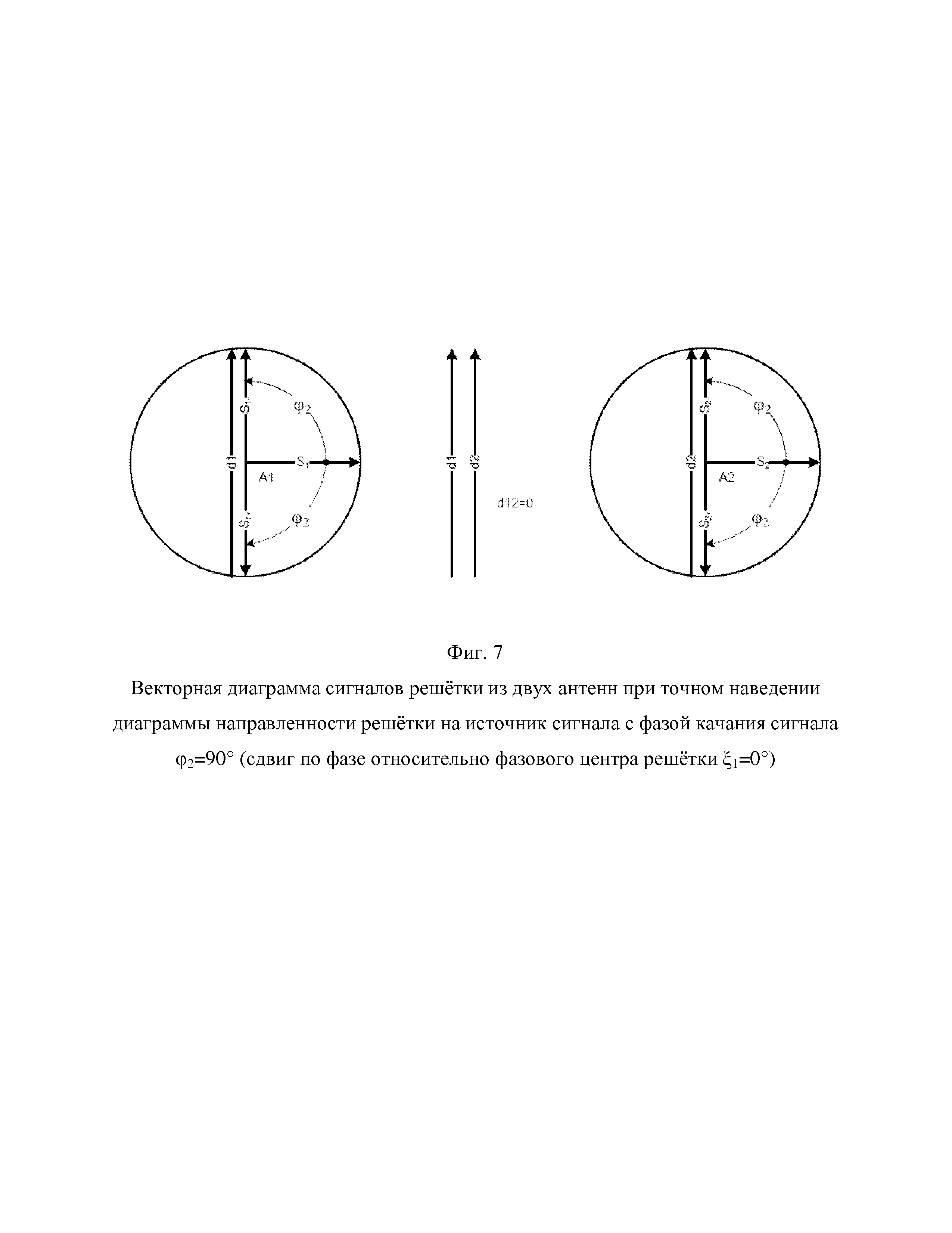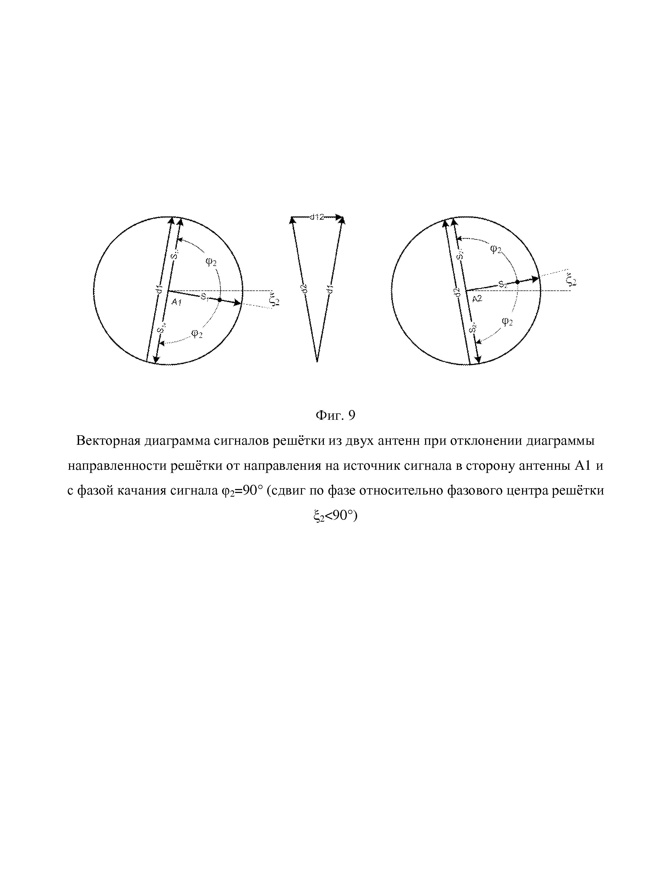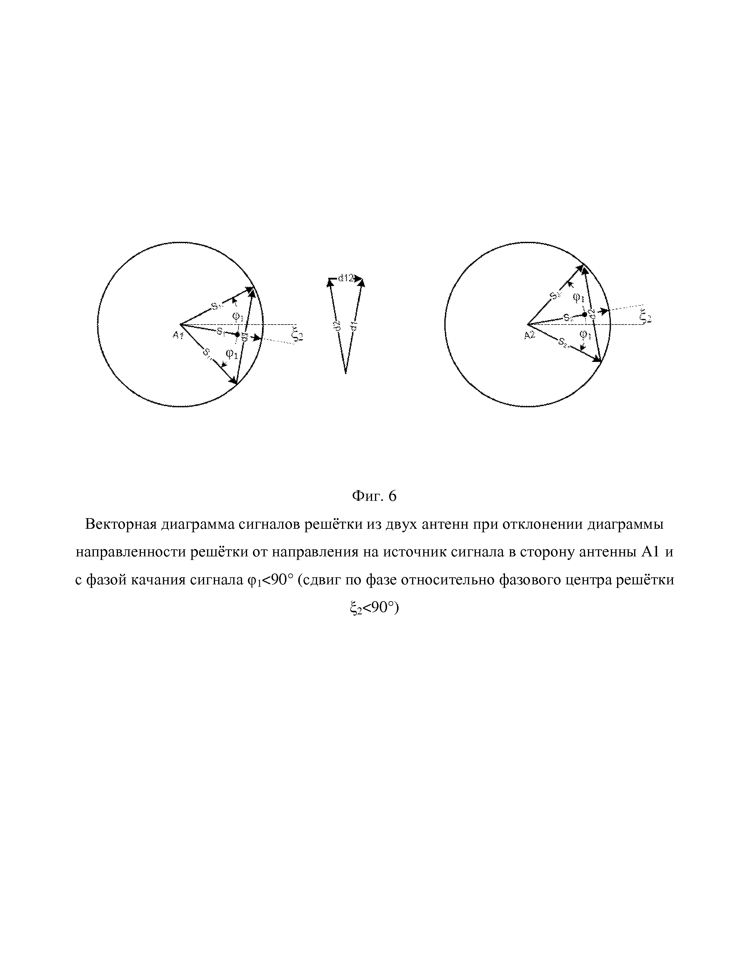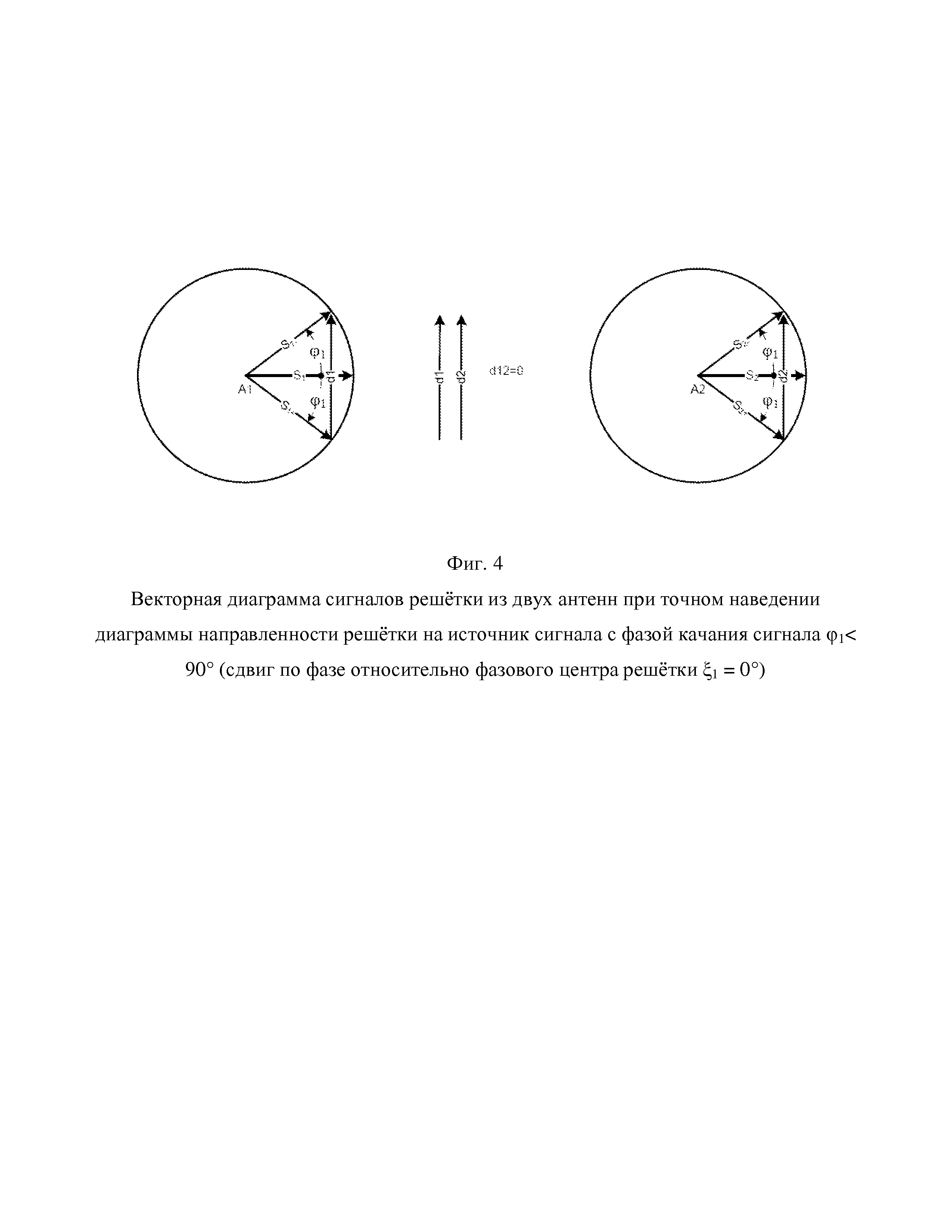 1. Способ фазирования и равносигнально-разностного автосопровождения неэквидистантной цифровой антенной решётки приёма широкополосных сигналов, причём приём сигнала осуществляют антеннами, являющимися частью антенной решётки, характеризующийся тем, что для каждого из двух квадратурных сигналов в информационном канале и в двух каналах автосопровождения каждой антенны формируют цифровые (дискретные) отсчёты принимаемого сигнала в моменты времени, относящиеся к одному и тому же фронту соответствующего сигнала, с последующим суммированием цифровых (дискретных) отсчётов соответствующего канала и соответствующего фронта соответствующего квадратурного сигнала от антенн решётки, причём в каждом канале автосопровождения для каждой антенны отсчёты, сформированные с опережением, предшествуют взятию отсчёта, а отсчёты, сформированные с отставанием, соответственно, отстают от взятия отсчёта сигнала от соответствующей антенны в информационном канале на интервал времени отклонения, для чего импульсы дискретизации сигнала опорной антенны и каждой ведомой антенны задерживают (сдвигают) на заданный интервал времени подставки относительно момента времени прихода фронта соответствующего сигнала соответствующей антенны на устройство фазирования и автосопровождения, сформированные цифровые (дискретные) отсчёты принятых сигналов от антенн записывают в соответствующие индексированные массивы памяти с индексами, которые относятся к текущему фронту волны принимаемого сигнала, спустя интервал времени подставки после записи цифровых (дискретных) отсчётов каждой из двух квадратур опорной антенны выбирают из соответствующих массивов и суммируют информационные цифровые (дискретные) отсчёты для каждой квадратуры по одному от каждой антенны с индексом, относящимся к текущему фронту волны сигнала, и записывают полученный суммарный информационный отсчёт каждой квадратуры в соответствующий массив с соответствующим индексом, в каждом цикле автосопровождения для текущего индекса отсчётов по суммарным значениям информационных отсчётов соответствующих квадратур рассчитывают фазу вектора информационного сигнала, для каждой антенны и каждой из двух квадратур формируют разностный цифровой сигнал автосопровождения со значением разности значений отсчётов в каналах автосопровождения каждой из двух квадратур, взятых с опережением и с отставанием от соответствующего отсчёта информационного канала, для каждой квадратуры формируют суммарный цифровой сигнал автосопровождения ближней либо дальней части решётки со значением, равным сумме значений разностных сигналов антенн соответствующей квадратуры, соответственно, ближней либо дальней к подвижному объекту части антенного поля относительно фазового центра решётки, для каждой квадратуры формируют разностный цифровой сигнал автосопровождения решётки по углу места со значением разности суммарных значений разностных сигналов антенн ближней и дальней к подвижному объекту частей антенного поля относительно фазового центра решётки, по квадратурам разностного цифрового сигнала автосопровождения решётки по углу места определяют модуль и фазу вектора разностного цифрового сигнала автосопровождения решётки по углу места, определяют знак цифрового сигнала автосопро