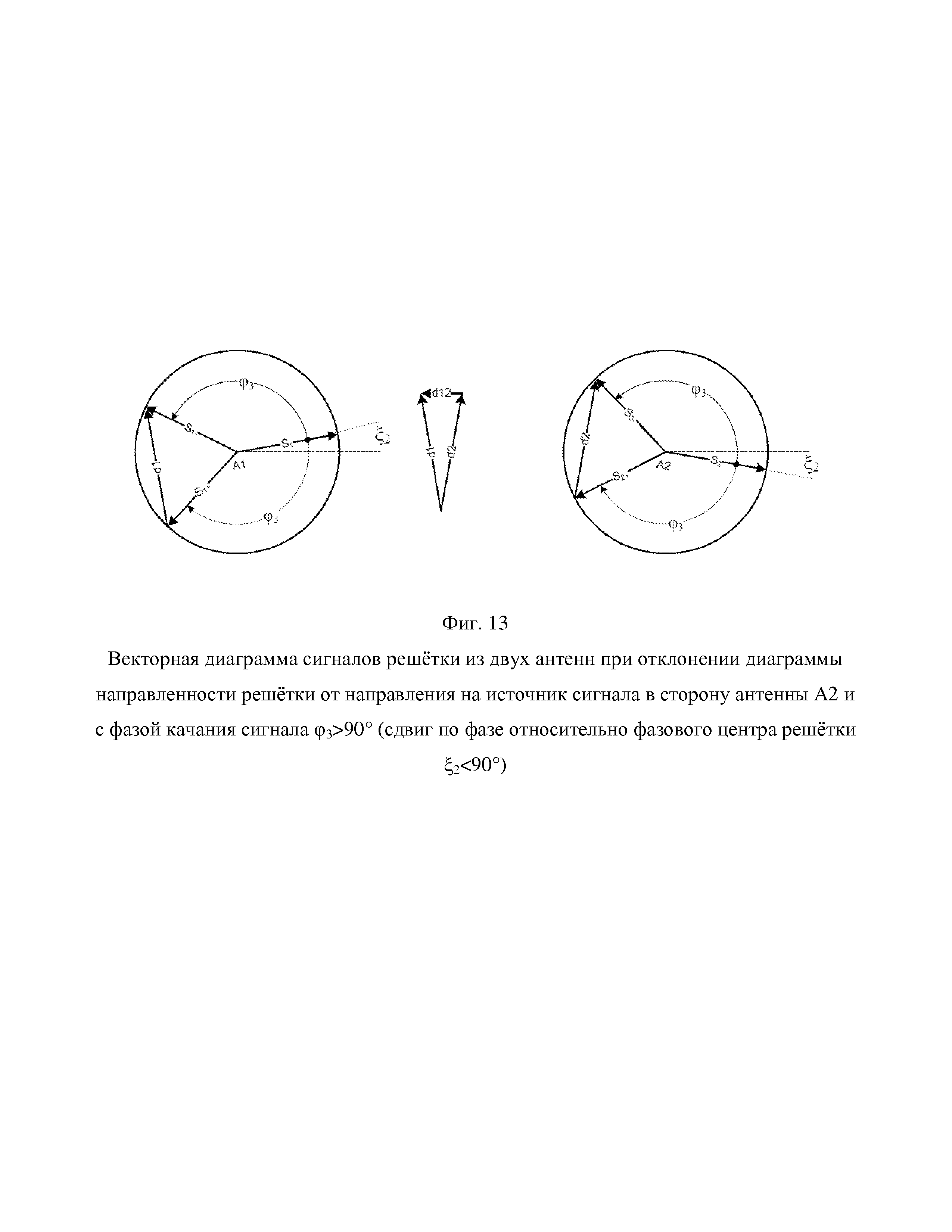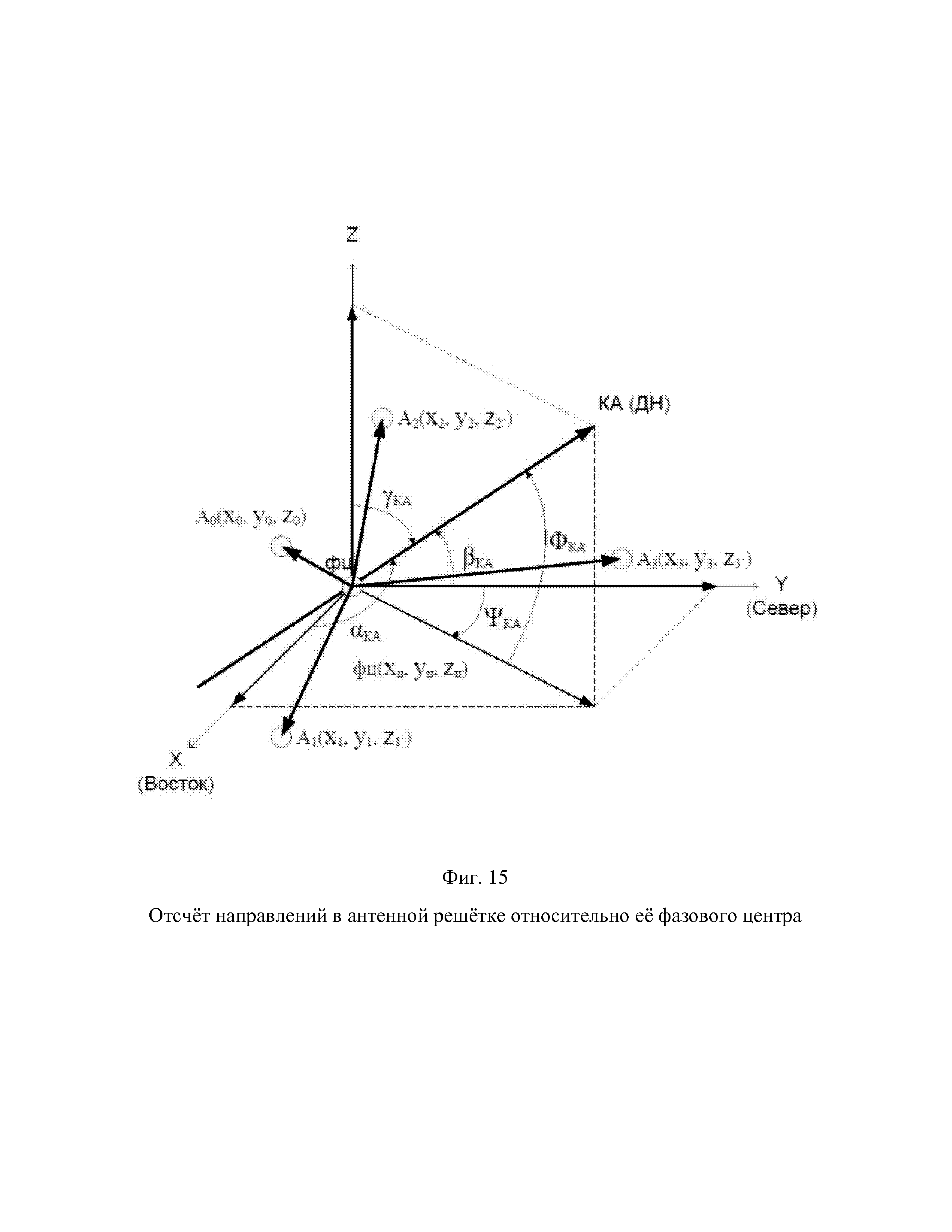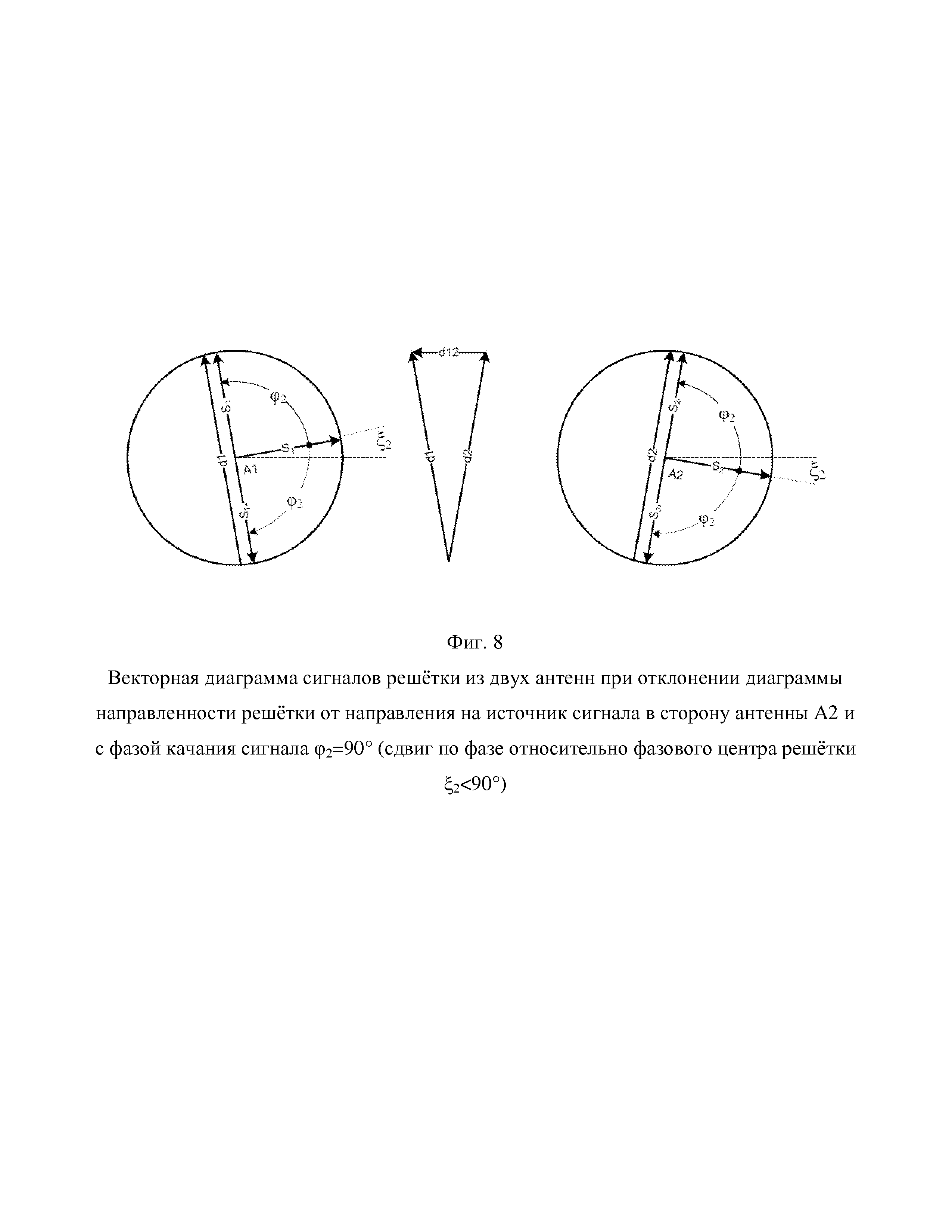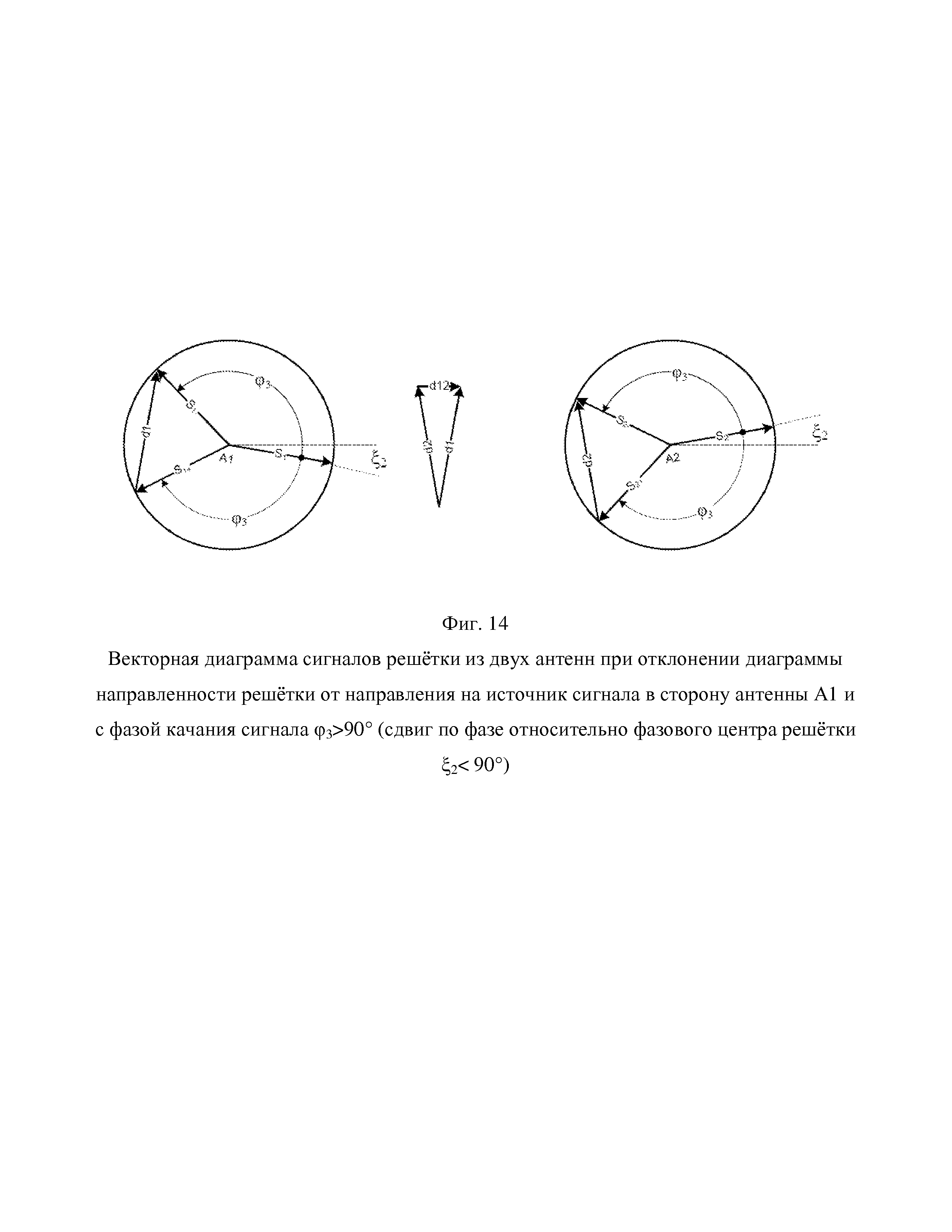 1. Способ фазирования и равносигнально-разностного автосопровождения неэквидистантной цифровой антенной решётки приёма широкополосных сигналов, причём приём сигнала осуществляют антеннами, являющимися частью антенной решётки, характеризующийся тем, что для каждого из двух квадратурных сигналов в информационном канале и в двух каналах автосопровождения каждой антенны формируют цифровые (дискретные) отсчёты принимаемого сигнала в моменты времени, относящиеся к одному и тому же фронту соответствующего сигнала, с последующим суммированием цифровых (дискретных) отсчётов соответствующего канала и соответствующего фронта соответствующего квадратурного сигнала от антенн решётки, причём в каждом канале автосопровождения для каждой антенны отсчёты, сформированные с опережением, предшествуют взятию отсчёта, а отсчёты, сформированные с отставанием, соответственно, отстают от взятия отсчёта сигнала от соответствующей антенны в информационном канале на интервал времени отклонения, для чего импульсы дискретизации сигнала опорной антенны и каждой ведомой антенны задерживают (сдвигают) на заданный интервал времени подставки относительно момента времени прихода фронта соответствующего сигнала соответствующей антенны на устройство фазирования и автосопровождения, сформированные цифровые (дискретные) отсчёты принятых сигналов от антенн записывают в соответствующие индексированные массивы памяти с индексами, которые относятся к текущему фронту волны принимаемого сигнала, спустя интервал времени подставки после записи цифровых (дискретных) отсчётов каждой из двух квадратур опорной антенны выбирают из соответствующих массивов и суммируют информационные цифровые (дискретные) отсчёты для каждой квадратуры по одному от каждой антенны с индексом, относящимся к текущему фронту волны сигнала, и записывают полученный суммарный информационный отсчёт каждой квадратуры в соответствующий массив с соответствующим индексом, в каждом цикле автосопровождения для текущего индекса отсчётов по суммарным значениям информационных отсчётов соответствующих квадратур рассчитывают фазу вектора информационного сигнала, для каждой антенны и каждой из двух квадратур формируют разностный цифровой сигнал автосопровождения со значением разности значений отсчётов в каналах автосопровождения каждой из двух квадратур, взятых с опережением и с отставанием от соответствующего отсчёта информационного канала, для каждой квадратуры формируют суммарный цифровой сигнал автосопровождения ближней либо дальней части решётки со значением, равным сумме значений разностных сигналов антенн соответствующей квадратуры, соответственно, ближней либо дальней к подвижному объекту части антенного поля относительно фазового центра решётки, для каждой квадратуры формируют разностный цифровой сигнал автосопровождения решётки по углу места со значением разности суммарных значений разностных сигналов антенн ближней и дальней к подвижному объекту частей антенного поля относительно фазового центра решётки, по квадратурам разностного цифрового сигнала автосопровождения решётки по углу места определяют модуль и фазу вектора разностного цифрового сигнала автосопровождения решётки по углу места, определяют знак цифрового сигнала автосопро
