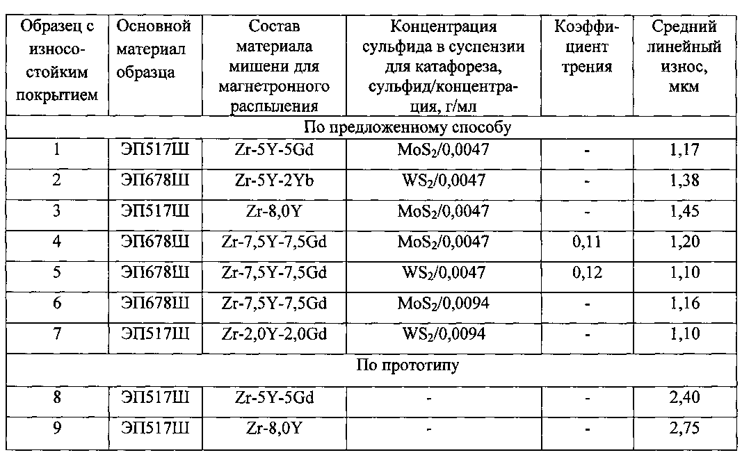 Изобретение относится к металлургии, к способам получения покрытий с использованием магнетронного распыления металлов, и может быть использовано для получения износостойких покрытий металлических деталей трения, в частности, для компрессора газотурбинных двигателей и установок. Оксидная керамика обладает низким коэффициентом теплопроводности и успешно используется в качестве теплозащитных покрытий. Покрытия на основе оксидной керамики, в том числе включающие стабилизированный оксид циркония, используют и в качестве износостойких покрытий, причем наноструктурная керамика обладает лучшими свойствами. Керамический слой наносят на подложку обычно методом газотермического напыления порошковых материалов или с использованием метода физического осаждения из паровой фазы, в том числе с магнетронным распылением металлических мишеней в кислородсодержащей среде. В последнем случае получают более однородное покрытие, что важно для некоторых изделий. Способ нанесения керамического покрытия по патенту RU 2409701 с магнетронным распылением металлической мишени в среде аргона и кислорода является наиболее близким аналогом предлагаемого способа получения износостойких покрытий. Способ нанесения керамического покрытия на изделия из жаропрочных никелевых сплавов по патенту RU 2409701 включает обработку поверхности изделия, помещенного в вакуумированную и наполненную смесью аргона и кислорода камеру распыления, потоком ускоренных ионов инертного газа, совмещенную с нагревом изделия до температуры 500-1000°C, распыление мишени, например, из сплава Zr-(6-8%)Y, в среде аргона и кислорода с образованием оксидного керамического слоя и термообработку изделия. Перед формированием керамического покрытия на поверхность изделия предпочтительно наносят слой жаростойкого никелевого сплава, содержащего алюминий, хром и редкоземельный металл. Полученное таким способом покрытие, например, из стабилизированного иттрием оксида циркония, характеризуется высокой стойкостью к термоциклированию и не предназначено для применения на трущихся поверхностях. Для улучшения износостойкости покрытия его уплотняют различными способами, в том числе с использованием методов пропитки и электроосаждения. Для защиты металла и керамического покрытия от воздействий внешней среды также уплотняют поверхность покрытия, снижают его пористость. Уплотнение поверхности покрытия может быть достигнуто при пропитке покрытия, полученного методом термического напыления, различными соединениями. Так, агентом для пропитки покрытия из оксида циркония или оксида алюминия, нанесенного на металл с соединительным слоем Ni-Cr, является алкоксид или ацетонат, например тетраметилсиликат или ацетилацетонат титана (JPS 63293153). Алкоксиды металлов (Ti, Si, Zr, Al и др.) также используют для уплотнения поверхности полученных методом термического напыления керамических покрытий по патенту JP 2574987, но в процессе электрофореза, подавая на изделие с покрытием положительный потенциал. Алкоксид при сушке полимеризуется с образованием плотного слоя на поверхности покрытия. Для улучшения трибологических характеристик износостойких покрытий в их состав вводят компоненты, обеспечивающие твердую смазку - графит, дисульфиды молибдена и вольфрама. Так, адаптивные нанокомпозитные покрытия 