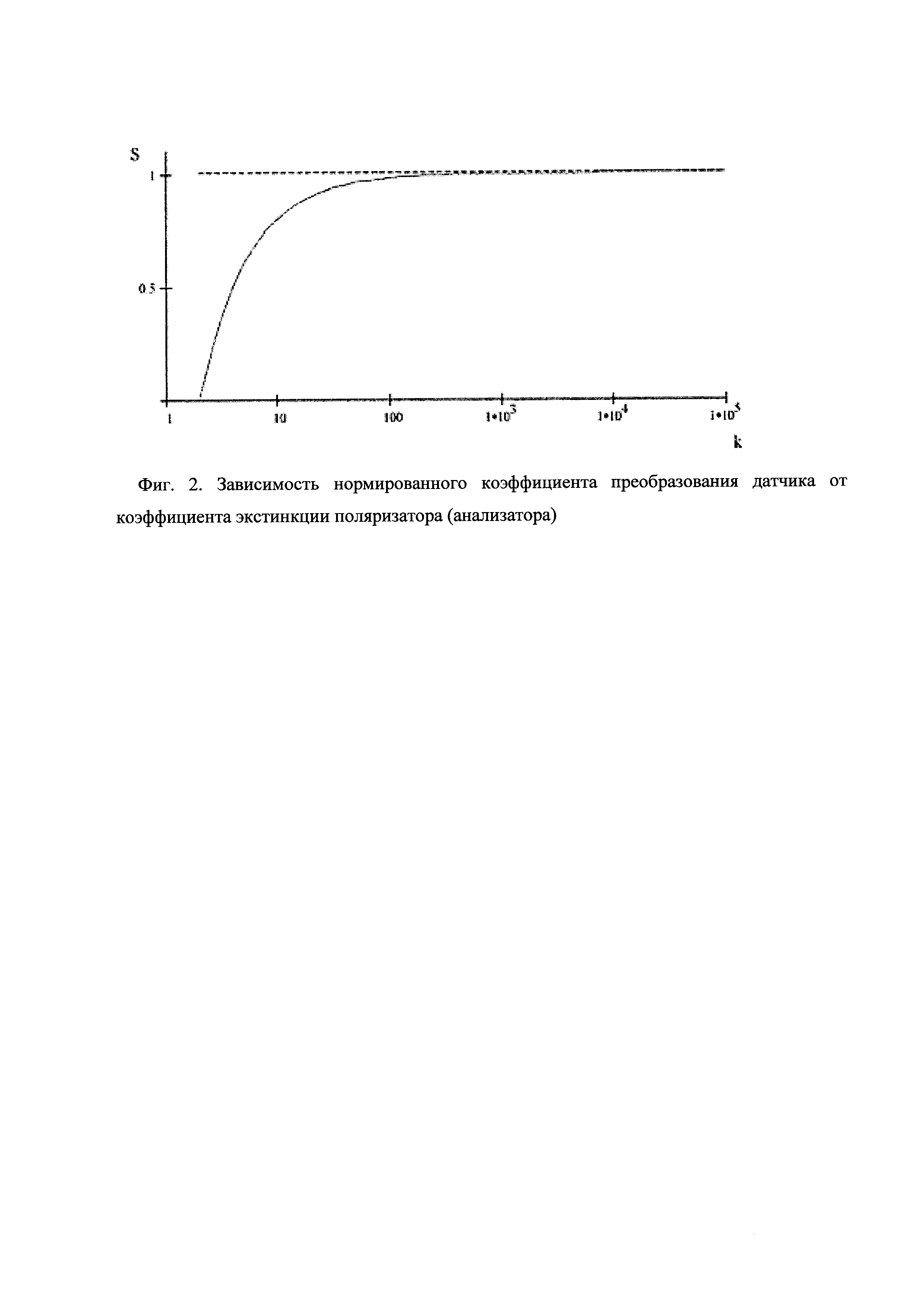, V - константа Верде, Н - проекция приложенного магнитного поля на направление распространения световой волны. В идеальных оптически активных кристаллах Bi2GeO20 собственное линейное двулучепреломление β отсутствует, так как кристалл имеет кубическую симметрию и является изотропным. На практике, вследствие несовершенства кристаллов, возникают внутренние напряжения и, как следствие этого, возникает линейное двулучепреломление. Однако для ограниченных длин оптического пути света в оптически активном кристалле величина его мала по сравнению с величиной собственного кругового двулучепреломления Θ, что позволяет упростить расчеты коэффициента преобразования датчика.