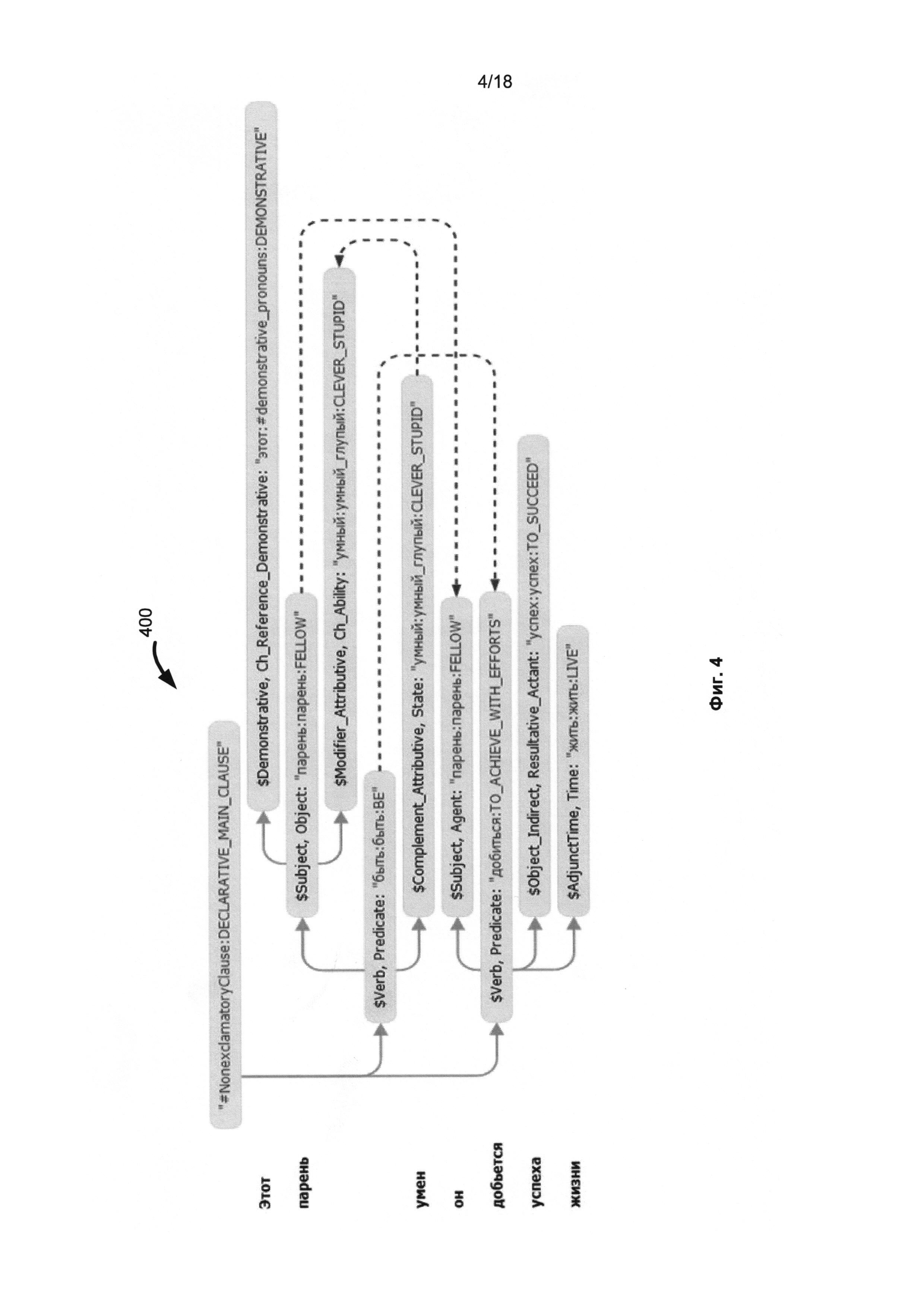 1. Способ разрешения семантической неоднозначности, содержащий: 2. Способ по п. 1, в котором сопоставление по меньшей мере одного неизвестного слова дополнительно содержит: 3. Способ по п. 1, в котором выявленный семантический класс, соответствующий по меньшей мере одному слову во втором тексте, сопоставленному неизвестному слову в первом наборе текстов, основан на совмещении семантических классов семантической структуры текста первого языка с семантическими классами семантической структуры текста второго языка. 4. Способ по п. 1, в котором назначение семантического класса по меньшей мере одному неизвестному слову содержит применение семантических свойств идентифицированного семантического класса к по меньшей мере одному неизвестному слову в первом тексте. 5. Способ по п. 1, в котором выравнивание первого набора текстов на первом языке со вторым набором текстов на втором языке осуществляется по предложениям, причем каждое предложение на первом языке соответствует предложению на втором языке. 6. Система для разрешения семантической неоднозначности, содержащая: 7. Система по п. 6, в которой сопоставление по меньшей мере одного неизвестного слова дополнительно содержит: 8. Система по п. 6, в которой выявленный семантический класс, соответствующий по меньшей мере одному слову во втором тексте, сопоставленному неизвестному слову в первом наборе текстов, основан на совмещении семантических классов семантической структуры текста первого языка с семантическими классами семантической структуры текста второго языка. 9. Система по п. 6, в которой назначение семантического класса по меньшей мере одному неизвестному слову содержит применение семантических свойств идентифицированного семантического класса к по меньшей мере одному неизвестному слову в первом тексте. 10. Система по п. 6, в которой по меньшей мере частичное выравнивание первого набора текстов на первом языке со вторым набором текстов на втором языке осуществляется по предложениям, причем каждое предложение на первом языке соответствует предложению на втором языке. 11. Машиночитаемый носитель данных для разрешения семантической неоднозначности, имеющий хранящиеся на нем машинные инструкции, причем процессор исполняет инструкции для выполнения операций, содержащих: 12. Машиночитаемый носитель данных по п. 11, в котором сопоставление по меньшей мере одного неизвестного слова дополнительно содержит: 13. Машиночитаемый носитель данных по п. 11, в котором выявленный семантический класс, соответствующий по меньшей мере одному слову во втором тексте, сопоставленному неизвестному слову в первом наборе текстов, основан на совмещении семантических классов семантической структуры текста первого языка с семантическими классами семантической структуры текста второго языка. 14. Машиночитаемый носитель данных по п. 11, в котором назначение семантического класса по меньшей мере одному неизвестному слову содержит применение семантических свойств идентифицированного семантического класса к по меньшей мере одному неизвестному слову в первом тексте. 15. Машиночитаемый носитель данных по п. 11, в котором по меньшей мере частичное выравнивание первого набора текстов на первом языке со вторым набором текстов на втором языке осуществляется по предложениям, причем каждое предложение 
