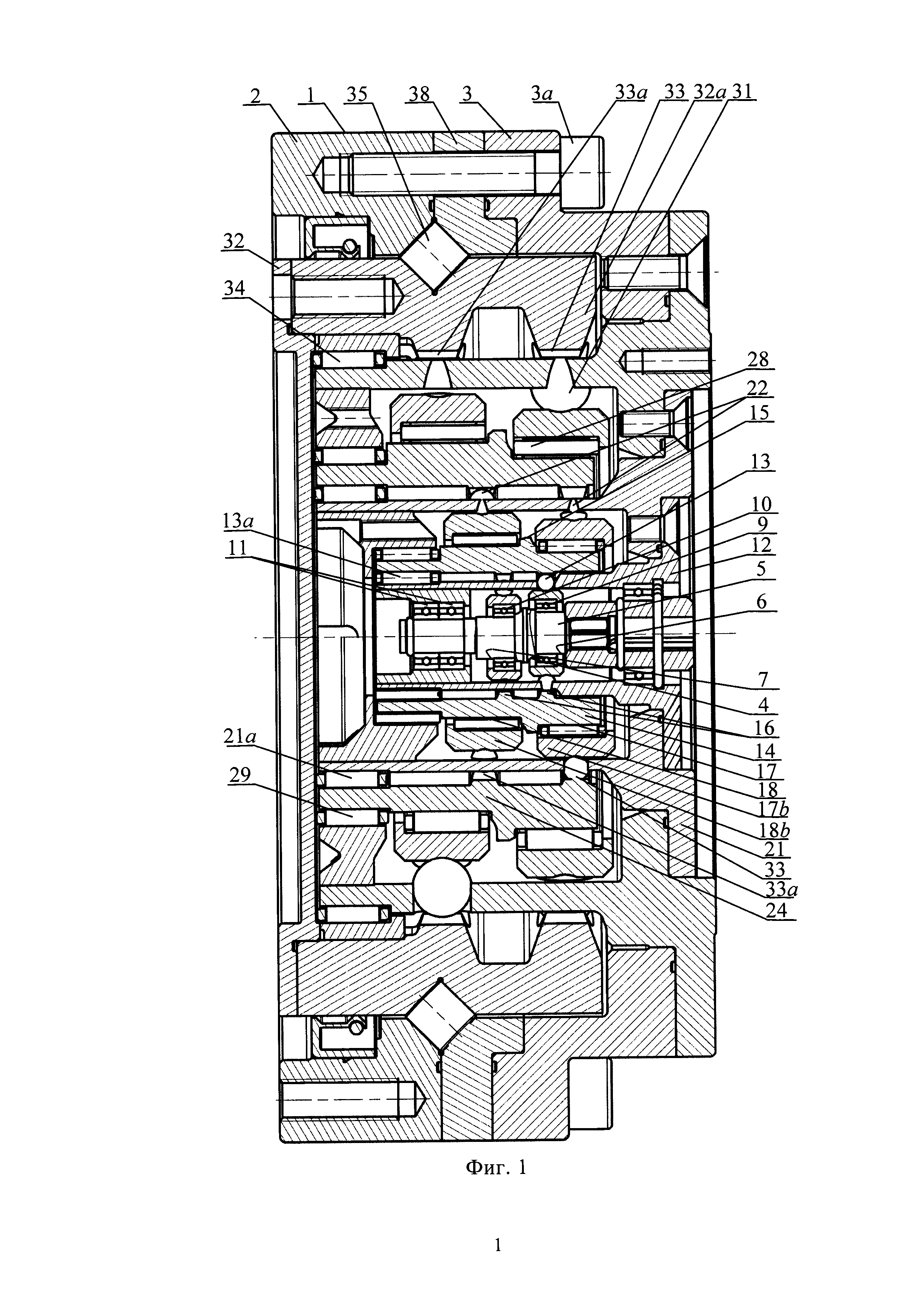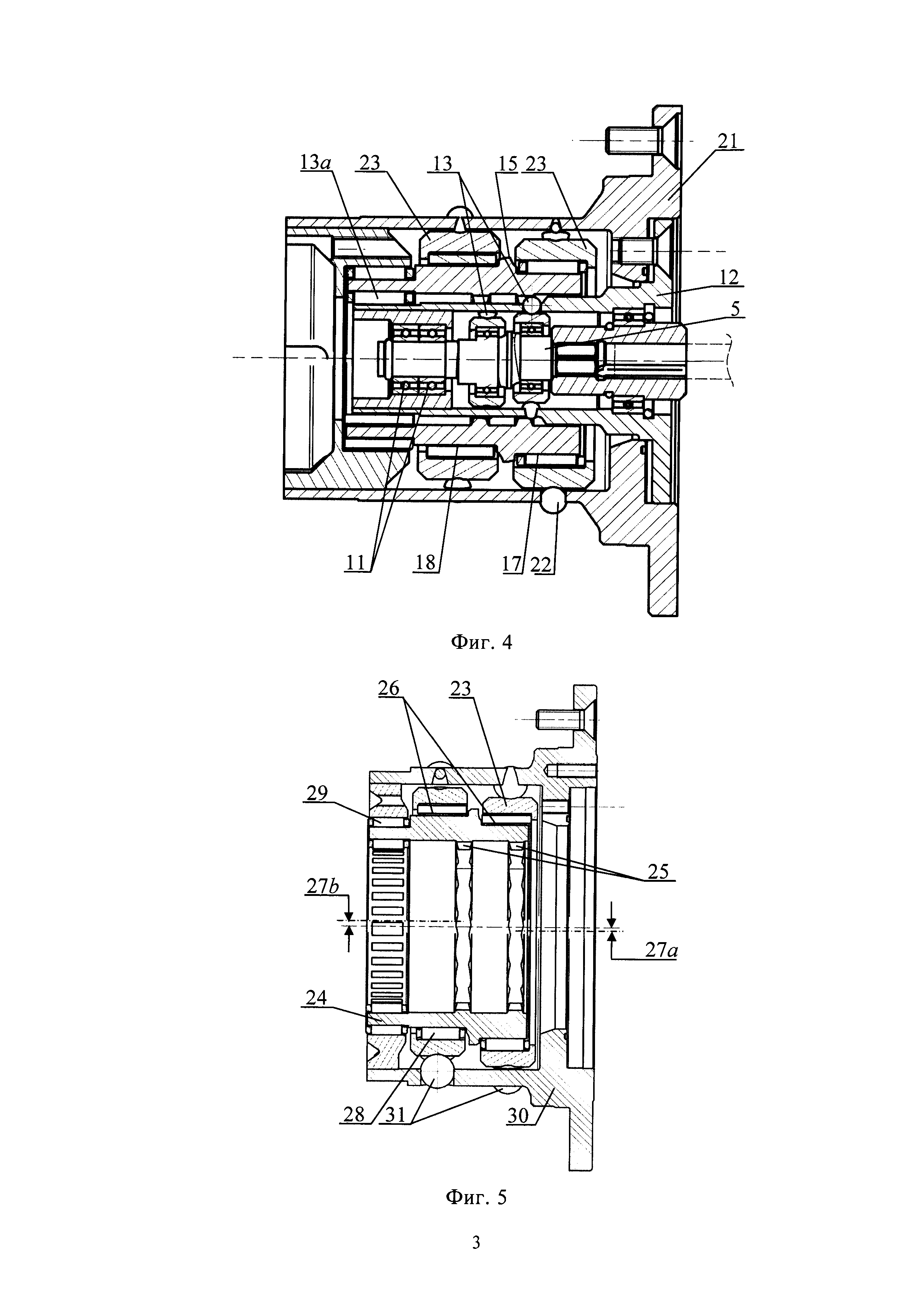 1. Редуктор трехступенчатый, состоящий из корпуса с левой и правой, соединенных между собой винтами, торцевыми частями, в котором концентрично относительно центральной оси размещены: волновая передача первой ступени с входным валом, имеющим, по меньшей мере, две эксцентрично расположенные цилиндрические поверхности с противоположно направленными эксцентриситетами и с подшипниками качения, расположенными на цилиндрических поверхностях и, по меньшей мере, с одним опорным подшипником качения; сепаратор волновой передачи первой ступени, неподвижный относительно корпуса, с размещенными в сепараторе, по меньшей мере, двумя рядами промежуточных тел качения, взаимодействующих с эксцентрично расположенными цилиндрическими поверхностями; втулка, являющаяся входным валом второй ступени, охватывающая сепаратор первой ступени, имеющая внутренние эпициклические поверхности, количество которых равно количеству рядов промежуточных тел качения, расположенных в сепараторе первой ступени; а также эксцентрично расположенные цилиндрические поверхности на втулке, эксцентриситеты которых являются противоположно направленными, и с расположенными на них подшипниками качения, и радиальные подшипники качения на левом конце втулки; сепаратор волновой передачи второй ступени с размещенными в нем рядами промежуточных тел качения при количестве рядов, равном количеству эксцентрично расположенных на втулке цилиндрических поверхностей с подшипниками качения; выходной вал, установленный в подшипниках в корпусе редуктора, отличающийся тем, что редуктор имеет волновую передачу третьей ступени, образованную охватывающей сепаратор второй ступени втулкой, являющейся входным валом волновой передачи третьей ступени, имеющей внутренние эпициклические поверхности, количество которых равно количеству рядов тел качения в сепараторе волновой передачи второй ступени, а также эксцентрично расположенные на втулке цилиндрические поверхности с игольчатыми подшипниками качения волновой передачи третьей ступени; радиальный подшипник качения на левом конце втулки; сепаратор волновой передачи третьей ступени с размещенными в нем рядами промежуточных тел качения, при количестве рядов, равном количеству эксцентрично расположенных цилиндрических поверхностей с игольчатыми подшипниками качения на втулке волновой передачи второй ступени, при этом выходным валом редуктора является втулка, охватывающая сепаратор волновой передачи третьей ступени и имеющая внутренние эпициклические поверхности, количество которых равно количеству промежуточных тел качения в сепараторе волновой передачи третьей ступени, между выходным валом и корпусом имеется радиально-упорный подшипник качения с перекрещивающимися роликами. 2. Редуктор трехступенчатый по п. 1, отличающийся тем, что сепаратор первой ступени неподвижно закреплен на сепараторе волновой передачи второй ступени, сепаратор второй ступени неподвижно закреплен на сепараторе волновой передачи третьей ступени, а сепаратор третьей ступени неподвижно закреплен на правой торцевой части корпуса редуктора. 3. Редуктор трехступенчатый по п. 1, отличающийся тем, что выходной вал имеет на втулке V-образную канавку, а на левой торцевой части и вставке корпуса напротив V-образной канавки выходного ва