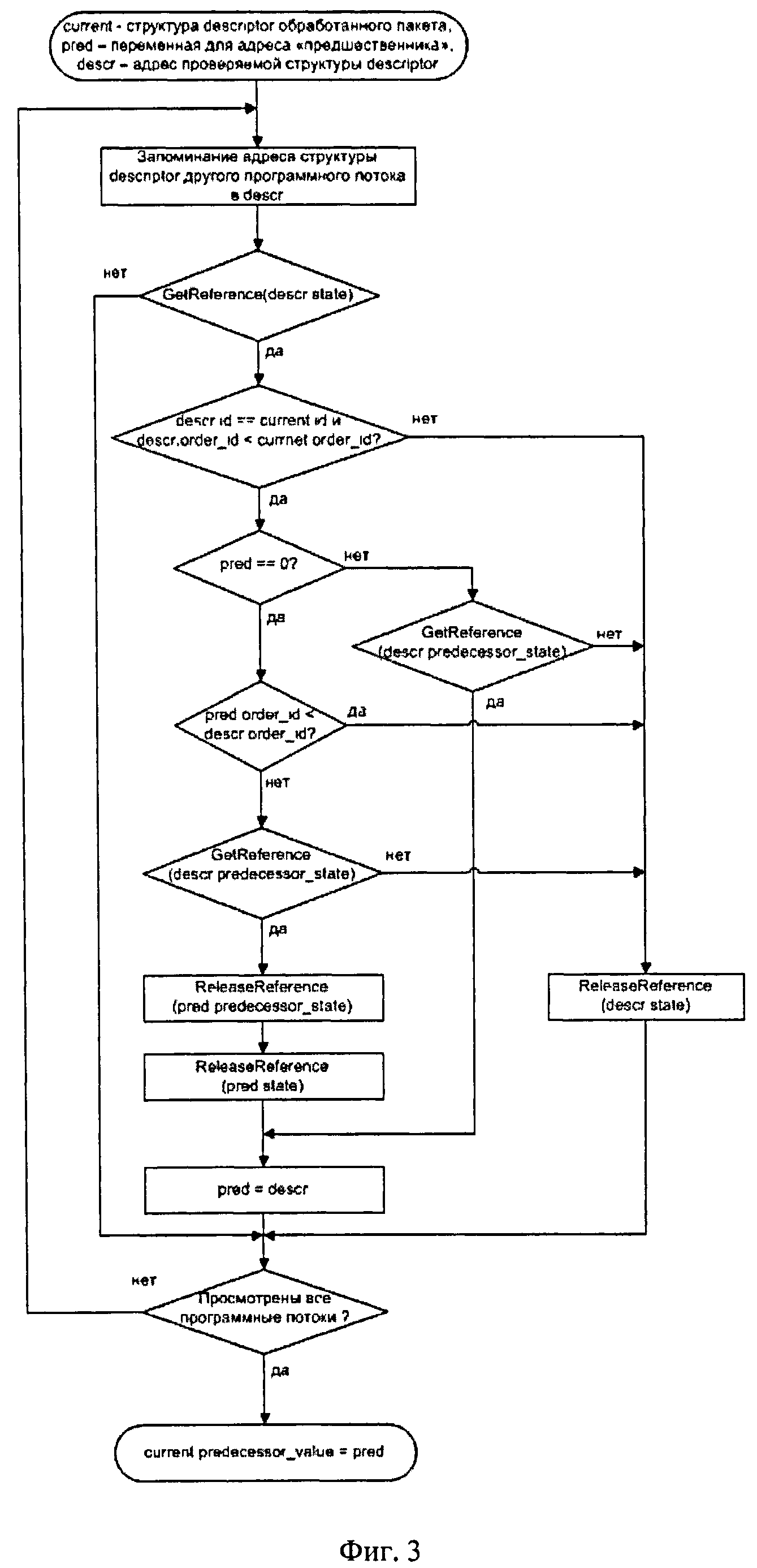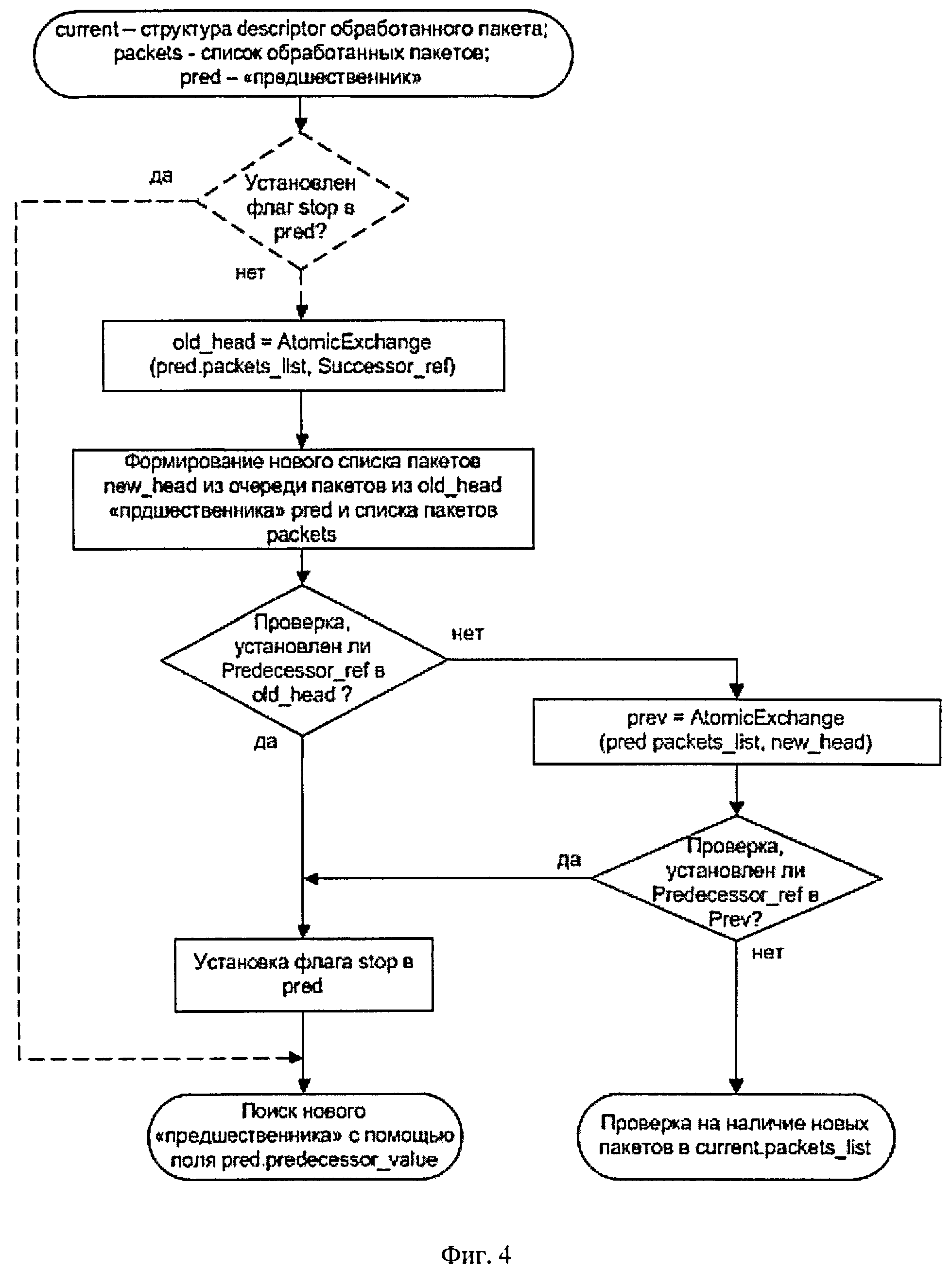 Область техники, к которой относится изобретение Предлагаемое изобретение относится к вычислительной технике и, в частности, к способам параллельной обработки нескольких цифровых потоков данных, каждый из которых представляет последовательность дискретных наборов данных определенного вида, например, IP пакетов и т.п. Уровень техники При обработке цифровых данных часто возникает задача параллельной обработки нескольких цифровых потоков данных, имеющих в общем случае разную скорость, с помощью автоматического многоканального устройства, обеспечивающего необходимую обработку каждого входного потока и передачу его в обработанном виде в соответствующий выходной поток, причем характерная скорость обработки данных в каждом канале обработки может быть существенно меньше скорости входного потока, а требуемая скорость обработки каждого входного потока без задержки обеспечивается за счет наличия множества каналов обработки. Важными условиями успешной работы такого устройства является обеспечение точного соблюдения последовательности обработанных данных в каждом выходном потоке соответствующей последовательности во входном потоке, а также высокая производительность. Характер обработки данных может быть различным, например это может быть преобразование входных пакетов протокола АТМ в выходные пакеты протокола IP, преобразование входных зашифрованных/незашифрованных пакетов IP соответственно в расшифрованные/зашифрованные пакеты IP и т.д. Так, известен способ передачи данных между одним или несколькими первыми сетевыми портами, принимающими один или несколько первых потоков данных, и одним или несколькими вторыми сетевыми портами, передающими один или несколько вторых потоков данных [1]. Способ включает следующие действия: - посылку данных от одного или несколько первых потоков данных во множество каналов обработки; - обработку данных параллельно двумя или более каналами обработки; - получение данных, обработанных каналами обработки и - посылку обработанных данных в один или несколько вторых потоков в один или несколько вторых портов, причем, по крайней мере, в одном потоке из первого и второго потоков данные передаются в кадрах (frames), и каждый кадр в таком одном потоке обработан одним (единственным) каналом обработки, но, по крайней мере, два кадра в одном потоке обработаны двумя различными каналами обработки. Данные, полученные в каждом первом потоке данных, передаются в соответствующий второй поток данных в том же самом порядке, в котором эти данные были в первом потоке данных. После получения из первого потока каждый кадр перед посылкой на обработку в канал обработки снабжается дополнительными атрибутами (данными), в состав которых включают, по крайней мере, - номер кадра в первом потоке и - идентификатор канала, в который посылается данный кадр. Для обеспечения правильного порядка следования обработанных кадров в соответствующем втором потоке организуется стек памяти, сформированный по принципу "первым пришел - первым ушел" (first in - first out, FIFO), куда записываются идентификаторы канала для тех каналов обработки, в которые посылаются кадры из первого потока. Поэтому когда после получения из канала обработки обработанный кадр посылается во второй поток, то это делается в порядке следования идентификаторов кан