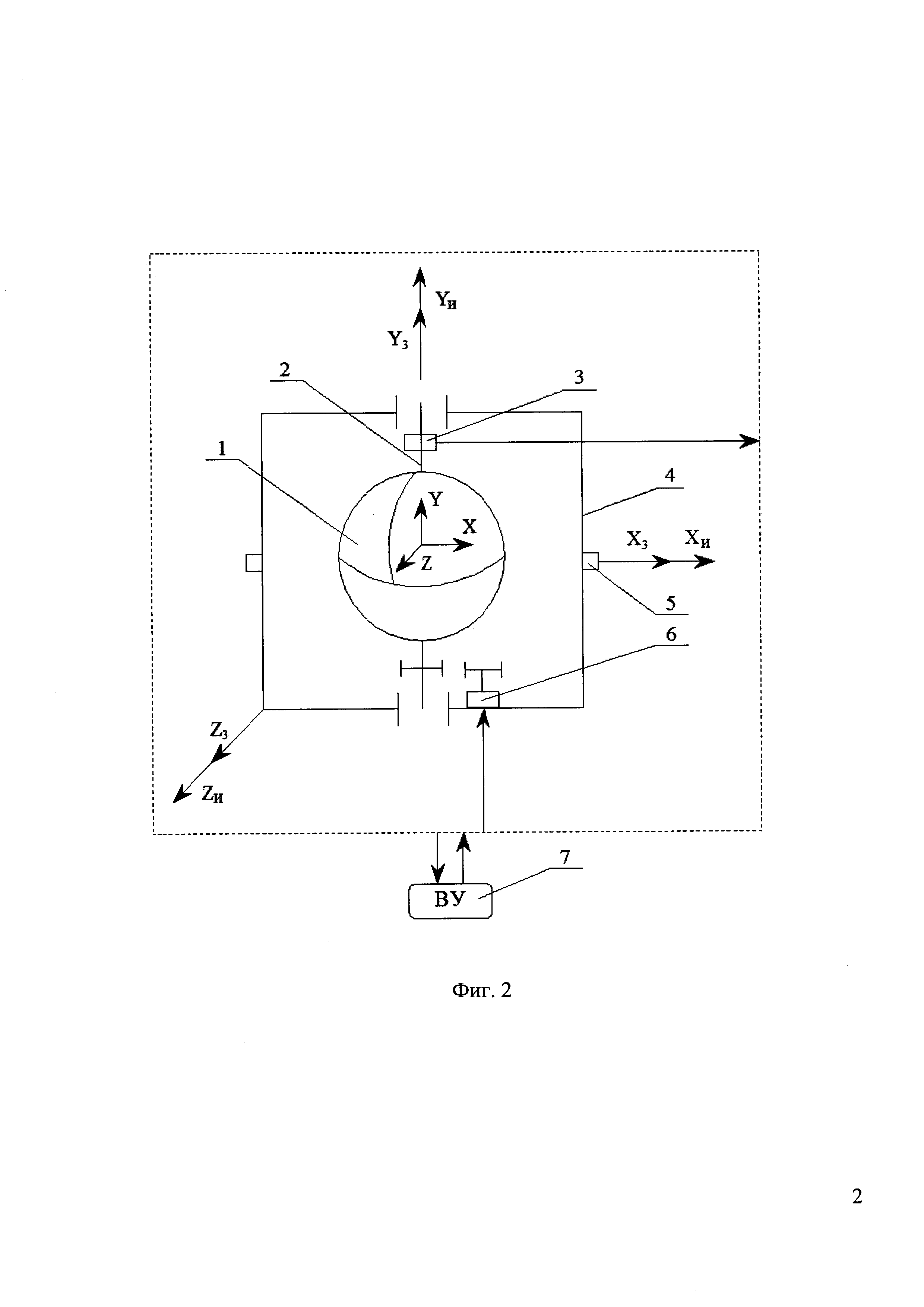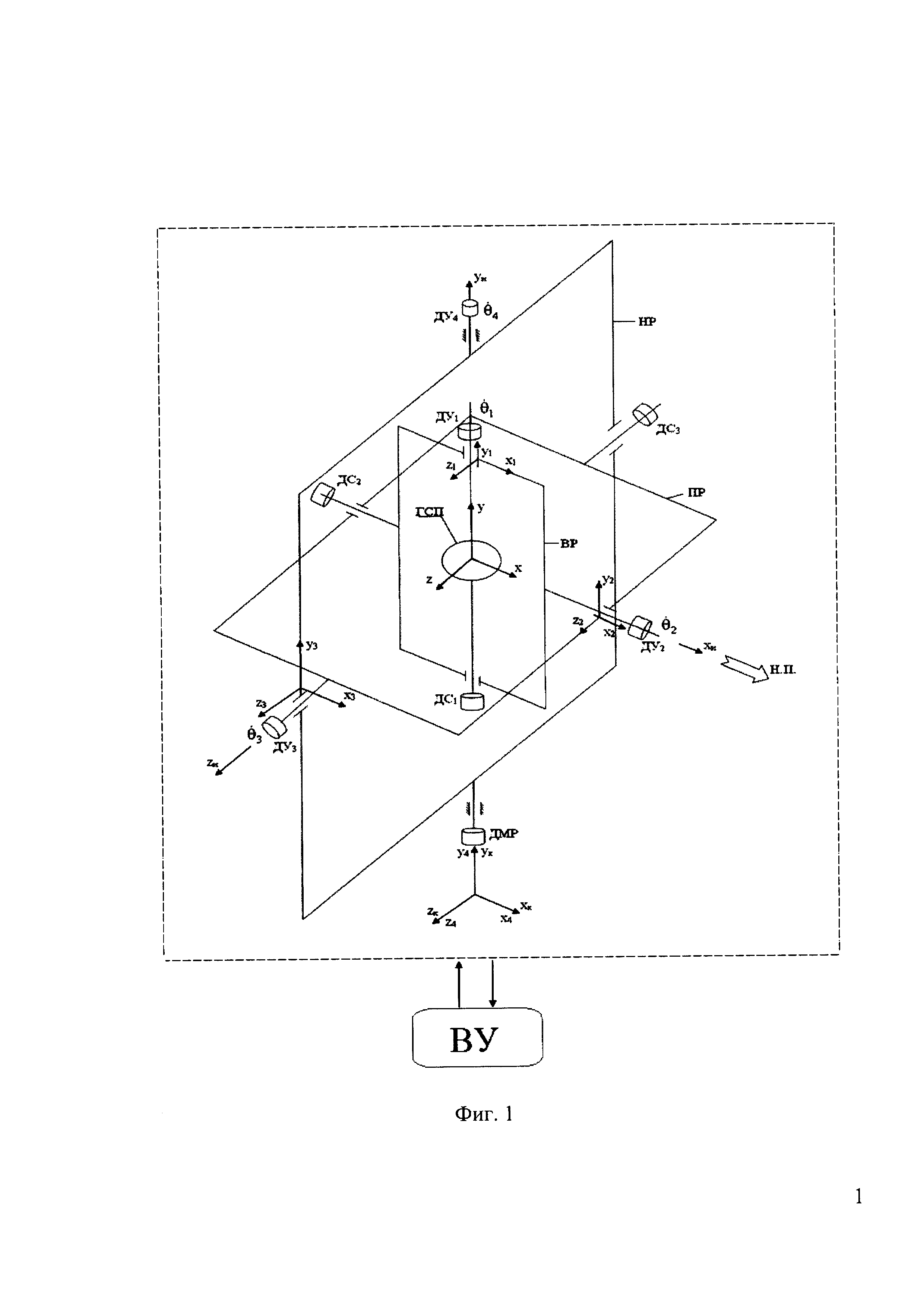 Устройство карданова подвеса для увеличения диапазона углов поворота изделия относительно гиростабилизированной платформы (ГСП) относится к области приборостроения и может быть использовано в системах управления подвижных объектов (летательных аппаратов) с использованием гиростабилизированной платформы, установленной на изделии в кардановом подвесе. Известен способ увеличения диапазона углов поворота изделия относительно ГСП, установленной на изделии в кардановом подвесе (RU 2552857 от 25.11.2013 г.). Увеличение углов поворота вокруг продольной, поперечной и вертикальной осей изделия относительно ГСП, установленной на изделии в кардановом подвесе, обеспечивают за счет автоматического перевода трехосного карданова подвеса по сигналам от вычислительного устройства из режима работы с «ракетными» углами в режим работы с «самолетными» углами и обратно на заданное (требуемое) число раз с помощью двигателя механизма разворота (ДМР), установленного на дополнительной наружной раме карданова подвеса ГСП, при этом ось вращения дополнительной рамы относительно летательного аппарата устанавливают коллинеарно вертикальной оси летательного аппарата. Рассматриваемая схема четырехосного карданова подвеса позволяет обеспечить: - совмещение в одном приборе функции двух приборов: определение «ракетных» и «самолетных» углов ориентации изделия, используя предлагаемый механизм разворота рам четырехосного карданова подвеса; - улучшение технических характеристик изделия: повышение маневренности изделия, экономии энергетики; - сохранение таких же точностных характеристик комплекса командных приборов (ККП), как в схеме с трехосным кардановым подвесом; - стабилизация ГСП не изменяется и работает в режиме трехосного гироскопического стабилизатора (ТГС); - масса и моменты инерции ГСП не увеличиваются; - жесткость конструкции между гироблоками и двигателями стабилизации сохраняется, как и в трехосном ТГС; - переключение прибора из режима работы с «ракетными» углами в режим работы с «самолетными» углами и обратно осуществляется разворотом трехосного карданова подвеса относительно корпуса изделия на углы от нуля до ±90 градусов и обратно по сигналам от вычислительного устройства; - внешние возмущения на ГСП при работающем и неработающем ДМР передаются через трение в подшипниках, установленных на осях карданова подвеса; - при всех режимах работы с «ракетными» и «самолетными» углами, а также при переходе от «ракетных» углов к «самолетным» углам и обратно необходимо следить, чтобы угол Θ2 по промежуточной оси трехосного карданова подвеса не превышал пределов ±70 градусов. В патенте RU 2552857 отмечено, что дополнительная рама может иметь различное конструктивное исполнение, обеспечивающее минимальный вес и габариты прибора. Анализ показывает, что во всех режимах работы используется один и тот же ТГС, а дополнительная рама служит только для перевода работы ТГС из одного режима в другой. Требования к ТГС и к наружной раме различны. Основные требования к ТГС: - обеспечить заданную максимально возможную точность определения угловой ориентации и движения центра масс изделия относительно инерциального пространства; - изготовление ТГС в целом и его комплектующих (акселерометров, гироблоков, датчиков углов, двигателей стабилизации, элементов с