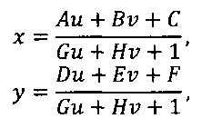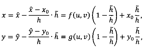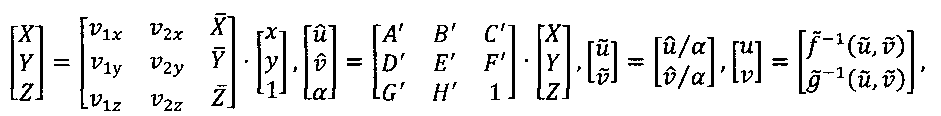 , в результате решения данной системы получают следующий результат для высоты точки:, такое, что искажения дисторсии устраняются, а во-вторых, вычисляют коэффициенты матрицы преобразования