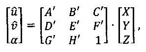 - обобщенные координаты изображения данной точке в пространстве пиксельных координат, т.е.
