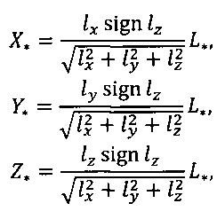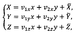 над плоскостью дороги, соответствующие ортогональные проекции на плоскость дороги (х1,y1) и (x2,y2) определяют на основании системы уравнений из соотношений предыдущего пункта: