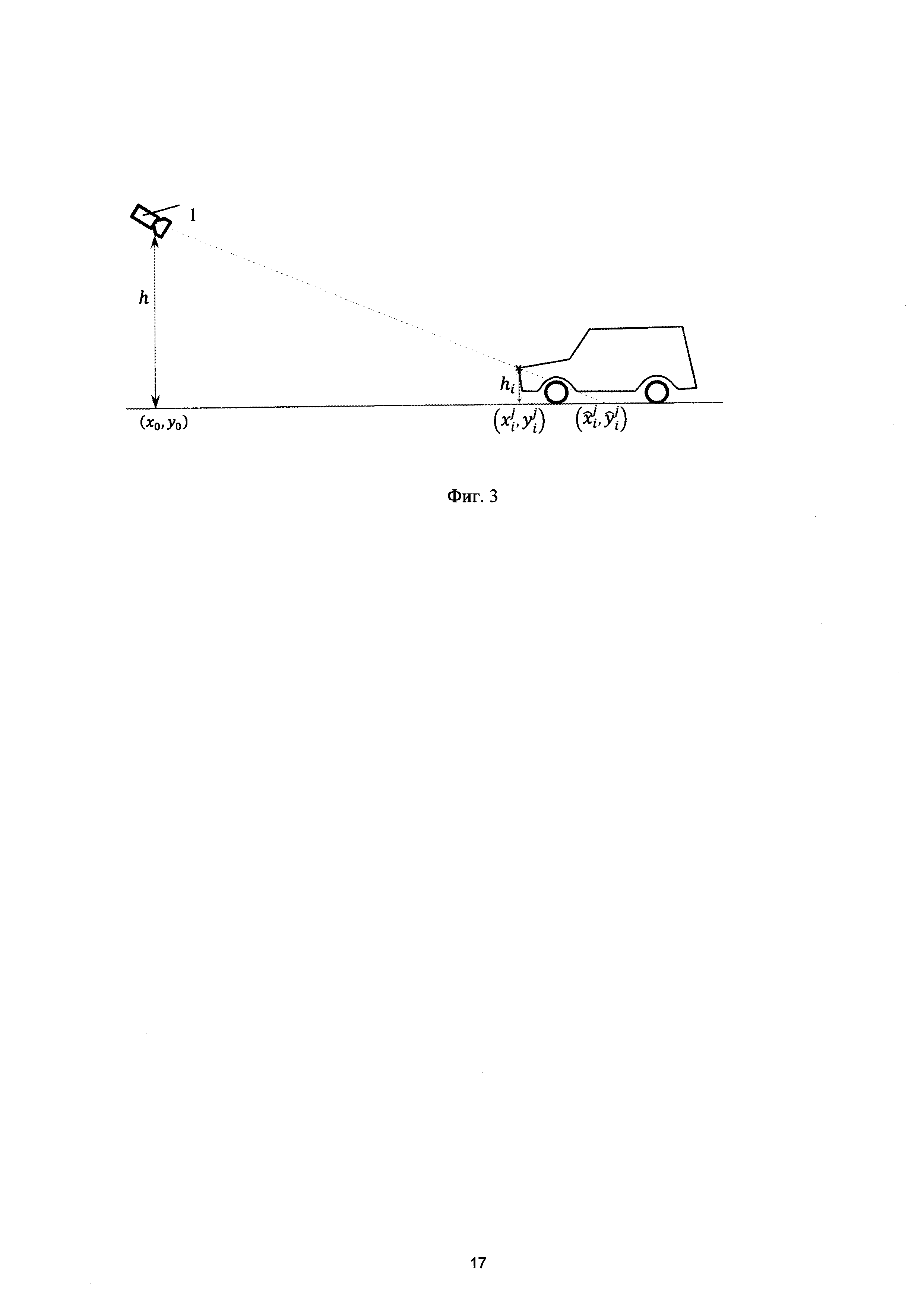 . Для определенности полагают, что ось Z совпадает с оптической осью видеокамеры 1 и совпадает с наблюдаемой сценой (дорожным полотном), а оси X и Y параллельны и сонаправлены с осями координат изображения в пространстве