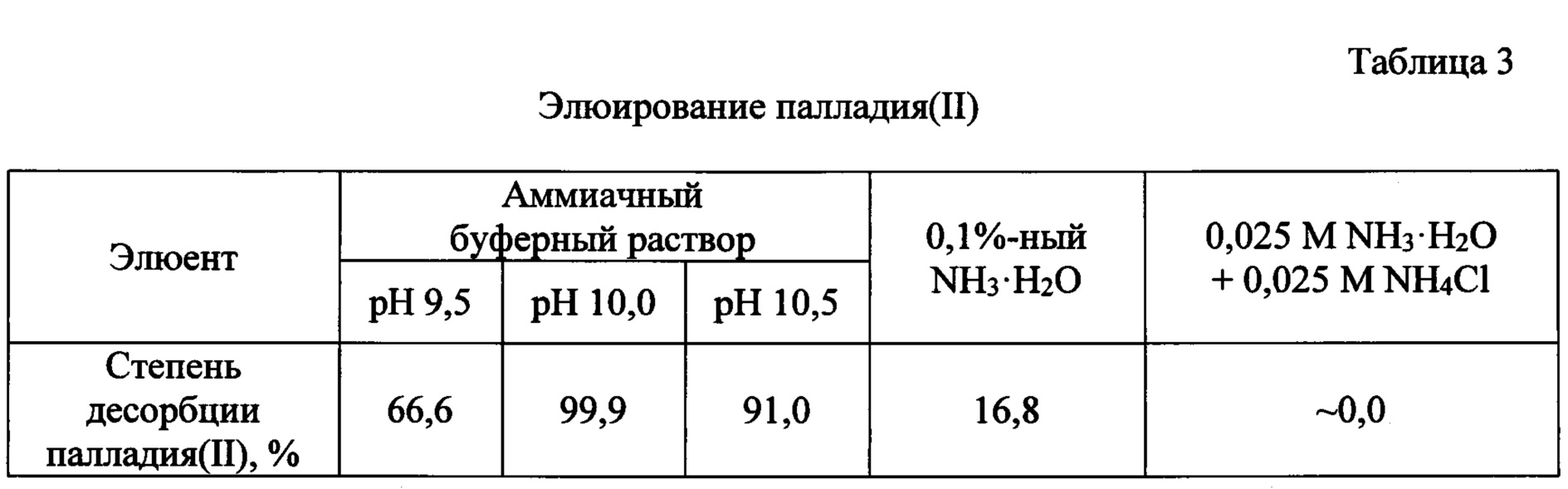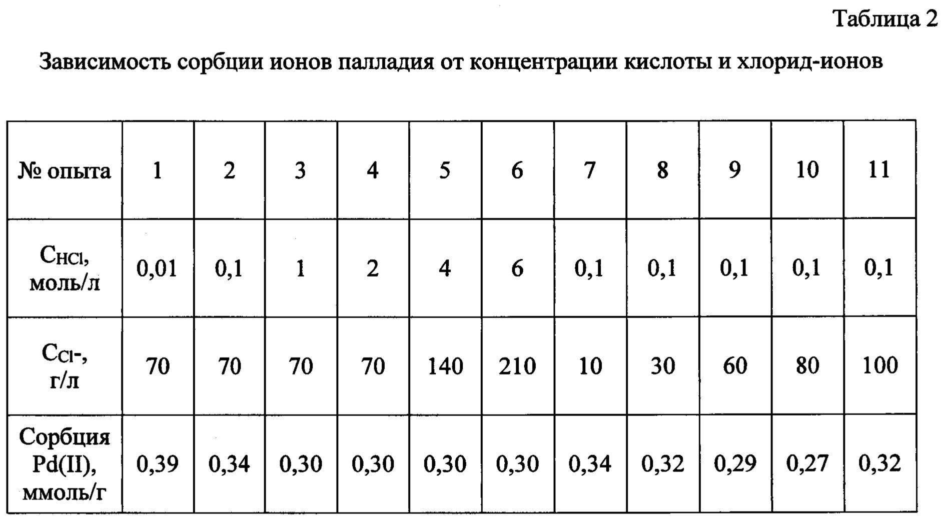 1. Сорбент, содержащий химически привитые на поверхности силикагеля активные группы, для извлечения ионов палладия, отличающийся тем, что привитые группы имеют следующую структуру: 2. Сорбент по п. 1, отличающийся тем, что удельная поверхность силикагеля составляет 80-530 м2/г, а количество привитого модификатора, содержащего активные группы, составляет 0,15-0,69 ммоль на 1 г сорбента. 3. Способ извлечения ионов палладия из кислого хлоридного раствора, включающий контактирование раствора с сорбентом и последующее элюирование палладия(II), отличающийся тем, что в качестве сорбента используют сорбент, охарактеризованный в пп. 1 и 2, а сорбцию осуществляют из 0,1-4 М HCl. 4. Способ по п. 3, отличающийся тем, что элюирование палладия(II) осуществляют аммиачным буферным раствором с рН 10,0.