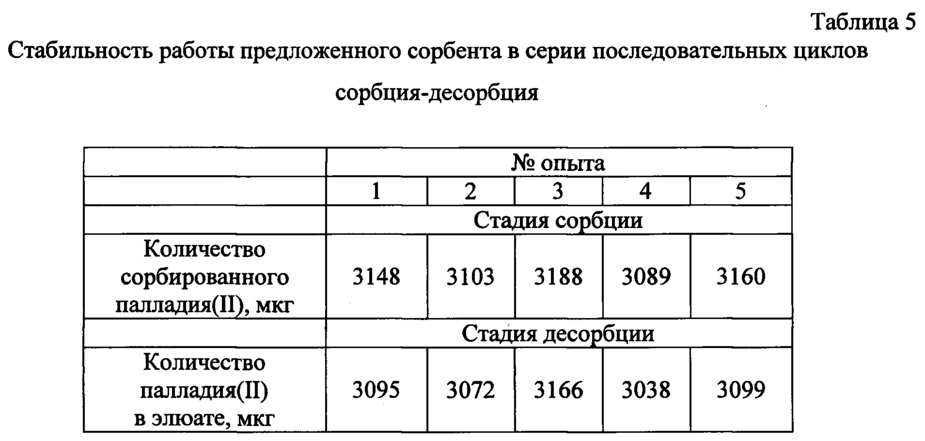 Изобретение относится к области получения и применения материалов для сорбционного извлечения ценных элементов из водных растворов. Сорбент представляет собой силикагель с химически привитыми группами 2-карбоксифенил(алкил)сульфида. Сорбцию палладия(II) осуществляют из 0,1-4 М HCl, десорбцию проводят аммиачным буферным раствором с рН 10,0. Изобретение позволяет количественно и селективно извлекать ионы палладия из растворов сложного состава, содержащих ионы платины(IV), меди(II) и никеля(II), при проведении процесса сорбции из 0,1-4 М HCl и обеспечивает возможность количественной десорбции палладия(II). 2 н. и 2 з.п. ф-лы, 5 табл., 6 пр.
