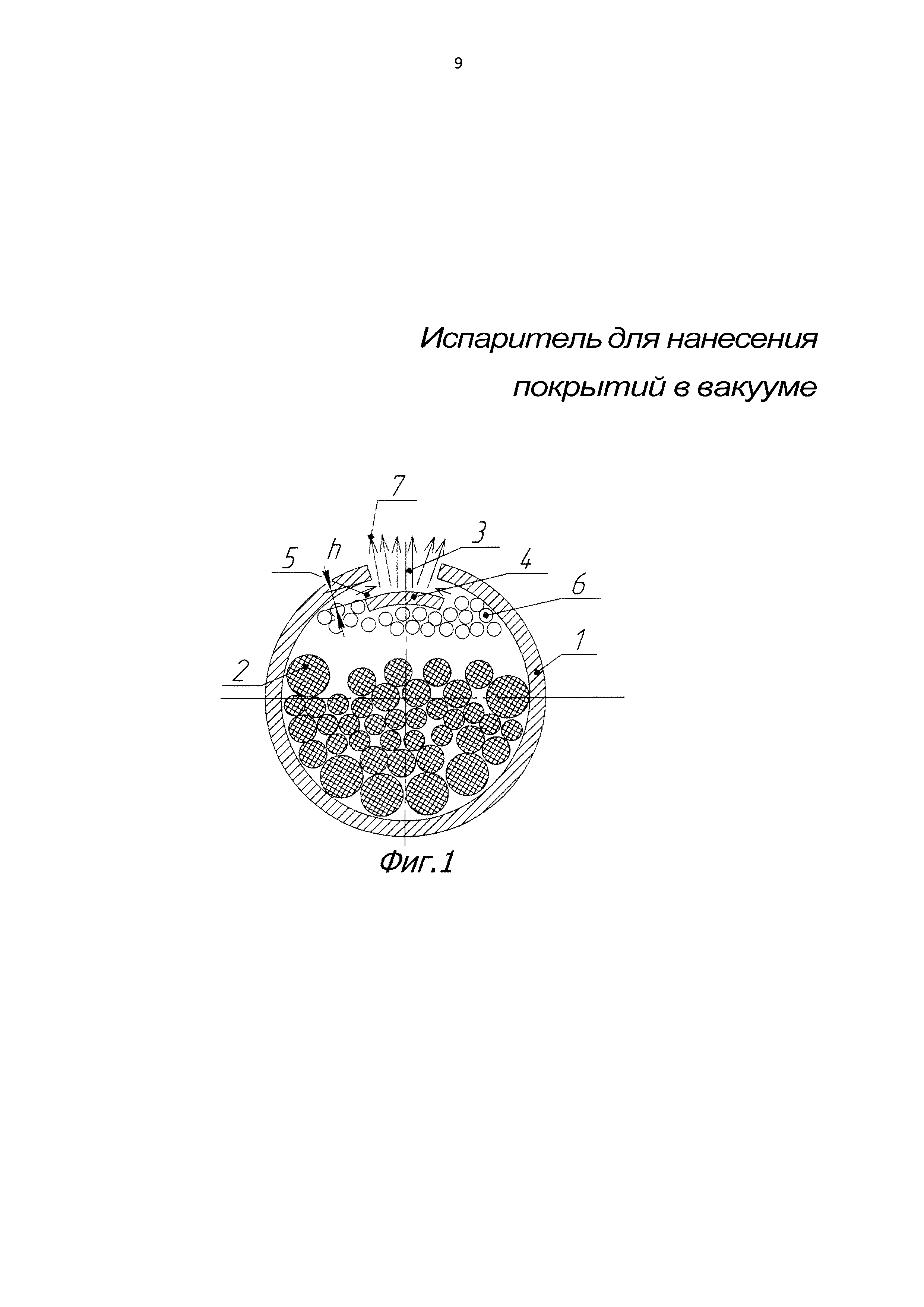 Испаритель для нанесения покрытий в вакууме, содержащий корпус для испаряемого материала, выполненный в виде разрезанного цилиндра, имеющего зазор между его продольными кромками, отличающийся тем, что он дополнительно содержит экран, размещенный в полости цилиндра в области продольного зазора с образованием канала между корпусом и экраном.