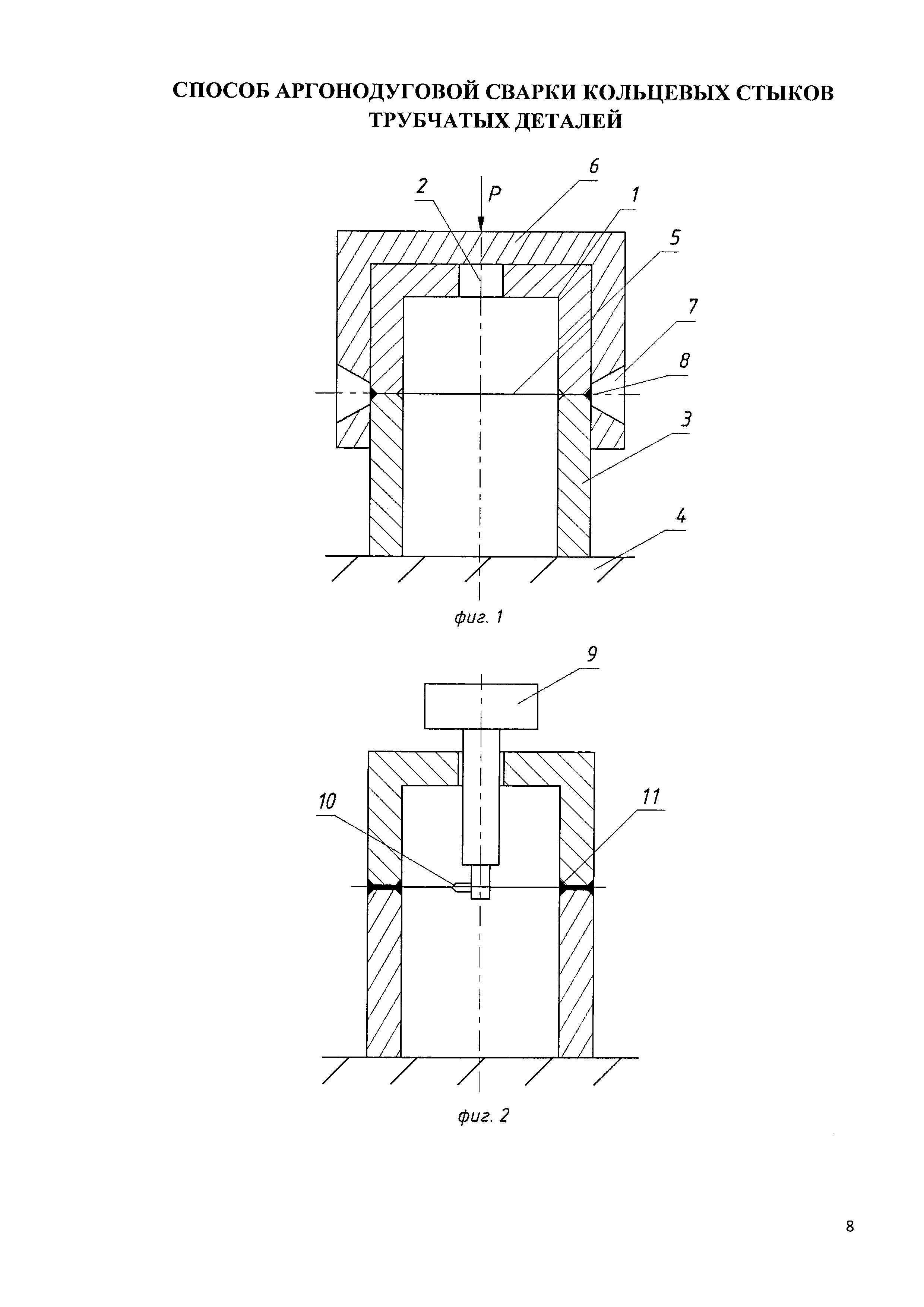 Изобретение относится к способу аргонодуговой сварки кольцевых стыков трубчатых деталей, одна из которых выполнена в форме стакана с центральным отверстием в донной части, а другая трубчатой формы. Формируют пакет из трубчатых деталей путем установки трубчатой детали на опору и установки на ее торец упомянутой детали в форме стакана дном вверх. На сформированный пакет трубчатых деталей надевают центратор, выполненный в виде стакана с диаметрально выполненными в его стенке отверстиями. Прикладывают осевое сжимающее усилие к донной части центратора и осуществляют фиксацию трубчатых деталей локальной аргонодуговой сваркой стыка по его наружной поверхности через отверстия центратора. После чего снимают осевое сжимающее усилие, удаляют центратор и проводят сварку стыка с внутренней стороны пакета трубчатых деталей в импульсном режиме. В результате устраняется вероятность возникновения несоосности свариваемых трубчатых деталей, а также вероятность возникновения растягивающих напряжений в металле шва, которые значительно снижают его прочность в готовом изделии. 2 ил., 1 пр.