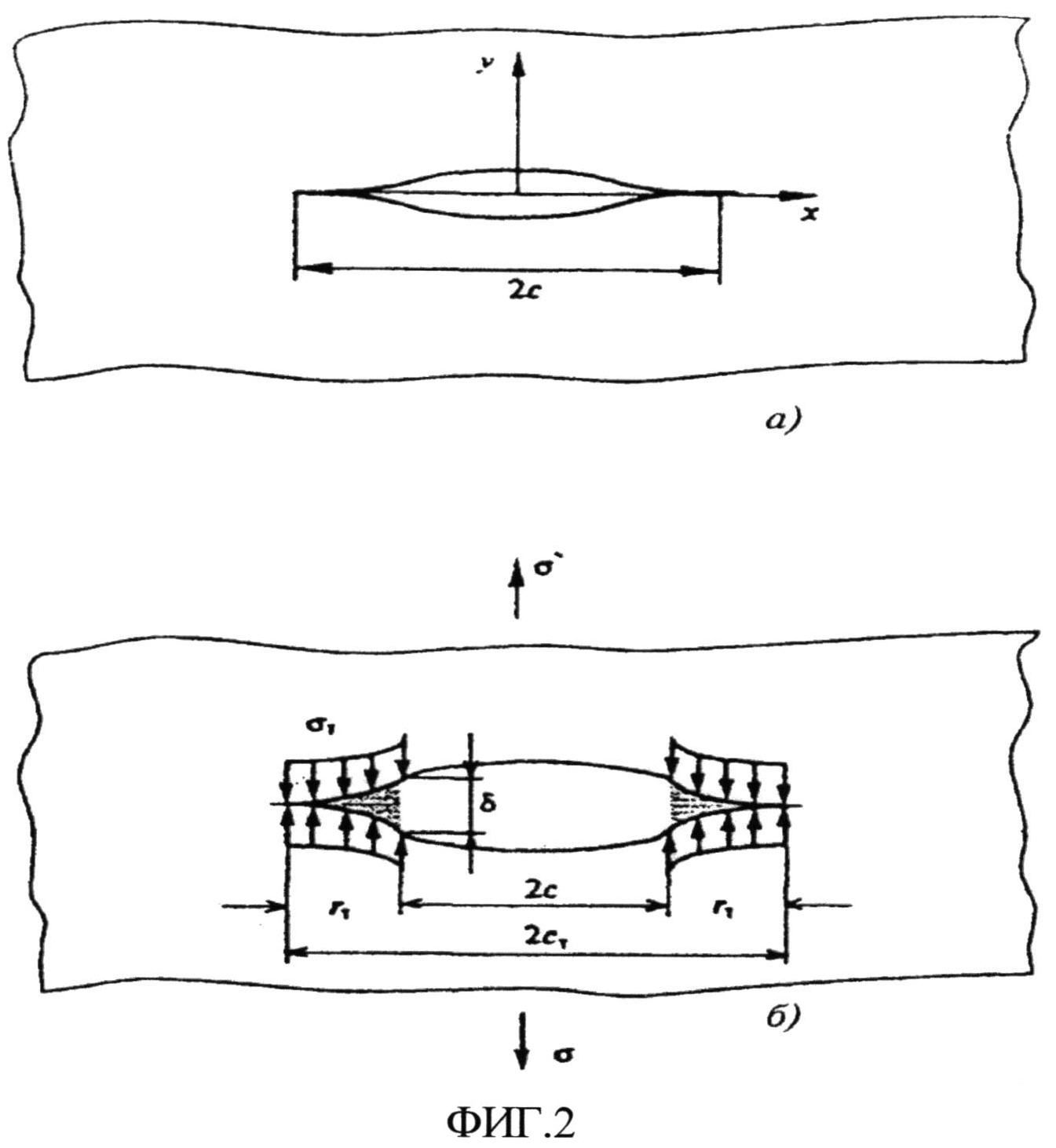 Область техники, к которой относится изобретение Изобретение относится к способам испытаний состояния изделий в рамках системы контроля качества, в том числе планово-предупредительных ремонтов, в частности для оценки показателей качества изделия по результатам неразрушающего контроля герметичности. Изобретение может применяться в атомной и традиционной энергетике, судостроении, нефтехимии, в других областях техники и машиностроения, где применяют теплообменники и/или теплообменные трубы. Уровень техники Из уровня техники известно большое число способов проведения контроля герметичности. Из уровня техники известен способ контроля герметичности, состоящий в использовании текучей среды для обнаружения места утечки (Лукасевич Б.И. и др. «Парогенераторы реакторных установок ВВЭР для атомных электростанций», М., 2004 г.). В качестве наиболее близкого аналога выбран способ проведения контроля герметичности, раскрытый в источнике информации ПРАВИЛА И НОРМЫ В АТОМНОЙ ЭНЕРГЕТИКЕ. «Контроль герметичности. Газовые методы», ПНАЭГ-7-019-89. Известный способ контроля герметичности основан на применении пробных веществ и регистрации их проникновения через дефекты в конструкции при помощи визуального наблюдения и/или различных приборов-течеискателей и других средств регистрации пробного вещества. Недостатком данного способа является ограниченная чувствительность и достоверность выявляемых дефектов. Раскрытие изобретения Задача, которую решает данное изобретение, состоит в повышении эксплуатационных качеств изделий на основе повышения достоверности выявления сквозных дефектов эксплуатационной природы типа трещин усталости, коррозионного растрескивания под напряжением, технологических дефектов с малым раскрытием типа закалочных, сварочных или других трещин или трещиноподобных дефектов. Технический результат, на достижение которого направлено данное изобретение, заключается в том, что оно позволяет осуществлять контроль качества изделия на стадии выходного заводского контроля или во время эксплуатации изделия с более высоким качеством и надежностью, что позволит своевременно выявить опасные сквозные дефекты и выполнить ремонт изделия по результатам этого контроля. Указанная выше совокупность технических результатов достигается тем, что способ повышения достоверности контроля герметичности изделий состоит в том, что определяют действующее во время эксплуатации напряжение σэ в изделии, определяют максимально допустимое напряжение в изделии σдоп, нагружают изделие и создают в нем напряжение величиной от 1,25σэ до 0,97σдоп, сбрасывают нагрузку полностью и проводят контроль герметичности изделия. Отличительной чертой данного способа является то, что перед проведением контроля изделие нагружают нагрузкой, достаточной для раскрытия гипотетического дефекта типа трещины в месте контроля, до величины, которая обеспечила бы лучшее проникновение газа или жидкости через сквозной дефект и таким образом повысила выявляемость дефектов. Краткое описание чертежей На ФИГ.1 показан пневмогидравлический (аквариумный) метод контроля герметичности изделия. На ФИГ.2 показана схема напряжений у концов трещины при растяжении в пластине из упругопластического материала в ненагруженном (а) и нагруженном состоянии (б). На ФИГ.3