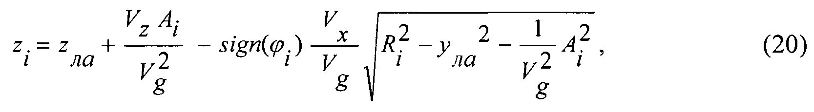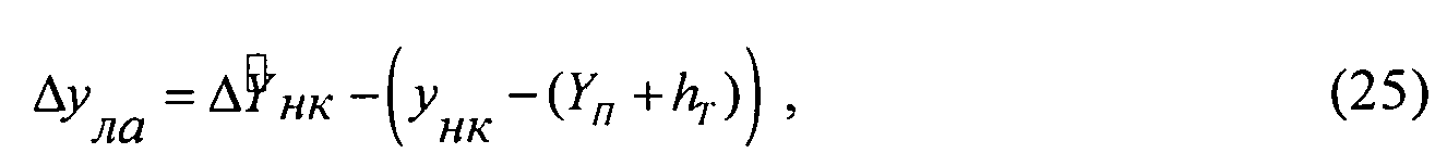 дальность до ОТ ОУМ - 5000 м; скорость полета ЛА - 250 м/с; ускорение (торможения) ЛА - минус 4 м/с2; в вертикальной плоскости - минус 30°; угол пути ЛАС (Ψ) - 20°; направлением визирования ОТ (βОТ) - минус 1°; по осям Х и Z в НЗСК ОУМ - 400 м. ошибок счисления координат ЛА по осям Х и Z в HЗСК ОУМ - 0м; минус 250 м - (рисунок фиг. 3а); плюс 250 м - (рисунок фиг. 3б). - значение поправки ΔYn, к счисленным данным НК ЛА, при которой достигается максимум Ф(·).