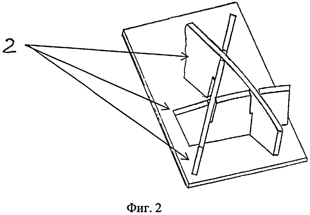 Область техники Изобретение относится к космической технике, в частности к созданию прецизионных антенных рефлекторов с высокоточными отражающими поверхностями сложной геометрии, искривленными в двух измерениях, например параболическими, выполненных из высокомодульных полимерных композиционных материалов (ПКМ) с минимальными массовыми характеристиками для эксплуатации в условиях космического орбитального полета. Уровень техники В настоящее время антенные рефлекторы различного конструктивного оформления широко используются в системах связи, дистанционного зондирования и природного мониторинга. Одними из таких антенных рефлекторов являются неразворачиваемые антенны с жесткой параболической отражающей поверхностью. Подобные конструкции обладают небольшим диаметром, позволяющим разместить антенну под обтекателем ракеты-носителя. Основные требования, предъявляемые к антенным отражателям для космоса, - это высокая жесткость, низкий вес и термически стабильные компоненты. При этом отклонение профилей отражающих поверхностей от теоретических должно быть не более 0,02…0,05 мм. Из существующего уровня техники известен антенный отражатель, выполненный в виде многослойной сотовой клееной конструкции, состоящей из углепластиковых обшивок и алюминиевого сотового заполнителя, выполненной путем склеивания обшивок с сотовым заполнителем пленочным клеем (патент РФ 2168820, МПК H01Q 15/16, опубл. 10.06.2001). К недостаткам данного технического решения можно отнести следующее. Температурный градиент по толщине сот очень велик. Подобные конструкции испытывают предельные термомеханические напряжения из-за экстремальных тепловых флуктуаций, особенно в космосе. Это, прежде всего, происходит из-за несоответствия материалов обшивки и сот, а также переменной толщины сотовой конструкции рефлектора из-за кривизны его формы. Все это приводит к значительному разбросу термомеханических свойств устройства, что усложняет задачу получения изделия с высокими требованиями к точности и размеростабильности геометрических параметров рабочей поверхности отражателя. Указанный недостаток частично устраняют в конструкции отражателя, где для подкрепления обшивок отражателя применяют не алюминиевые соты, а оребренные вертикальные элементы в виде сетки или решетки (англоязычный термин - grid (грид)), в первую очередь, изогридные треугольные структуры, где ребра формируют ячейки сетки в виде повторяющихся треугольников (например, см. патент США 6064352, МПК H01Q 1/28; H01Q 15/14; H01Q 15/16, опубл. 16.05.2000). Данная структура благодаря использованию углеволокнистых ПКМ, ориентированных вдоль ребер, имеет высокую жесткость и прочность. А при совместной работе с общей оболочкой отражателя эффективность такой структуры резко возрастает. Изогридные конструкции даже с одной оболочкой (или обшивкой) могут успешно соперничать с оптимизированными сотовыми трехслойными конструкциями с точки зрения структурной эффективности, т.е. отношения жесткости и прочности к массе. Это, прежде всего, связано с тем, что оболочка и подкрепляющая оребренная сетка (решетка) выполнены из единого квазиизотропного материала, коэффициент термического расширения которого близок к нулю, вследствие чего изменения геометрических параметров изделия при перепаде температур минимальны. Темпера