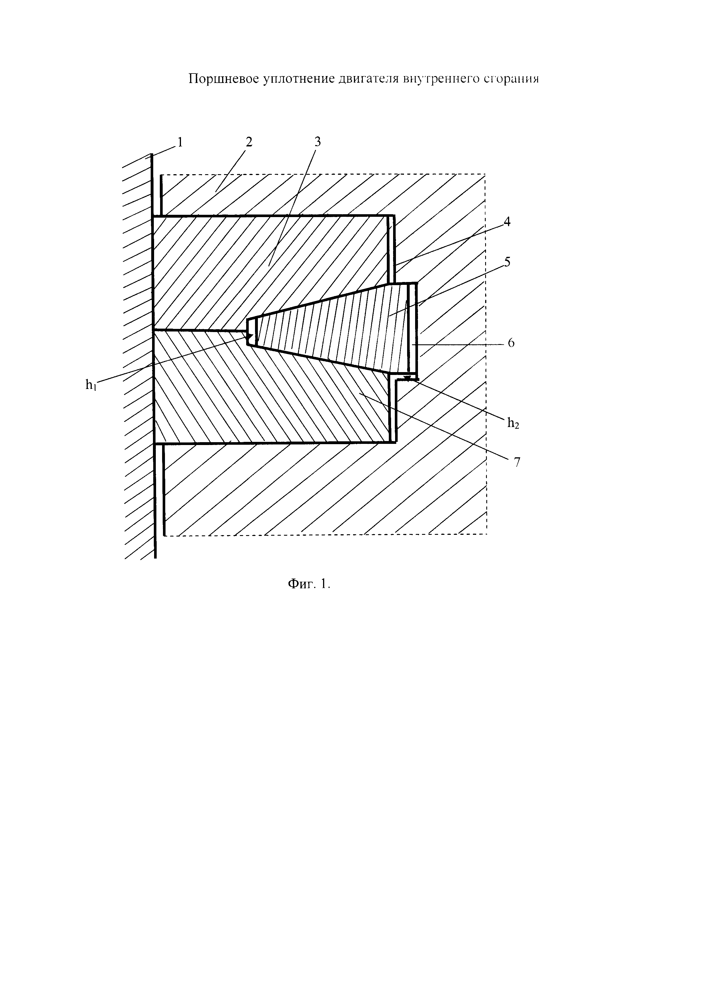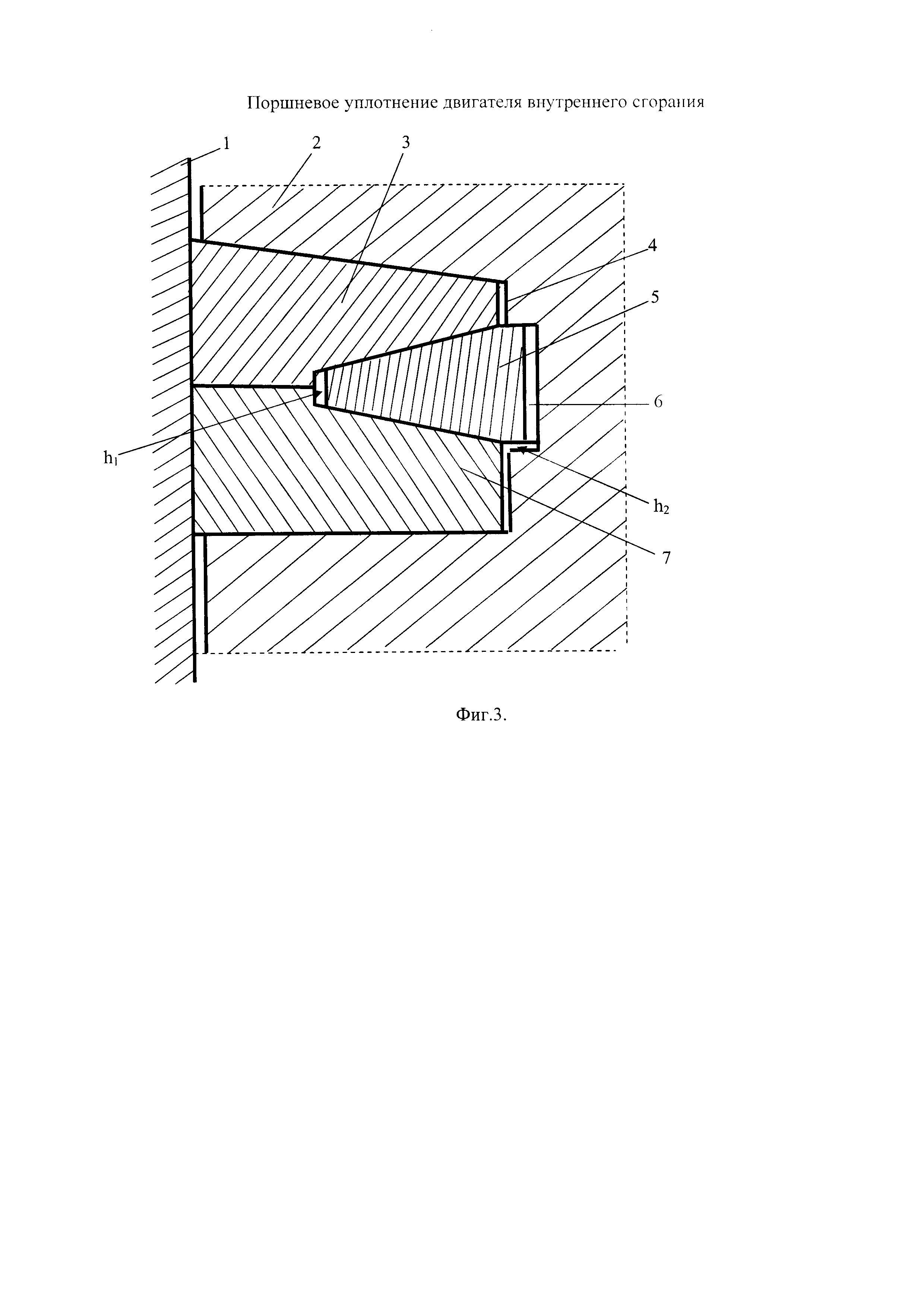 Изобретение относится к машиностроению, а конкретно к проектированию, производству и эксплуатации двигателей внутреннего сгорания. Поршневое уплотнение двигателя внутреннего сгорания содержит два компрессионных кольца (3) и (7), между которыми расположено расширительное кольцо (5), установленные в одной поршневой канавке (4), причем расширительное кольцо (5), имеющее коническую рабочую часть и фиксирующую цилиндрическую часть, установлено между компрессионными кольцами (3) и (7) так, что наружная коническая часть расширительного кольца (5) контактирует соответственно с наклонными поверхностями, выполненными на нижнем торце верхнего кольца (3) и верхнем торце нижнего кольца (7), а внутренней цилиндрической частью расширительное кольцо расположено в кольцевой проточке (6), выполненной в дне поршневой канавки (4). Предлагаемая конструкция поршневого устройства практически устраняет газодинамические потери, обеспечивает эффективный теплообмен между перегретой головкой поршня (2) и охлаждаемым цилиндром (1), повышает компрессию, мощность и ресурс двигателя, уменьшает расход топлива и масла, улучшает экономические и экологические показатели. 3 з.п. ф-лы; 3 ил.