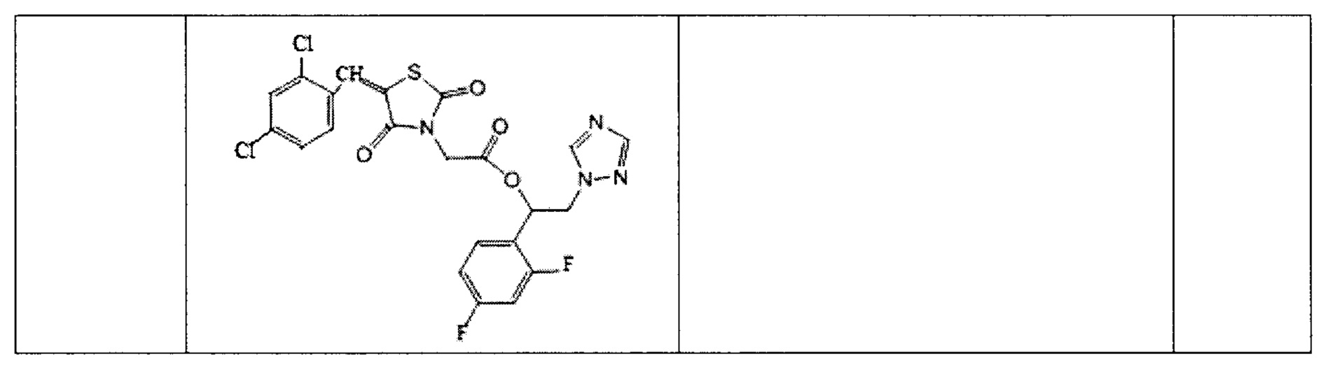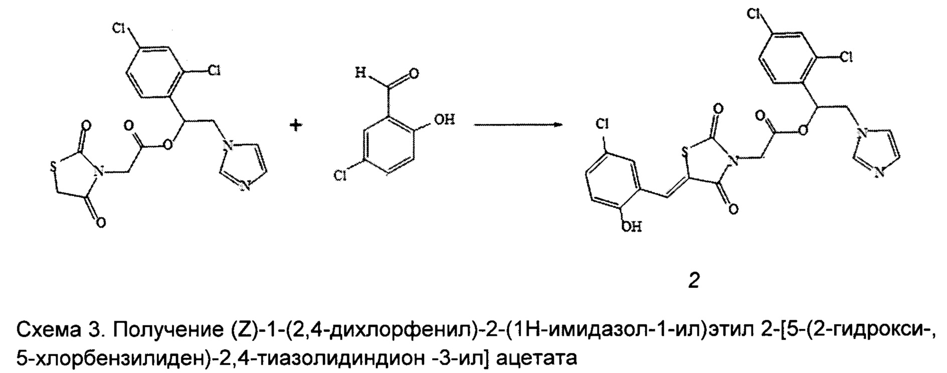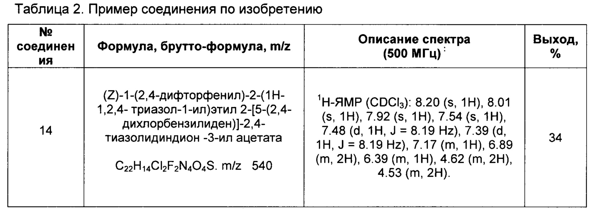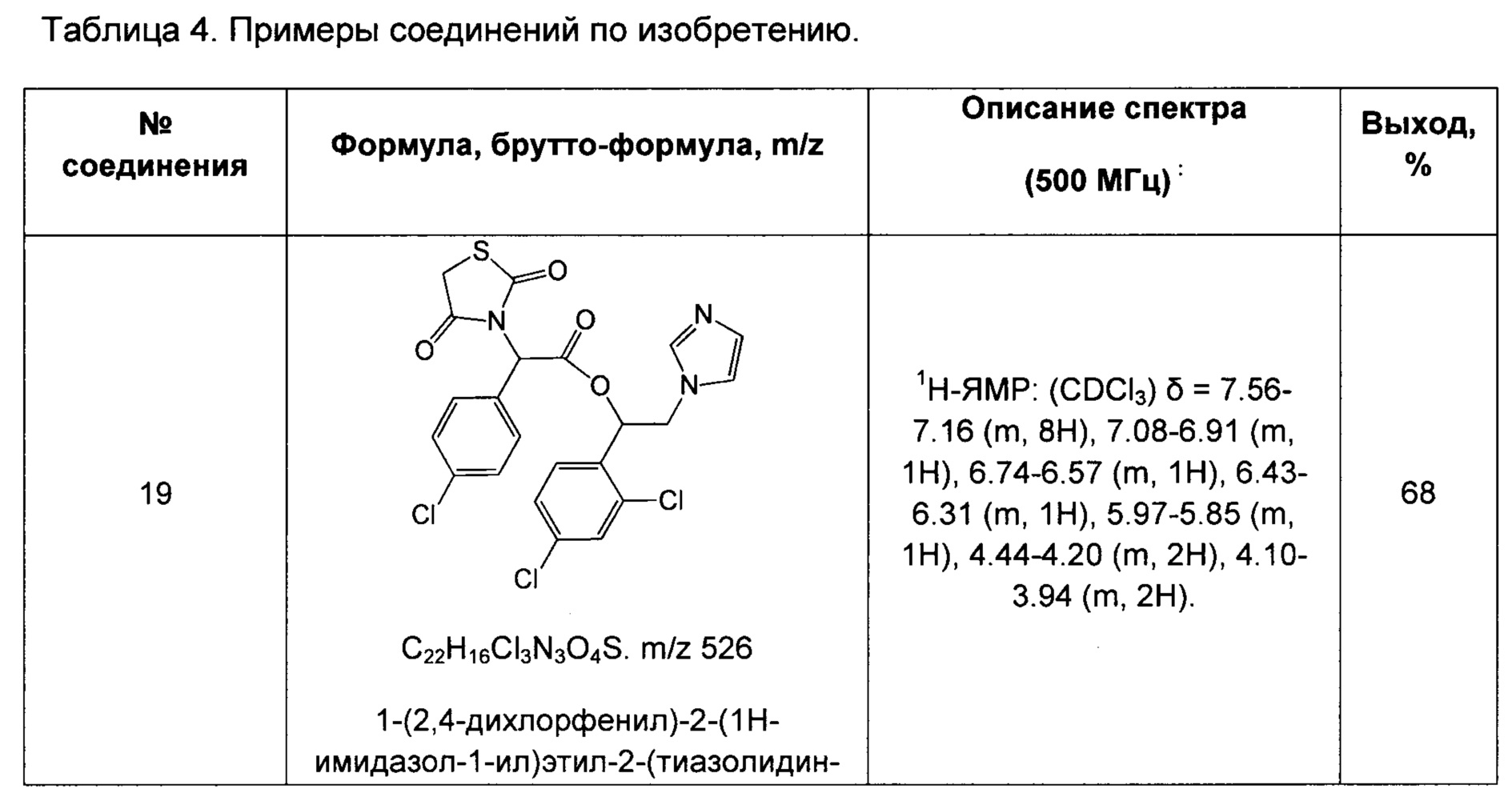 Область техники Изобретение относится к химии органических соединений, фармакологии и медицине и касается новых химических соединений, характеризующихся высокой противогрибковой активностью, которые, в частности, могут использоваться для профилактики и лечения инфекционных заболеваний у субъекта, в частности заболеваний, вызванных кандидозными и филоментозными патогенами. Уровень техники Недостаточная эффективность современной противомикробной терапии обусловлена в значительной степени развитием резистентности у возбудителей к имеющимся лекарственным препаратам. Именно поэтому во всем мире проводится интенсивный поиск и разработка новых эффективных лекарственных соединений. Несмотря на все усилия, современный арсенал медицинских средств недостаточен и не позволяет проводить эффективное лечение многих заболеваний, в том числе грибковых инфекций. Имеющиеся в настоящее время противогрибковые препараты - полиены и азолы, влияющие на главный компонент мембраны грибов - эргостерол, не обеспечивают должной избирательности действия. Они весьма токсичны, более того, многие штаммы возбудителей приобретают резистентность к препаратам группы азолов. Из уровня техники известны соединения, имеющие тиазолидиндионовый фрагмент и характеризующиеся противогрибковой активностью US 7105554, WO 2002022612, Thiazolidine and benzylidene thiazolidinedione inhibitors of mannosyltransferease as antifungal agents // Expert Opinion Ther. pat., Patent evaluation, 2002, 12,8, 1285-7. В данных документах описаны замещенные производные 5-бензилиден-2,4-тиазолидин-3 уксусной кислоты в качестве антимикотических средств, активных в отношении многих патогенных грибов. Из уровня техники известны также производные азола, характеризующиеся противогрибковой активностью WO 2005006860, Помимо этого описаны способы получения и противогрибковая активность ацильных производных азолов - широко известной группы противогрибковых средств, и, в частности, соединений, полученных путем ацилирования азольных гетероциклов по атому кислорода спиртовой части молекулы (Y. Wahbi et al. Aliphatic ethers and esters of 1-(2,4-dichlorophenyl)-2-(IH-imidazolyl)ethanol: study of antifungal activity against yeasts and hydrophobic character// Eur. J. Med. Chem, 1994, 29, 701-6.; D. De Vita et al. Synthesis and antifungal activity of a new series of 2-(1H-imidazol-1-yl)-1-phenylethanol derivatives // Eur. J. Med. Chem., 2012, 49, 334-342). Однако, как уже упоминалось выше, основном недостатком препаратов, на основе производных азолов, является растущая резистентность, что может свести на нет все прилагаемые усилия по лечению. Проблема еще усугубляется тем, что развивается перекрестная устойчивость ко всем используемым препаратам азольной группы (J.E. Parker. Resistance to antifungals that target CYP51 // J. Chem. Biol, 2014.). Поэтому сохраняется высокая необходимость в разработке новых эффективных противогрибковых средств для терапии широкого спектра заболеваний, вызванных грибковыми инфекциями. Раскрытие изобретения Задачей настоящего изобретения является разработка и создание новых эффективных противогрибковых средств, перспективных для применения в клинической практике для терапии и/или профилактики инфекционных заболеваний. Техническим результатом изобретения является разработка и получение новых химических соединений, обладающих высокой противогрибковой активностью, пониженной токсичностью и перспективных для применения в терапии инфекционных заболеваний у субъекта, в частности заболеваний, вызванных кандидозными и ф