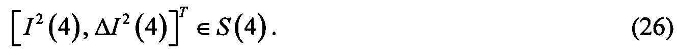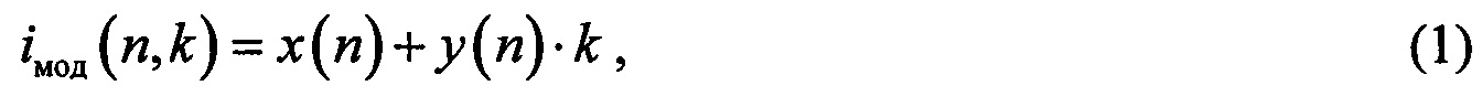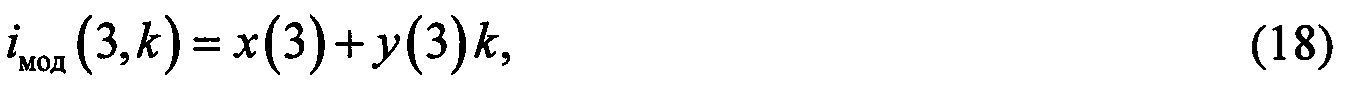 , принадлежат участку правильной трансформации, и приступают к определению общей протяженности этого участка. Интервалу наблюдения задают расширение (n=4) и вводят в действие второй модуль сравнения 2, добавляющий к информационной базе модуля сравнения 1 наблюдаемый отсчет i(4) и модельный iмод(4). Параметры (8) x(4), y(4) изменят свои значения по отношению к сигналу (18). Новый модельный сигнал (фиг. 3)