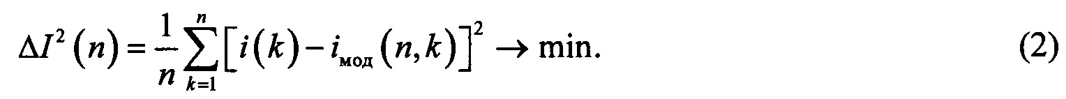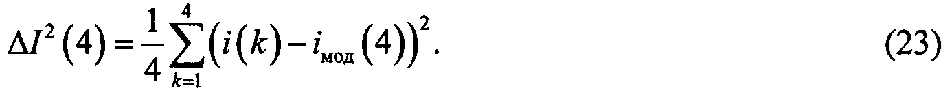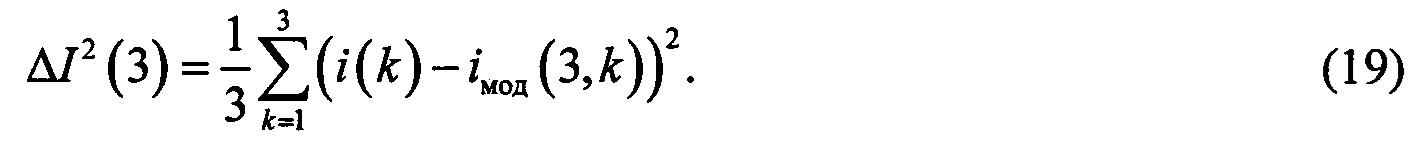 , где k - дискретное время. На фиг. 2-4 отсчеты i(k) показаны совместно с отсчетами iмод(n, k) модельного тока, где n - число отсчетов на интервале наблюдения тока i(k). На первом интервале n=3 (фиг. 2), затем n=4 (фиг. 3) и n=5 (фиг. 4). Отсчеты наблюдаемого тока изображены точками, отсчеты модельного тока - звездочками.