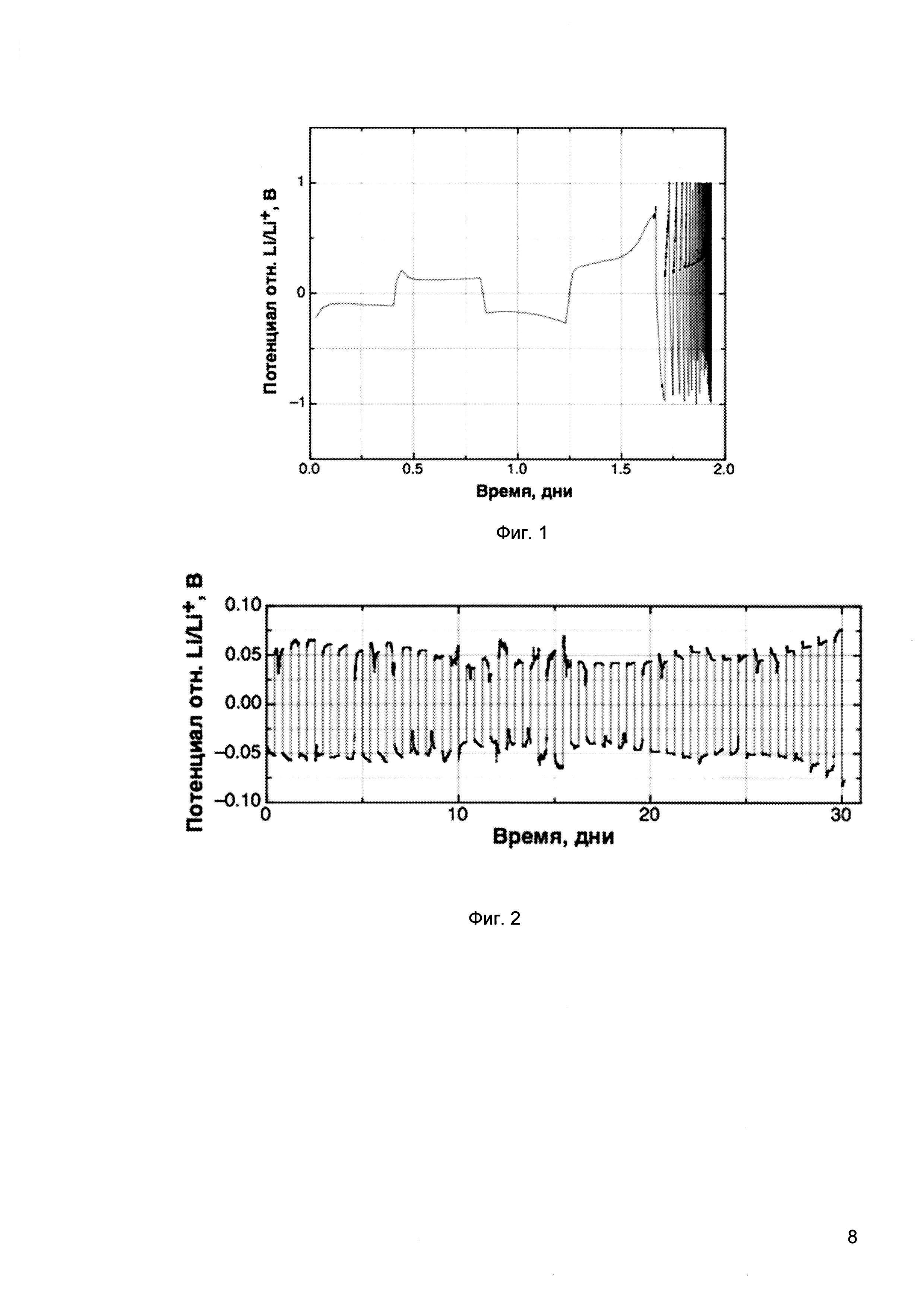 Область техники Изобретение относится к металлическому аноду с покрытием и к аккумулятору с металлическим анодом с покрытием. Уровень техники Из уровня техники известно, что в качестве защитных покрытий для литиевых электродов могут быть использованы полимерные, керамические или композитные полимер-керамические покрытия (US 2013/0236764 А1, опубл. 12.09.2013). В качестве полимеров для таких покрытий могут быть использованы сополимеры, включающие гидрофобные (полидиметилсилоксан) и гидрофильные (полиоксиметиленметакрилат или полиоксиэтиленакрилат) полимерные блоки, имеющие низкую температуру стеклования. Удельная емкость литиевого аккумулятора, содержащего защищенный таким образом литиевый анод, тем не менее, не превышает 150 мА/г, а падение емкости за 30 циклов перезаряда достигает 30%. Наиболее близким аналогом заявленной группы изобретения является анодный материал и аккумулятор, раскрытые в источнике ЕР 0715366 А1, опубл. 05.06.1996, в котором качестве защитного анодного покрытия использовали различные оксиды переходных металлов (W, Mo, Ti, V, Nb, Zr, Hf, Та, и Cr). Растворы прекурсоров соответствующих металлов наносят на поверхность литиевого анода, высушивают растворитель и затем производят отжиг при температуре 300-500°С для формирования оксидного слоя. Помимо этого, оксидные пленки могут быть сформированы путем напыления, химического осаждения из газовой фазы, испарения электронным пучком. Данные покрытия позволяют предотвратить образование дендритов, но приводят к возникновению больших перенапряжений разряда-заряда в связи с их низкой электронной проводимостью, что существенно уменьшает удельную энергию и срок службы аккумулятора. Раскрытие изобретения Задача предлагаемого технического решения состоит в разработке анодного материала для вторичных аккумуляторов с покрытием, которое не препятствует транспорту ионов лития из анода в электролит и при этом эффективно подавляет образование дендритов и увеличивает удельную энергию аккумулятора. Техническим результатом изобретения является увеличение емкости и количества циклов перезарядки аккумулятора. Указанный технический результат достигается за счет того, что анодный материал содержит металлический литий, на поверхность которого нанесен аморфный слой материала, выбранного из группы: Si, Ge, С, Al, Au. Аморфный слой материала нанесен методом магнетронного напыления или температурно-индуцированного и плазменного химического осаждения из газовой фазы или распыления электронного пучка или кластерного ионного испарения. Толщина аморфного слоя материала составляет от 10 нм до 10 мкм. Анодный материал изготовлен в виде пластины или фольги. Кроме того, данный технический результат достигается за счет того, что литиевый аккумулятор содержит катод, электролит и анод, изготовленный из вышеуказанного материала. Материал катода выбран из группы: ацетиленовая сажа, графен, углеродные нанотрубки, оксиды переходных металлов, соединения со структурой перовскита, оливина или шпинели. Электролит включает соль, растворенную в растворителе и выбранную из группы: перхлорат лития, гексафторфосфат лития, тетрафторборат лития. Растворитель выбран из группы: пропиленкарбонат, этиленкарбонат, бутиленкарбонат, диметилкарбонат, этилметилкарбонат, диэтилкарбонат, 1,2-диметоксиэтан, 1,3-диоксолан, тетр