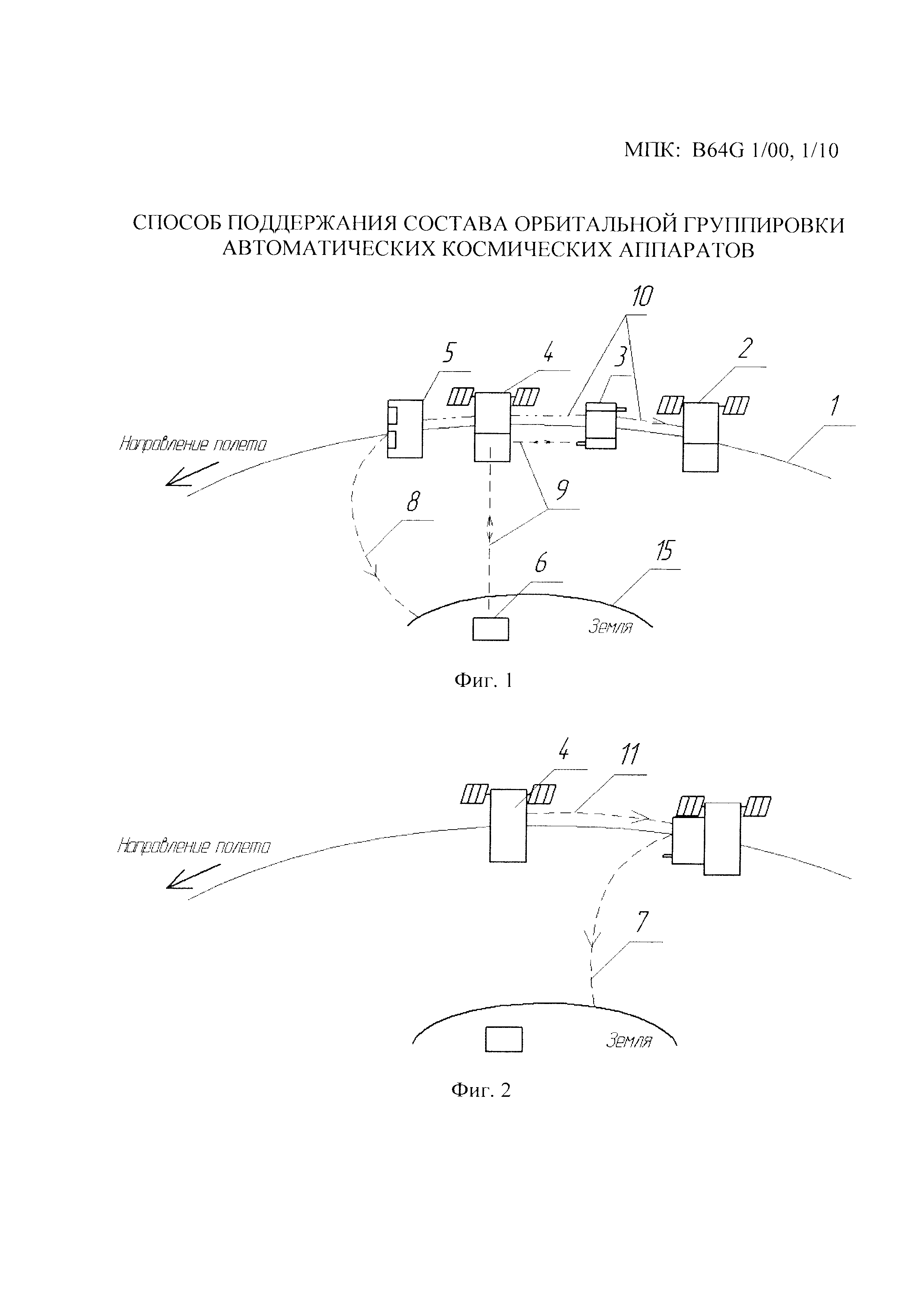 1. Способ поддержания состава орбитальной группировки автоматических космических аппаратов (КА), включающий комплектование на Земле оборудованием целевого космического аппарата (ЦКА), предназначенного для замещения на орбите неработающего КА группировки, и сервисного КА (СКА) для увода неработающего КА, запуск ракеты-носителя с разгонным блоком, ЦКА и СКА, отделение разгонного блока и выведение ЦКА и СКА на орбиту неработающего КА, отделение ЦКА от разгонного блока и размещение в окрестности рабочей точки орбиты, отделение СКА, захват и увод СКА неработающего КА, отличающийся тем, что ЦКА комплектуют аппаратурой дистанционного управления СКА и наблюдения, СКА комплектуют аппаратурой связи с ЦКА, устройством захвата неработающего КА и двигательной установкой с количеством топлива или твердотопливных элементов, зависящим от прогноза дистанции маневрирования между разгонным блоком и КА и потребной траектории увода КА, после выведения в окрестность рабочей точки орбиты последовательно отделяют от разгонного блока СКА и ЦКА, дистанционно определяют параметры вращения неработающего КА с использованием аппаратуры наблюдения ЦКА или ЦКА и СКА, захватывают неработающий КА с помощью СКА и уводят с рабочей орбиты по сигналам аппаратуры управления ЦКА. 2. Способ по п. 1, отличающийся тем, что в случае увода неработающего КА на Землю или на более низкую орбиту СКА и ЦКА отделяют от разгонного блока перед неработающим КА по направлению полета. 3. Способ по п. 1, отличающийся тем, что в случае увода неработающего КА на более высокую орбиту СКА и ЦКА отделяют от разгонного блока за неработающим КА по направлению полета.