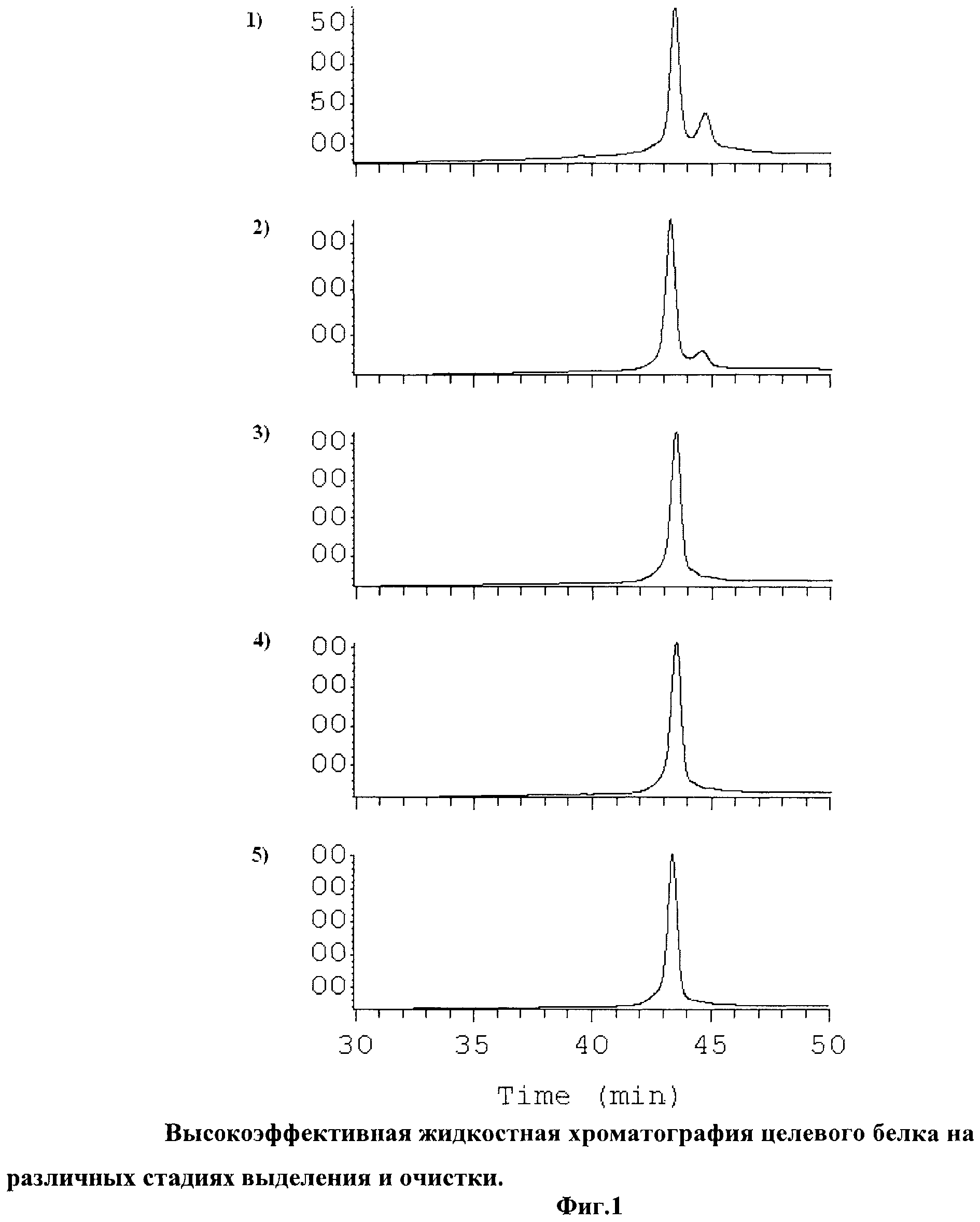 Изобретение относится к биотехнологии, конкретно к производству рекомбинантного гранулоцитарного колониестимулирующего фактора человека (рчГ-КСФ) в промышленном масштабе и представляет собой способ получения выделения и очистки рекомбинантного человеческого Г-КСФ в качестве препарата, в том числе медицинского назначения, из биомассы бактериальных клеток, содержащих рекомбинантную плазмидную ДНК с геном Г-КСФ человека. Гранулоцитарный колониестимулирующий фактор человека является основным регулятором выработки нейтрофилов. Г-КСФ - гликопротеин с молекулярной массой 18-20 кДа, изоэлектрической точкой 5.5, проявляющий активность в мономерной форме (Dr. Ken Alibek 27s lecture G-CSF). Он продуцируется многими клетками организма: стромальными клетками костного мозга, эндотелиальными клетками, макрофагами, гранулоцитами, фибробластами, астроцитами (Dr. Ken Alibek). Функциями Г-КСФ являются: стимуляция, дифференциация и функциональная активация клеток-предшественников нейтрофилов; влияние на иммунную систему путем регуляции функций Т-клеток и дендритных клеток (Dr. Ken Alibek); влияние на нервную систему через оказание противовоспалительного действия, подавление апоптоза и стимуляцию нейрогенеза (Solaroglu I, et al, A novel neuroprotectant granulocyte-colony stimulating factor, Stroke 2006). В медицине применяется рекомбинантный Г-КСФ как гликозилированный, так негликозилированный. Его клинический эффект не зависит от гликозилирования молекулы (Bönig Н, Silbermann S, et al. Glycosylated vs non-glycosylated granulocyte colony-stimulating factor (G-CSF) - results of a prospective randomised monocentre study, 2001; Hoglund M. Glycosylated and non-glycosylated recombinant human granulocyte colony-stimulating factor (rhG-CSF) - what is the difference? Med Oncol. 1998 Dec) Рекомбинантный Г-КСФ человека широко применяется в онкологии и гематологии при лечении нейтропении разной этиологии (David С. et al, «А Randomized Controlled Phase 3 Trial of Recombinant Human Granulocyte Colony-Stimulating Factor (Filgrastim) for Treatmentof Severe Chronic NeutropeniaBlood», 1993), аутоиммунных болезней человека (Rutella S et al, Granulocyte colony-stimulating factor: a novel mediator of T-cell tolerance, 2005), инфаркта миокарда, инсульта, ВИЧ-инфекции (Dr. Kuritzkes. Neutropenia, Neutrophil Dysfunction, and Bacterial Infection in Patients with Human Immunodeficiency Virus Disease: The Role of Granulocyte Colony-Stimulating Factor, 2000), нейтропении у новорожденных (A Randomized, Placebo-Controlled Trial of Recombinant Human Granulocyte Colony-Stimulating Factor Administration in Newborn Infants With Presumed Sepsis: Significant Induction of Peripheral and Bone Marrow Neutrophilia Blood, 1994). Растущие потребности в Г-КСФ, высокая эффективность в терапии целого ряда заболеваний иммунной и кроветворной систем, высокая стоимость зарубежных аналогов делают актуальной задачей разработку крупномасштабного способа его получения. Использование микробиологического синтеза на основе технологии рекомбинантных молекул ДНК обеспечивает возможность масштабирования процесса получения целевого продукта с высоким выходом из сравнительно недорого и безопасного сырья. В литературе описаны несколько способов получения рчГ-КСФ из клеток Е. coli (Welte К. et al // Proc. Natl. Acad. Sci. USA, 1985, V.82, No.5, p.1526-1530; Nomura H. et al. // EMBO J., 1985, V.5, No.5, p.891-896; Morioka E. et al. // Res. Exp. Med. (Berl.), 1990, V.190, No.4, p.229-238). Однако в одних применяются органические растворители, приводящие к частичной денатурации белка (Welte K. et al), в других используются дорогостоящие реактивы, например, окисленный глютатион (Morioka Е et al). Общим недостатком является низкий выход целевого белка, а масштабирование описанных процессов осложнено применением хроматографии с низкими скоростями. Известен способ получения Г-КСФ из клеток E.coli SG20050, трансфо
