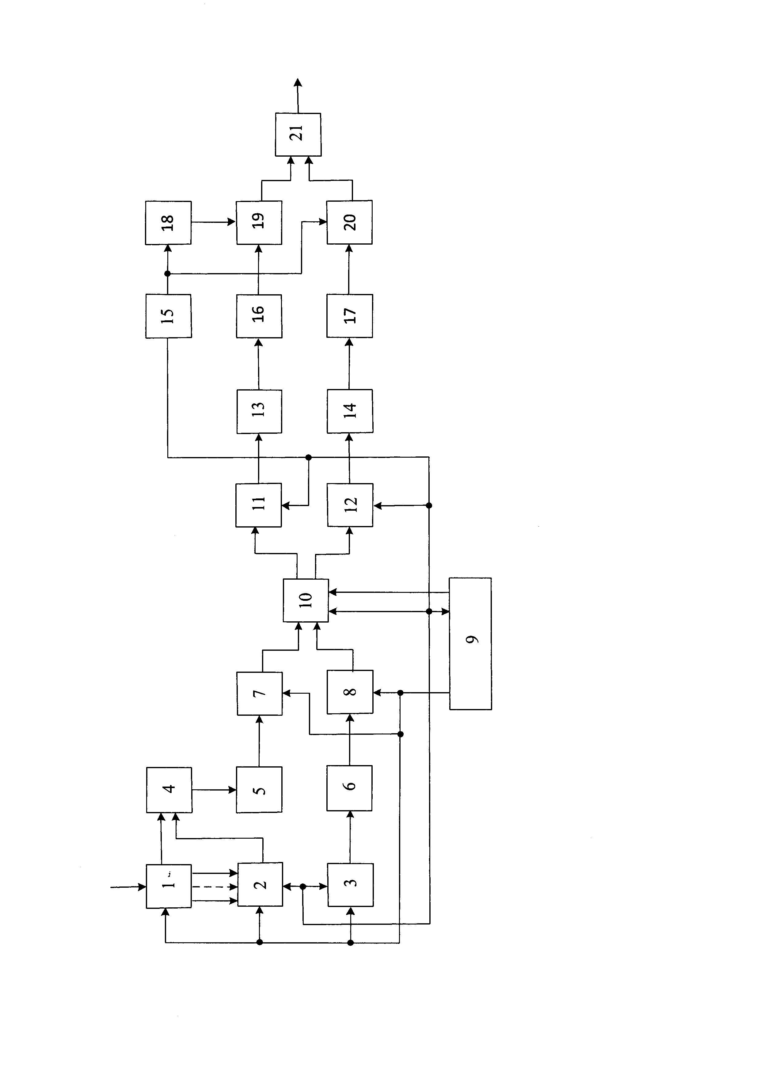 . Выходные сигналы фильтров поступают на перемножители 19, 20, где умножаются на гармонические сигналы частоты