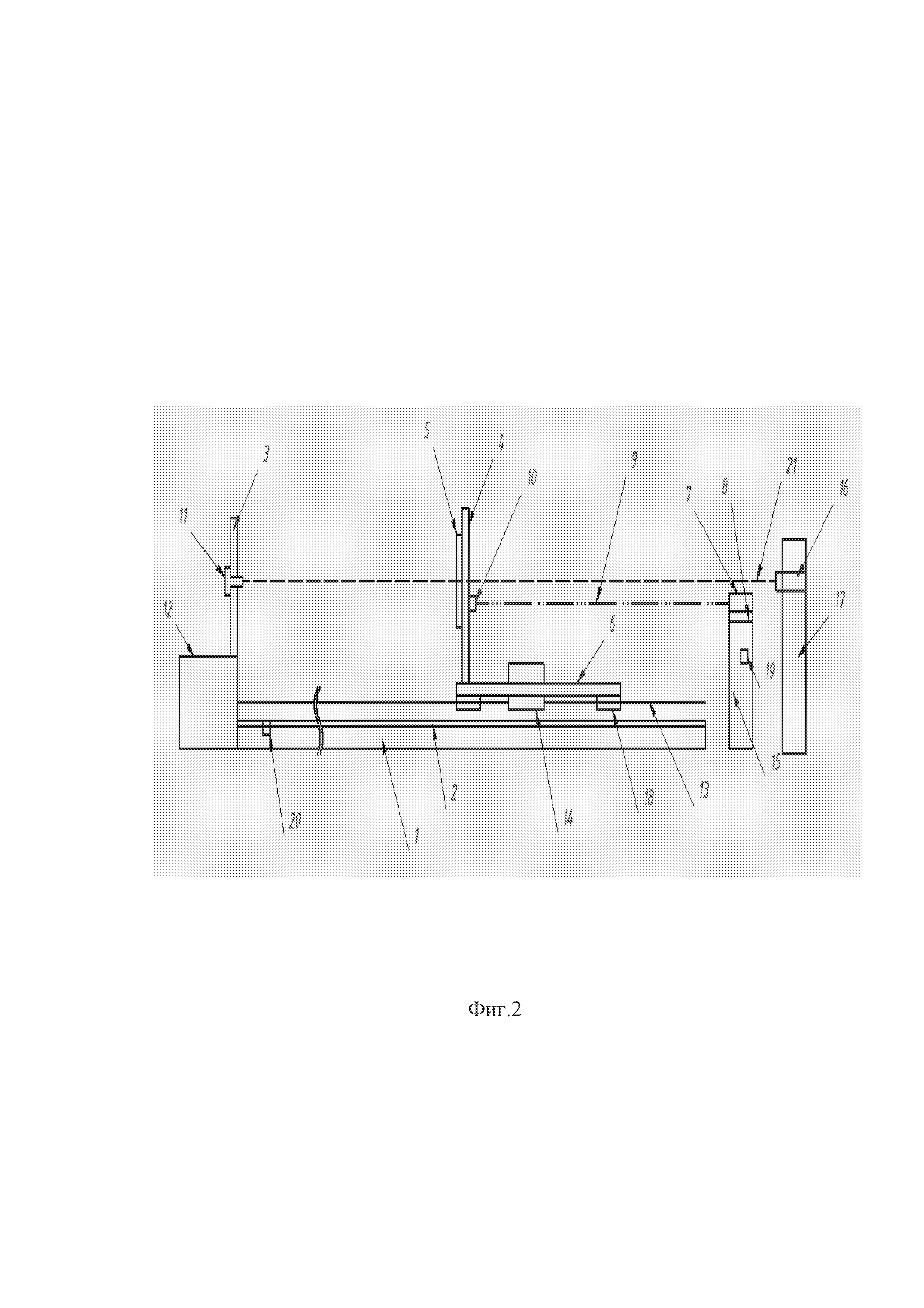 Изобретение относится к измерительной технике и предназначено для поверки, калибровки, градуировки и прочих метрологических испытаний уровнемеров и сигнализаторов уровня. Известен стенд регулировки и поверки радиолокационных уровнемеров (патент RU2298770, МПК G01F 25/00, опубл. 10.05.2007 г.), который содержит стойку, выполненную с возможностью крепления уровнемера, опору, плоский отражатель, закрепленный на опоре, устройство горизонтального перемещения, выполненное с платформой, средство измерения расстояния от выбранного начала отсчета до плоского отражателя, дополнительный отражатель и экран из радиопоглощающего материала. Опора размещена на платформе устройства горизонтального перемещения для изменения расстояния (S) от начала отсчета (О) до плоского отражателя. Экран установлен на средстве горизонтального его перемещения, выполненного в виде тележки, жестко связанной соединителем с устройством горизонтального перемещения. Дополнительный отражатель смонтирован на стойке и выполнен в виде поверхности второго порядка. Для уменьшения отражений от дополнительного отражателя введены два вспомогательных экрана в виде штор из радиопоглощающего материала. Недостаток известного стенда заключается в сложности конструкции, обусловленной наличием дополнительного отражателя и нескольких экранов, низкая точность определения расстояния до плоскости отражателя. Известен стенд регулировки и поверки радиолокационных уровнемеров (патент RU2655750, МПК G01F 25/00, опубл. 29.05.2018 г.), который содержит стойку для крепления уровнемера, устройство формирования и обработки сигналов, ЛПЭЭ и антенну, опору, плоский отражатель, расположенный перпендикулярно прямой, проходящей через центры плоского отражателя и раскрыва антенны, устройство горизонтального перемещения, средство измерения расстояния и съемную дополнительную ЛПЭЭ из набора ЛПЭЭ с дискретным изменением электродинамической длины. Недостаток известного стенда заключается в сложности конструкции. Известный стенд имеет недостаточную точность измерения в широком диапазоне дальностей. Известен стенд для поверки уровнемеров (патент RU140028, МПК G01F 25/00, опубл. 27.04.2014 г.), содержащий неподвижную и подвижную части с закрепленными на каждой из них основаниями, измеритель расстояния от подвижной части до неподвижной в виде измерительной ленты, средство считывания показателей измерителя, при этом на основании неподвижной части жестко закреплен поверяемый уровнемер, а на основании подвижной части закреплен отражатель, причем поверяемый уровнемер установлен таким образом, что его горизонтальная ось перпендикулярна плоскости отражателя, имеется средство для перемещения отражателя в горизонтальной плоскости по неподвижной линейной части стенда, снабженное элементами фиксации его в неподвижном состоянии в заданных точках и включающее в себя подвижную часть, на которой закреплено основание с отражателем, и направляющие для его перемещения в виде алюминиевых профилей, закрепленных на опорах и служащих ложементом для укладки измерительной ленты, натяжение которой обеспечивается грузом. Стенд снабжен температурными датчиками, в основании неподвижной части стенда расположен датчик положения, а в качестве средства считывания показателей измерителя использован линейный энкодер. Принято 