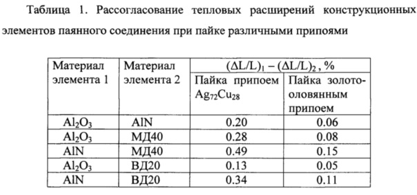 1. Металлокерамический корпус, состоящий из основания в виде паяного соединения конструкционных элементов, а именно: металлического теплоотводящего фланца, изолятора из многослойной алюмооксидной керамики и теплоотвода-кристаллодержателя в виде пластины из алюмонитридной керамики, и припаиваемой к основанию герметизирующей крышки из алюмооксидной керамики, отличающийся тем, что соединение металлического теплоотводящего фланца с изолятором и теплоотводом-кристаллодержателем выполнено припоем золото-олово, содержащим от 83 до 85 вес. % золота, олово - остальное. 2. Металлокерамический корпус по п. 1, отличающийся тем, что металлический теплоотводящий фланец изготовлен из псевдосплава молибден-медь, содержащего от 15 до 50 вес. % меди, или псевдосплава вольфрам-медь, содержащего от 10 до 30 вес .% меди.
