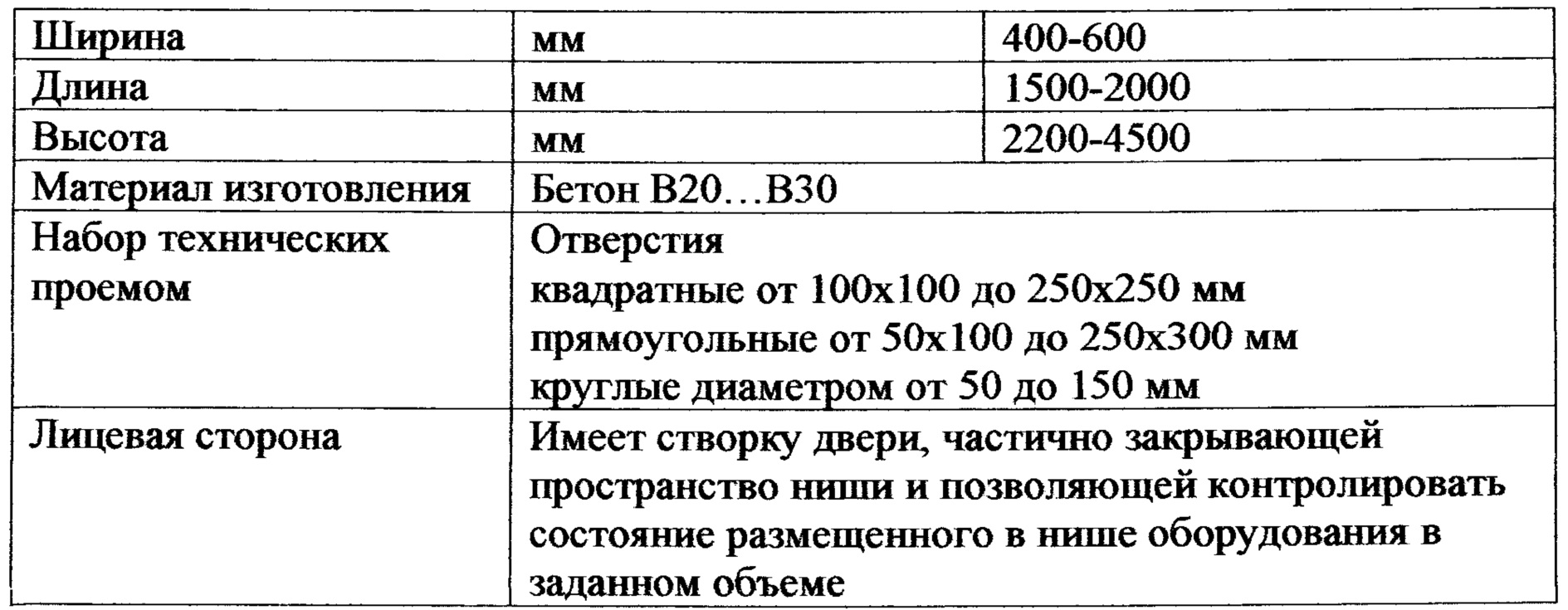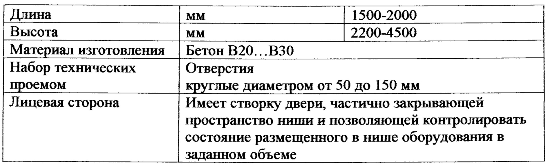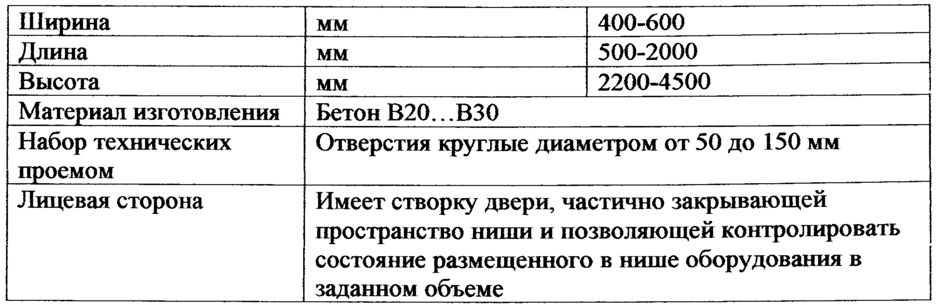- ниша снабжена техническими отверстиями под ввод/вывод соединительных устройств установленного в нише оборудования и коммуникаций;